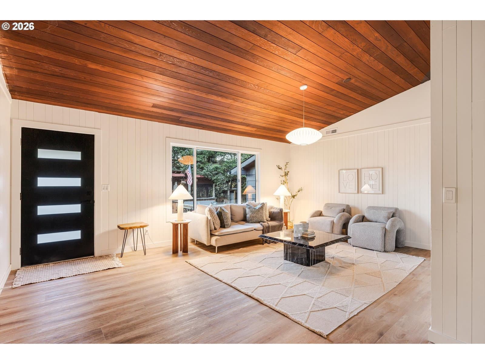 If you showed this property before, 3 sheds/outbuilding have been removed. Experience the charm of country living in this beautifully updated mid-century modern home, complete with a modern lift, situated on a secluded 2.5-acre lot that’s just a short drive from town. This spacious ranch features 3 bedrooms and 2.5 bathrooms, all designed to offer stylish and open spaces highlighted by vaulted wood-tone ceilings.The updated kitchen and dining room create a welcoming environment, perfect for entertaining or family gatherings. The luxurious bathroom includes a double vanity, a freestanding tub, and a walk-in shower, providing a perfect sanctuary for relaxation. With a brand new HVAC system and all new windows ensuring year-round comfort through both heating and cooling, this home is designed for convenience.Additionally, the property includes multiple outbuildings on flat, usable land, ideal for your farming hobbies or extra storage. This home truly embodies a perfect blend of modern amenities and serene country living, waiting for you to make it your own.