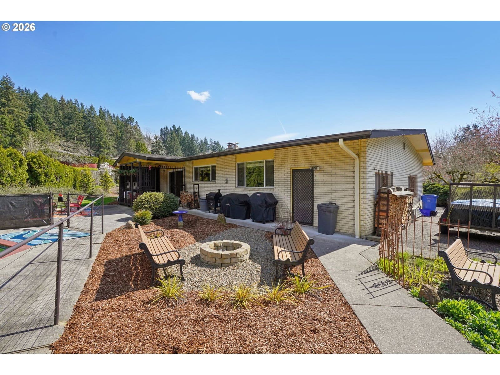 One-of-a-kind Damascus mid-century modern set on nearly ¾ acre, ready for your personal touch! This unique single-level ranch offers a semi open floor plan designed for effortless living and entertaining, highlighted by a stunning dual-sided fireplace and expansive gathering spaces. The home exudes timeless architectural charm with a distinct Frank Lloyd Wright–inspired feel—featuring thoughtfully placed windows that bathe the interior in natural light throughout the day. Multiple seating areas create flexibility and comfort, ideal for both everyday living and hosting guests. Step outside to your private entertainer’s paradise. The fenced pool area is perfect for summer enjoyment, while the expansive yard offers endless amenities, including a large garden and serene natural surroundings. Enjoy peaceful views and frequent visits from local wildlife, including owls, birds, and rabbits. A cozy courtyard with a chimenea, water feature, and lush plantings provides a tranquil retreat. Extensive system updates offer peace of mind: Roof, gutters, exterior paint (home & pool house) – Dec 2022, HVAC – 2019 (serviced Oct 2025), Electrical panel – March 2022, Certified wood stove, chimney liner & caps – Dec 2024, Septic serviced & inspected – 2021, Pool deck – 2024 | Pool fence – Feb 2026. Interior upgrades include high-end LVP flooring with 5.5” trim, tiled entry and primary bath, updated lighting and switches throughout, refreshed primary bath cabinetry with updated fixtures, professionally textured ceilings, interior paint (2022), solid wood doors, and modern window coverings. Vinyl windows and sliders complete the package. Located just minutes from shopping, restaurants, food carts, and more—this rare property blends architectural character, modern updates, and peaceful outdoor living.