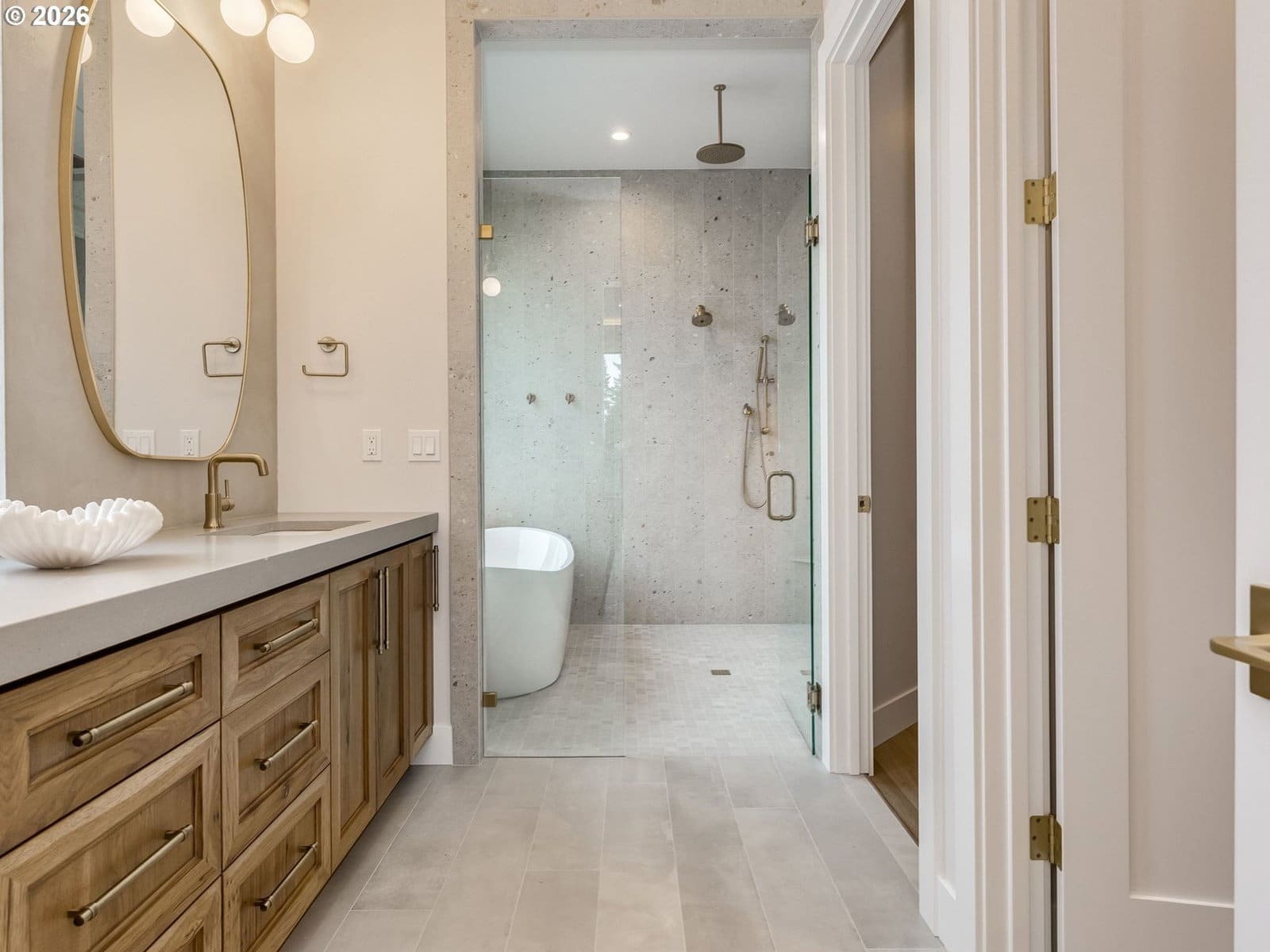 AMAZING VIEW LOT with GREENBELT. Just north or Salmon Creek. Stunning new construction home, thoughtfully designed with calming modern cottage elegance and expert craftsmanship in every detail. Located just north of Salmon Creek with top-rated schools, this home offers easy access to I-5, I-205, and nearby medical facilities. This exceptional 4-bedroom home showcases high end flooring and surfaces throughout, top tier honed quartz surfaces, and sophisticated plaster accents in the kitchen and great room. The expansive great room features soaring ceilings and full wet bar. One of a kind cabinetry package enhances both style and functionality throughout the house. Situated on a generous lot, the property is fully landscaped and includes an expansive covered porch—perfect for year-round outdoor living. A true beauty of modern design and luxury, this home is a must-see! ***FOR MAPPING USE 813 NW 174th St***