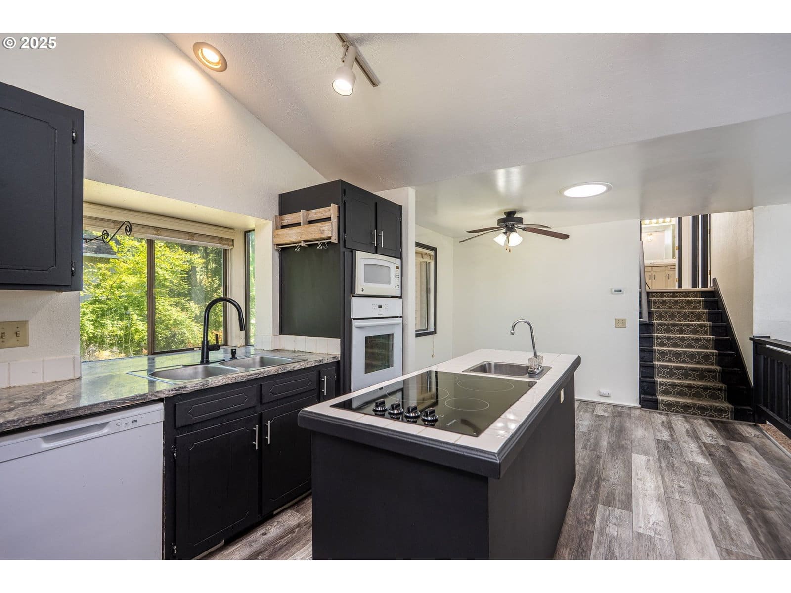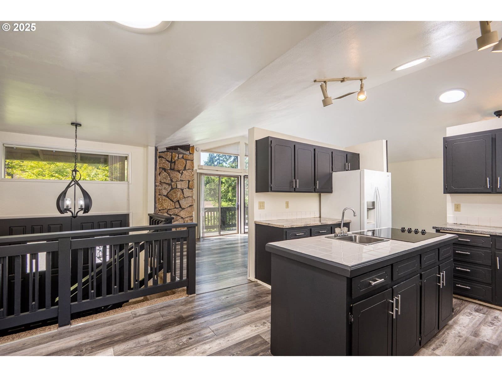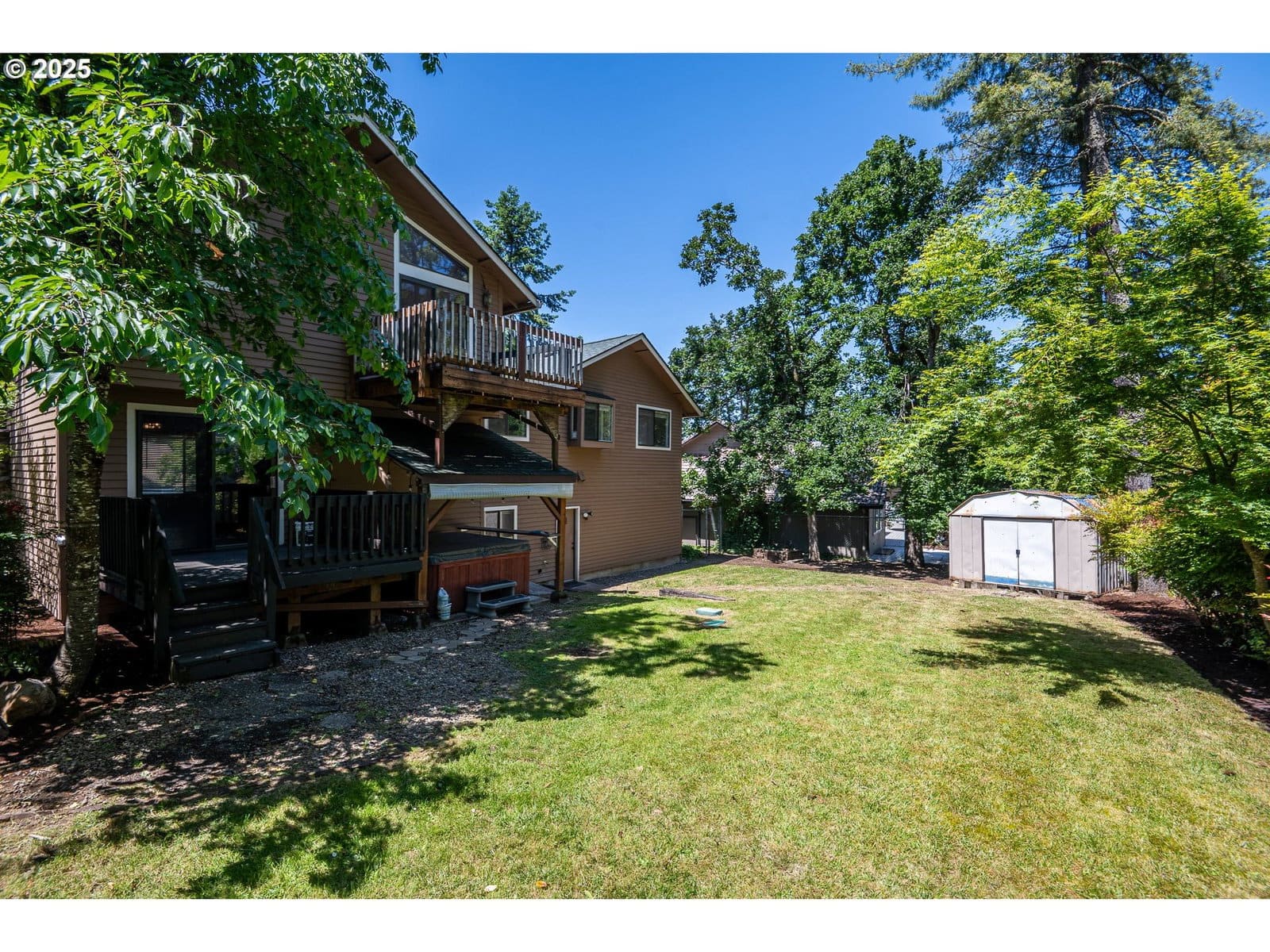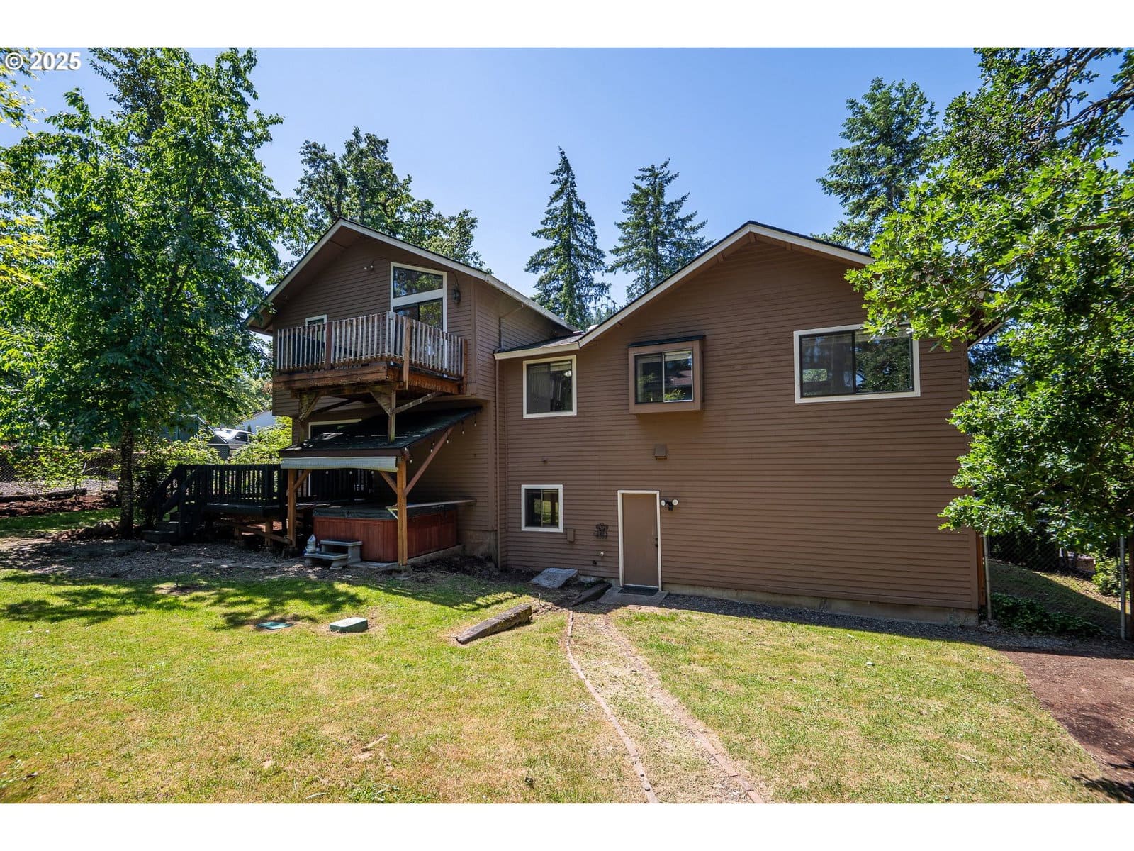 Price Improvement!! Welcome to 595 S 68th Pl, a spacious and inviting NW Contemporary home nestled in a quiet Springfield neighborhood. With approximately 1,940 square feet of living space spread across four levels, this home offers a thoughtful layout featuring three bedrooms and three full bathrooms. Vaulted ceilings in the kitchen, living room, dining room, and bedrooms create an open and airy feel, while large windows fill the space with natural light. The primary suite is a true retreat, complete with its own private deck, a full bath, and a walk-in closet. The updated kitchen includes a cozy dining nook and is equipped with modern appliances, perfect for preparing meals and entertaining guests. Just off the kitchen, the main living area offers a seamless flow and abundant space to relax or gather. Downstairs, the separate family room with a fireplace provides an ideal space for movie nights or quiet evenings in. Step outside to a fully fenced backyard with plenty of room to roam, a dedicated dog run, and space for gardening or outdoor enjoyment. With laminate and tile flooring throughout, a two-car attached garage, and a location just minutes from Thurston schools and parks, this home combines comfort, function, and timeless NW style.