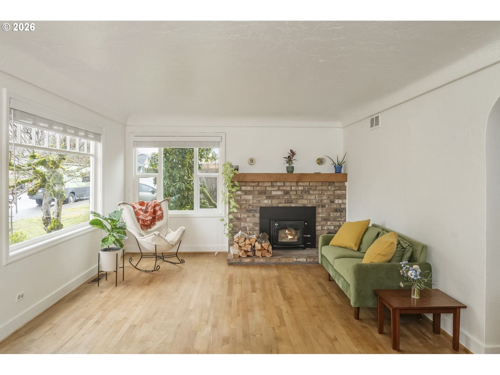 Welcome home to this darling 40's bungalow, with charming archways, coved ceilings, and updated corner windows that fill the home with light. Relax in your private backyard or get to work tinkering in the permitted 30X30 workshop with the half bathroom. The attached garage passes through to the backyard for easy access, as well as the alleyway behind! The fireplace chimney has been recently tuck pointed, and the new woodstove makes for cozy evenings in the living room. The home comes equipped with a high efficiency furnace, newer gas water heater, stackable washer and dryer, and newer 200amp electrical panel. Nearby to parks, golf course, downtown Hillsboro amenities, and public transportation. Roof, gutters, and furnace were just cleaned and serviced, and the interior was freshly painted so you can move right in! [Home Energy Score = 2. HES Report at https://rpt.greenbuildingregistry.com/hes/OR10243390]