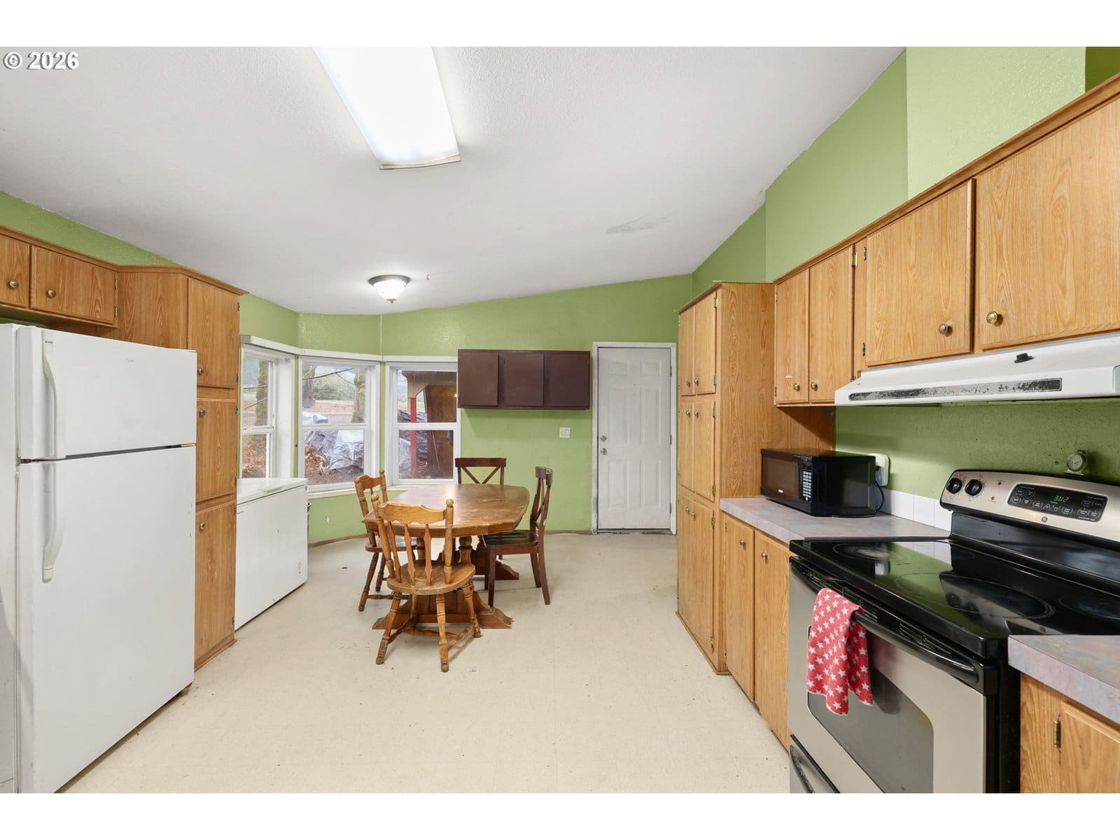Washer, Dryer, Free-Standing Range, Free-Standing Refrigerator, Range Hood