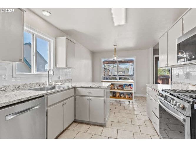 You will appreciate the floorplan & room to roam in this 2323 sq ft 4 bed/3 bath home, situated in a desireable cul de sac location. Formal dining & eat in kitchen match any mealtime lifestyles. Spacious primary suite w/ shower & soaking bathtub combo in bathroom & heated tile floors! Watch movies in the oversized downstairs family/bonus room, wired & ready for your speakers. Head outside to the deck & fenced backyard from either level. Oversized windows throughout create tons of natural lighting! Peace of mind for energy efficiency with this one! Newer gas furnace & heat pump (2023), 50 year roof (2019) & new attic insulation (2026). Easy commute to I205 or Padden PKWY.