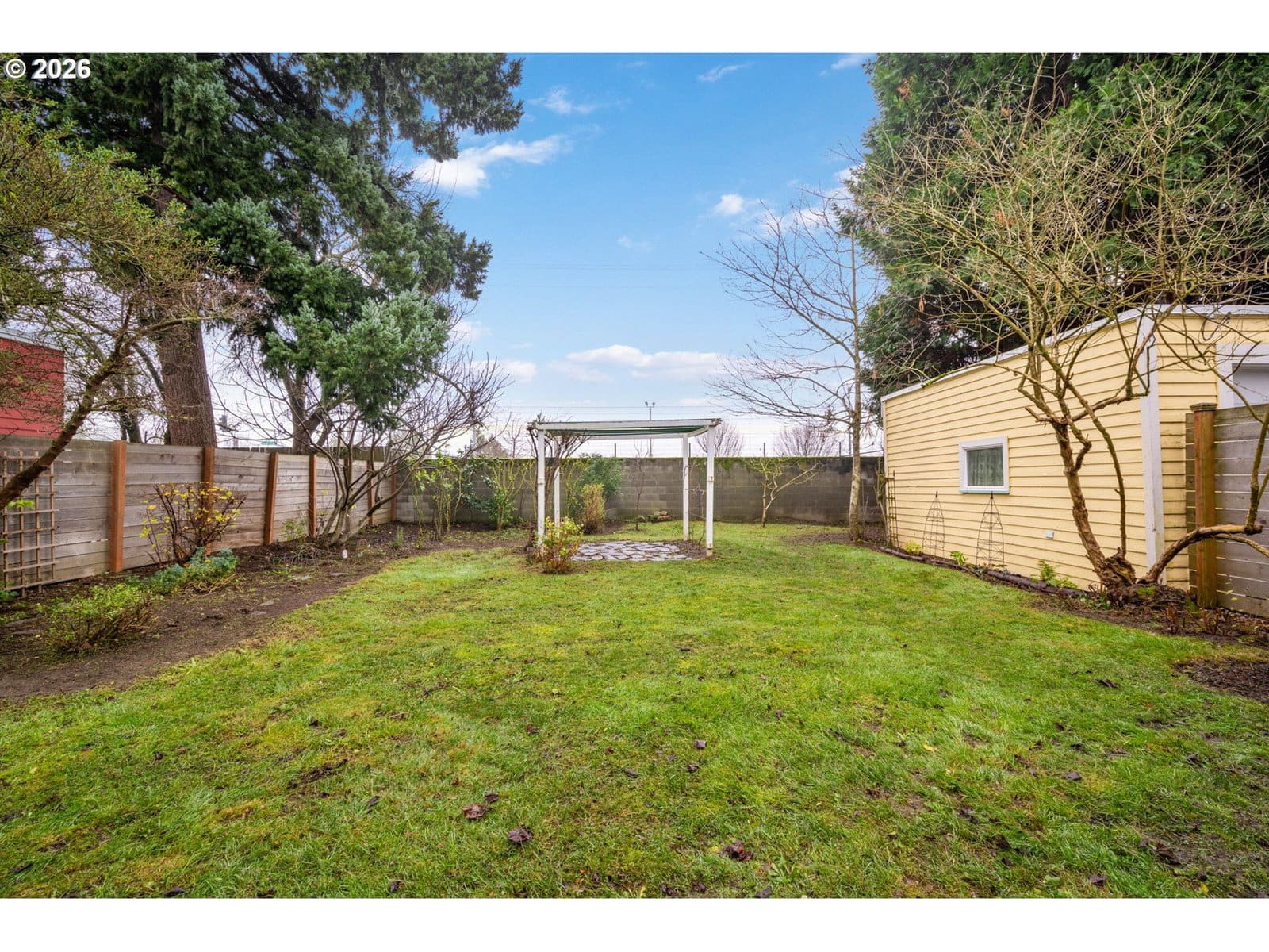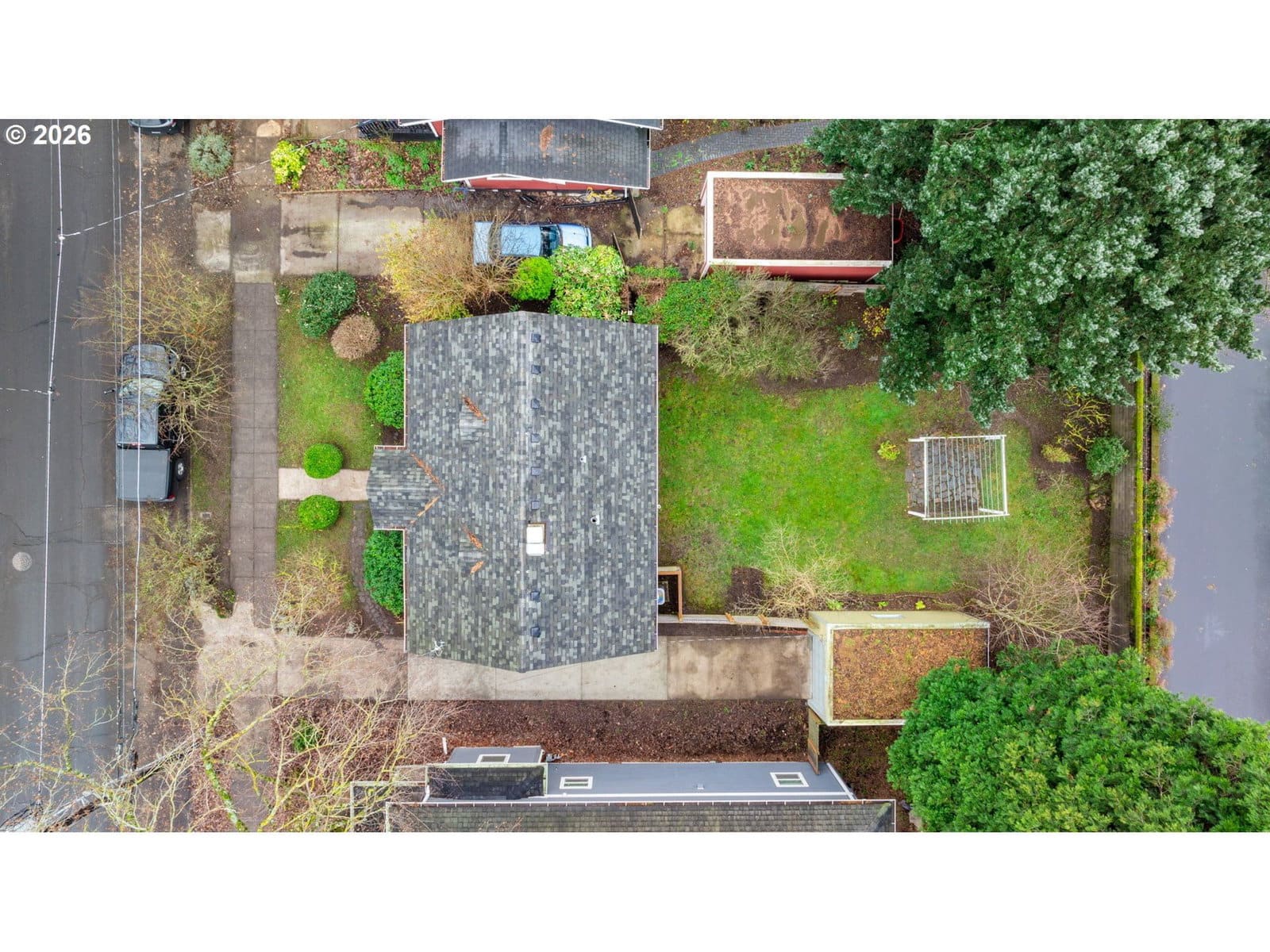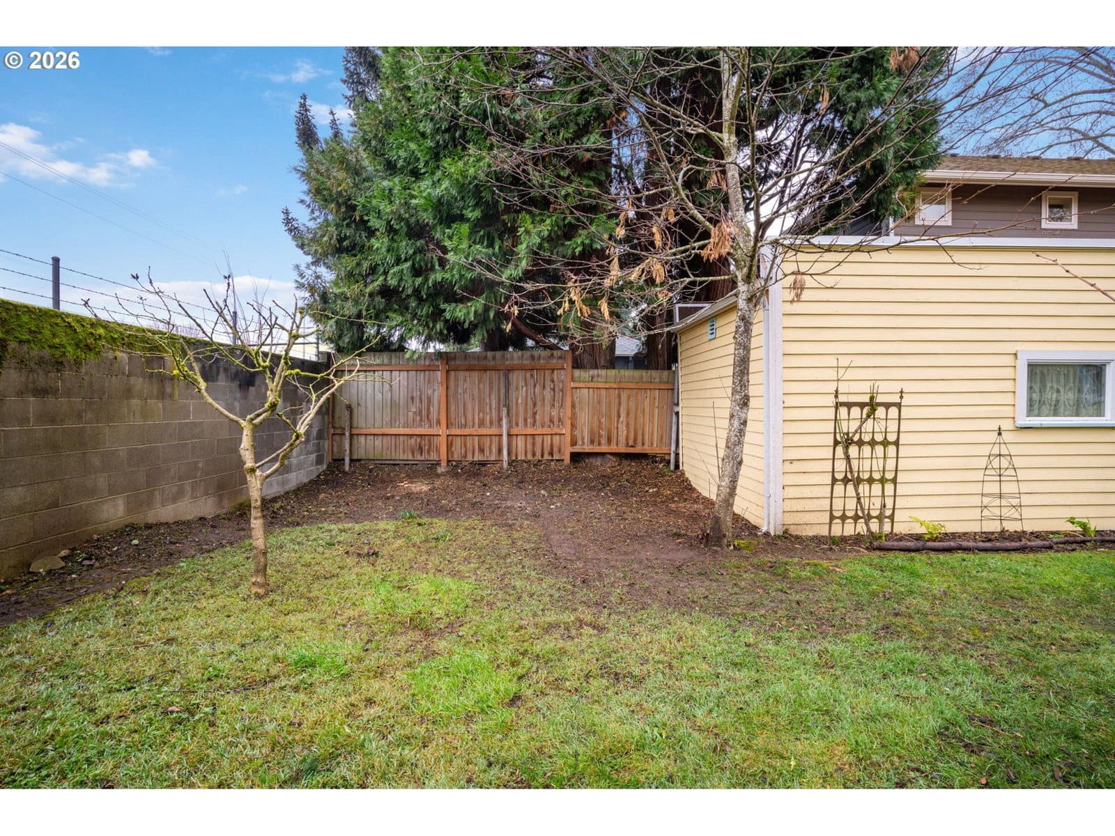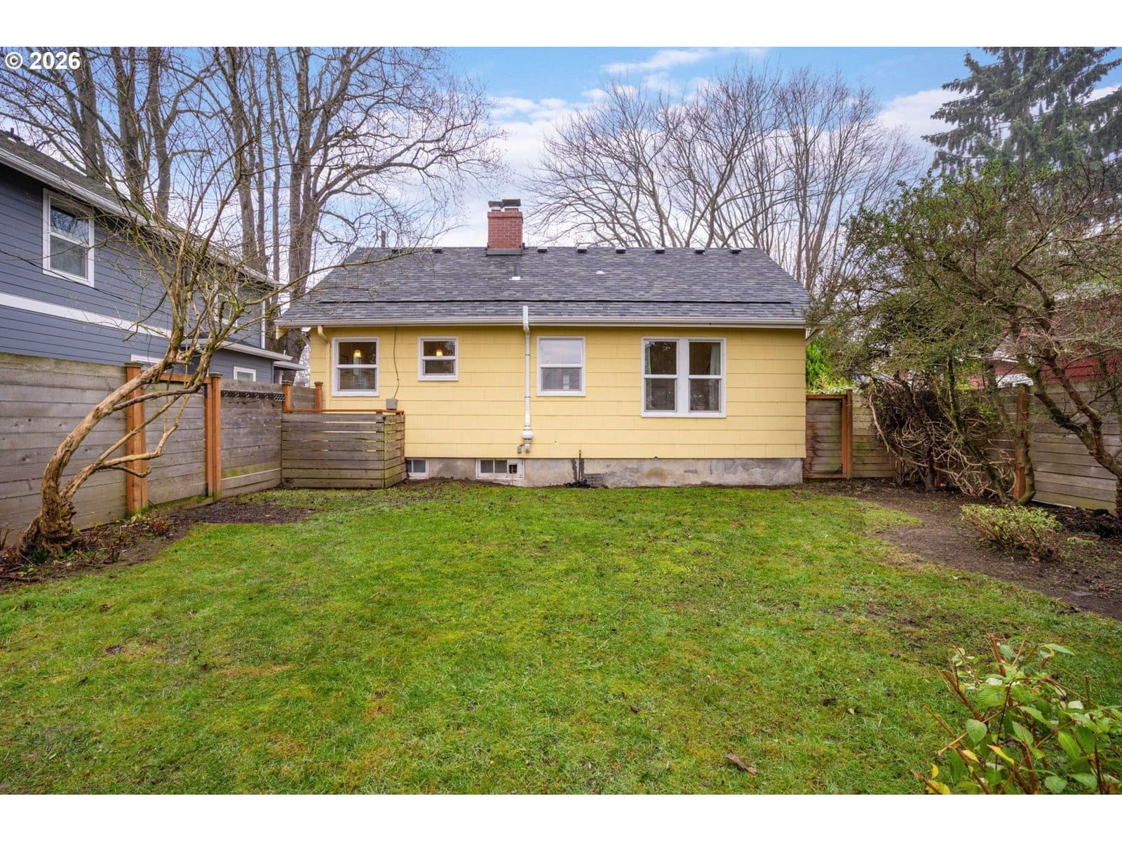 Adorable Brooklyn Bungalow on a large, private lot with bountiful landscape. This sweet home has all the things: original wood floors, millwork and solid kitchen cabinets, cast iron tub, sweet eyebrow dormers and wood burning fireplace with newer chimney (2023). Vinyl windows throughout, dishwasher and new stainless LG French Door refrigerator. Updated electrical with convenient details like smart outlets by the bed. Pex plumbing, newer roof (2022). Detached, dry, 11 x 18 garage - park your car or enjoy ample storage. Furnace & AC were replaced in 2018, and a large part of the foundation was reinforced in 2020. The basement has great ceiling height, is dry, clean and offers the beginning of finishing with an insulated, drywalled, doored and lit office space. Washer, dryer and utility sink in laundry corner and a 2024 energy efficient, heat pump hot water tank and 2024 radon mitigation! In the growing seasons, find pear, apple, and fig trees, as well as blueberries, grapes, raspberries, several varietals of roses, and many herbs growing in the garden. The back is fully fenced with no neighbors to the rear. Sound barrier to the already quiet light rail and parking behind the property along 17th. Brooklyn is an active community with parks, tennis and pickleball courts as well as bars, restaurants and coffee shops just blocks away. 92 Walk Score, 100 Bike Score! [Home Energy Score = 5. HES Report at https://rpt.greenbuildingregistry.com/hes/OR10219806]