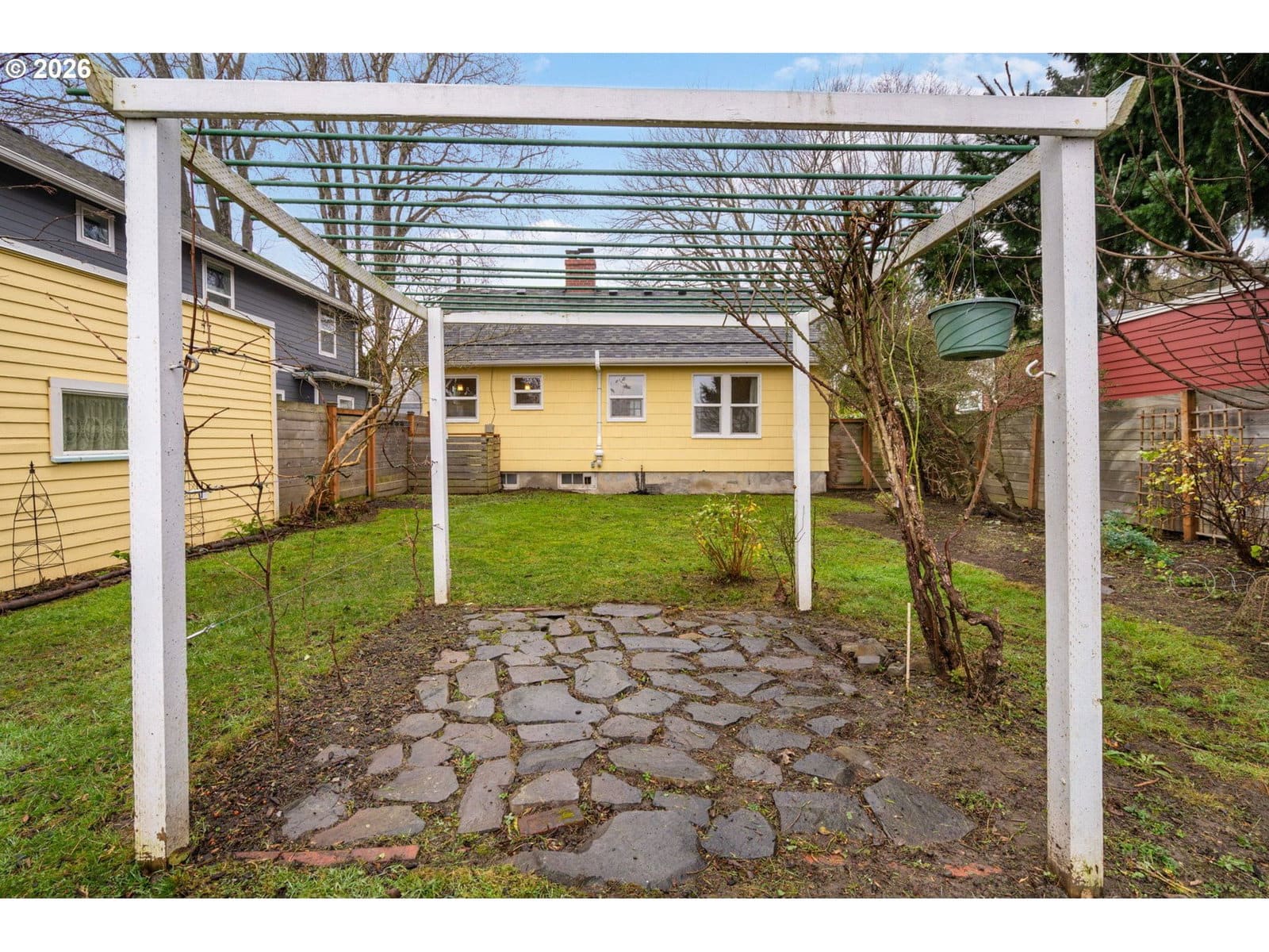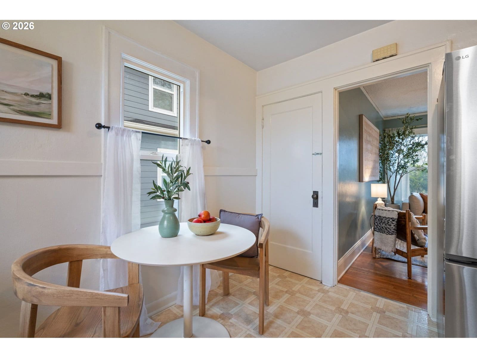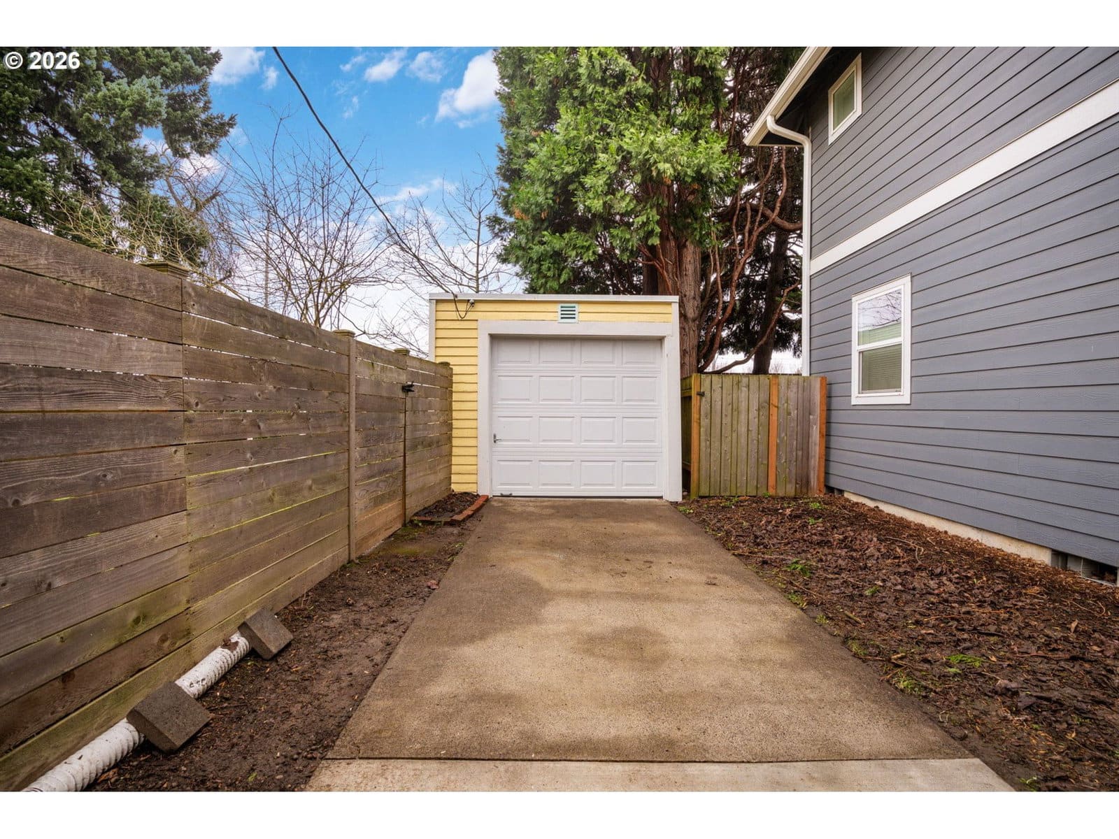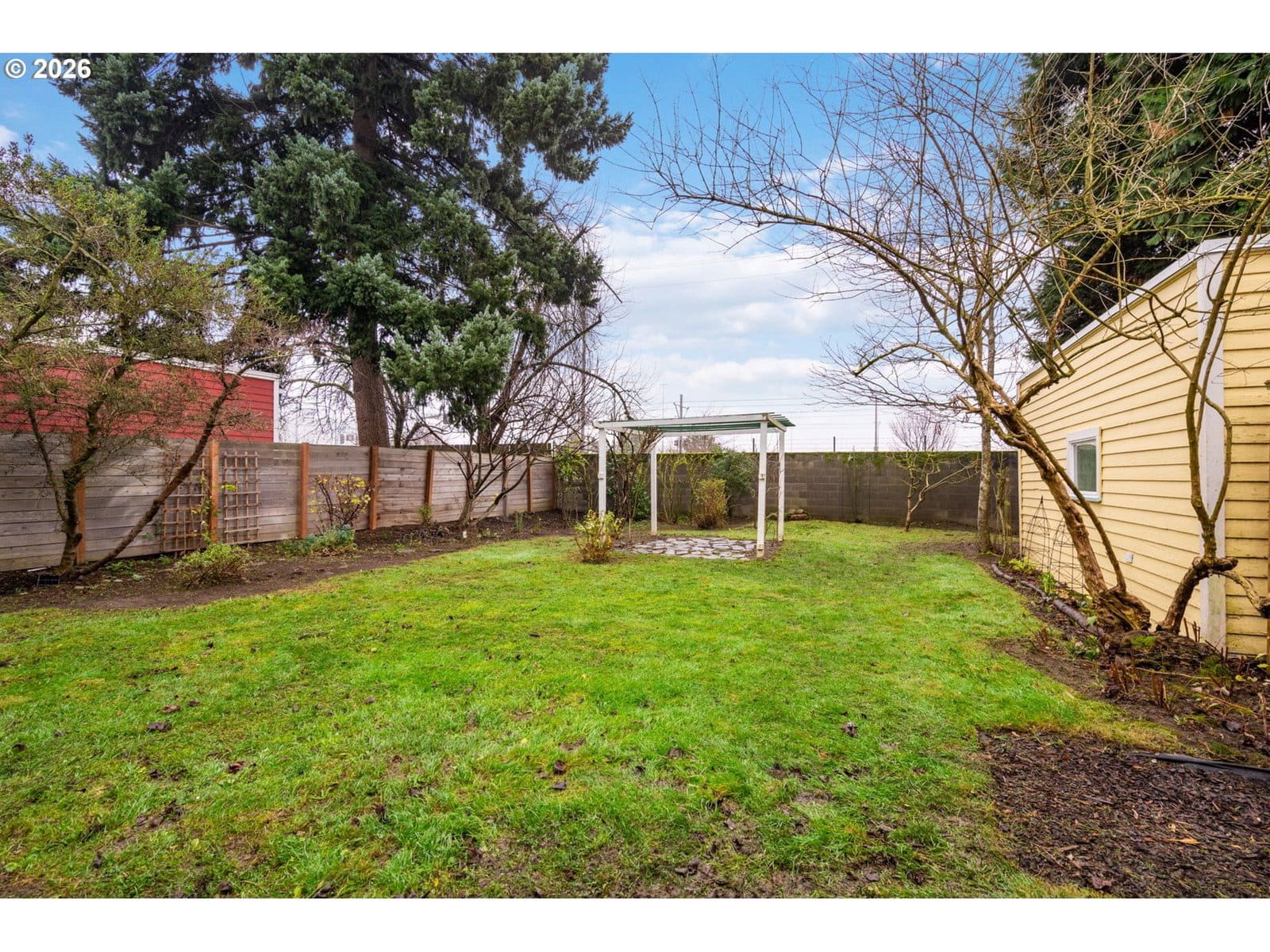 Adorable Brooklyn Bungalow on a large, private lot with bountiful landscape. This sweet home has all the things: original wood floors, millwork and solid kitchen cabinets, cast iron tub, sweet eyebrow dormers and wood burning fireplace with newer chimney (2023). Vinyl windows throughout, dishwasher and new stainless LG French Door refrigerator. Updated electrical with convenient details like smart outlets by the bed. Pex plumbing, newer roof (2022). Detached, dry, 11 x 18 garage - park your car or enjoy ample storage. Furnace & AC were replaced in 2018, and a large part of the foundation was reinforced in 2020. The basement has great ceiling height, is dry, clean and offers the beginning of finishing with an insulated, drywalled, doored and lit office space. Washer, dryer and utility sink in laundry corner and a 2024 energy efficient, heat pump hot water tank and 2024 radon mitigation! In the growing seasons, find pear, apple, and fig trees, as well as blueberries, grapes, raspberries, several varietals of roses, and many herbs growing in the garden. The back is fully fenced with no neighbors to the rear. Sound barrier to the already quiet light rail and parking behind the property along 17th. Brooklyn is an active community with parks, tennis and pickleball courts as well as bars, restaurants and coffee shops just blocks away. 92 Walk Score, 100 Bike Score! [Home Energy Score = 5. HES Report at https://rpt.greenbuildingregistry.com/hes/OR10219806]