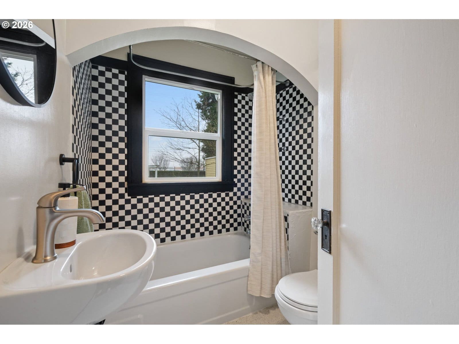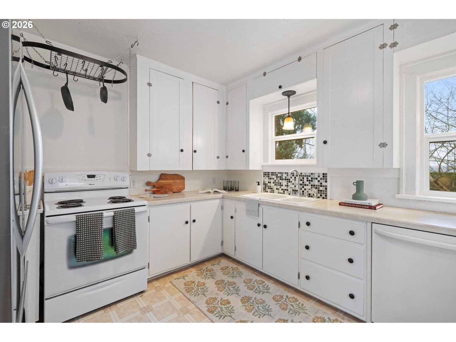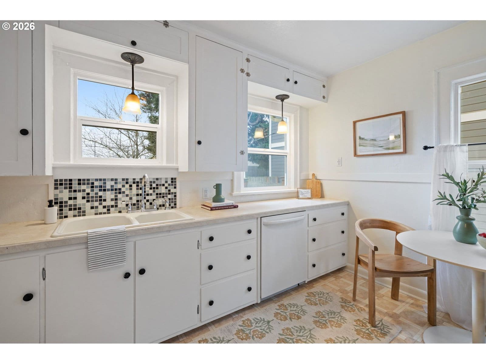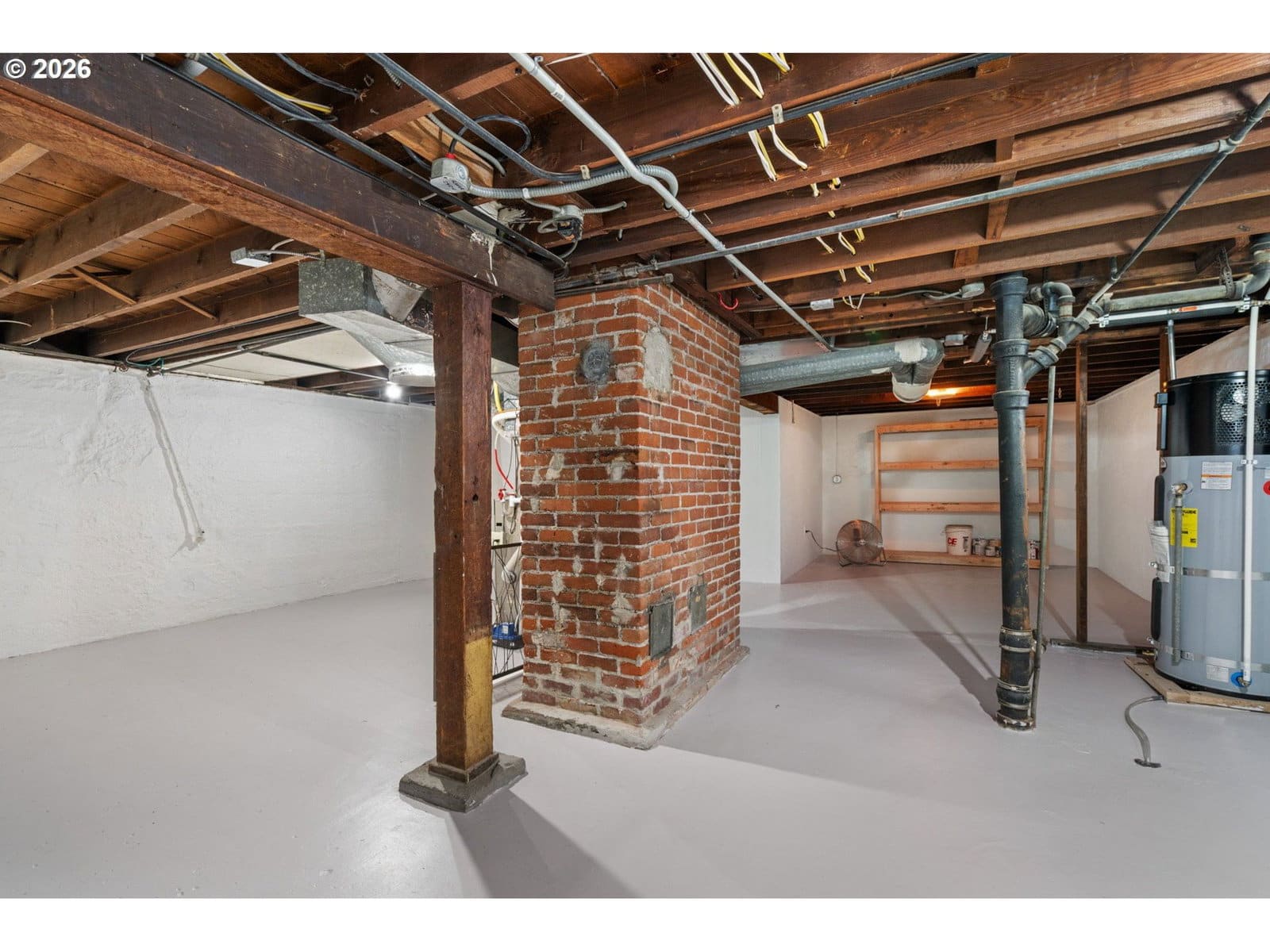 Adorable Brooklyn Bungalow on a large, private lot with bountiful landscape. This sweet home has all the things: original wood floors, millwork and solid kitchen cabinets, cast iron tub, sweet eyebrow dormers and wood burning fireplace with newer chimney (2023). Vinyl windows throughout, dishwasher and new stainless LG French Door refrigerator. Updated electrical with convenient details like smart outlets by the bed. Pex plumbing, newer roof (2022). Detached, dry, 11 x 18 garage - park your car or enjoy ample storage. Furnace & AC were replaced in 2018, and a large part of the foundation was reinforced in 2020. The basement has great ceiling height, is dry, clean and offers the beginning of finishing with an insulated, drywalled, doored and lit office space. Washer, dryer and utility sink in laundry corner and a 2024 energy efficient, heat pump hot water tank and 2024 radon mitigation! In the growing seasons, find pear, apple, and fig trees, as well as blueberries, grapes, raspberries, several varietals of roses, and many herbs growing in the garden. The back is fully fenced with no neighbors to the rear. Sound barrier to the already quiet light rail and parking behind the property along 17th. Brooklyn is an active community with parks, tennis and pickleball courts as well as bars, restaurants and coffee shops just blocks away. 92 Walk Score, 100 Bike Score! [Home Energy Score = 5. HES Report at https://rpt.greenbuildingregistry.com/hes/OR10219806]