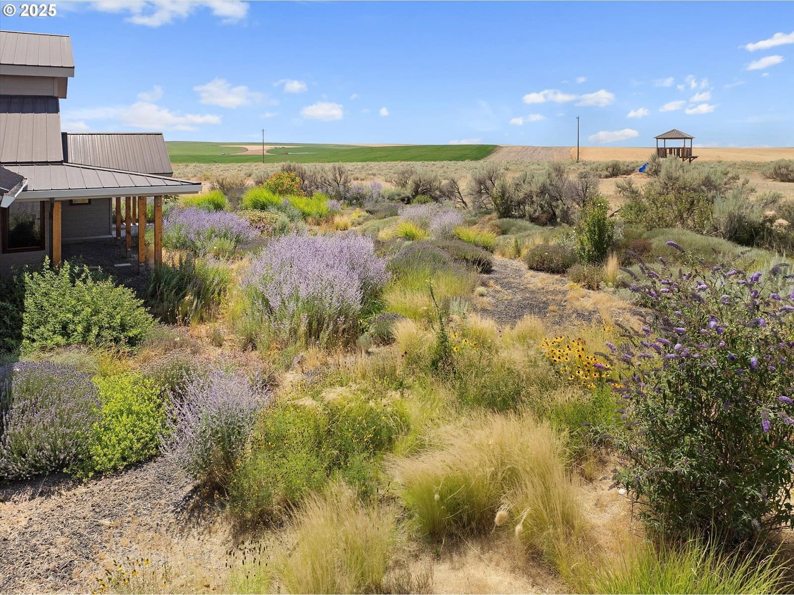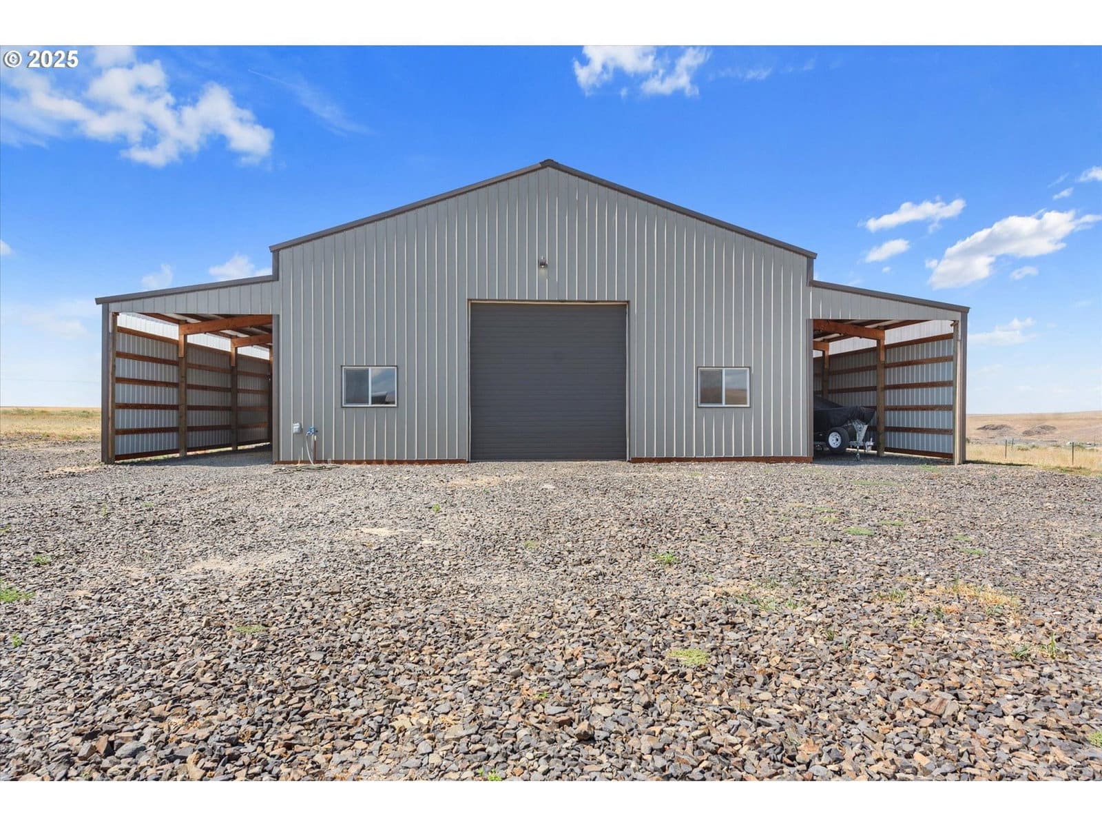 Architect-Designed Retreat on 159 Acres in Lexington, Oregon. This one-of-a-kind home sits on 159 acres of scenic land with stunning views of the Blue Mountains and Mount Adams. The thoughtfully designed single-level, 2,211 sq.ft. home features 3 bedrooms and 2 baths, cathedral ceilings with exposed trusses, custom windows, and gleaming bamboo floors. A double-sided wood-burning fireplace adds warmth and charm to the open-concept living area. Kitchen with maple cabinets, quartz countertops and a breakfast island. Master suite with walk-in closet. The home is energy-efficient, built with Structural Insulated Panels (SIPs), and equipped with a new 2023 propane furnace and electric heat pump. An air filtration system adds to the home's quality living environment. Two-car attached garage. Step outside to a wrap-around porch and flagstone patio surrounded by waterwise landscaping; lavender, native grasses, and sagebrush—designed to attract birds, deer, and other wildlife. Approximately 90 acres are in a FSA Conservation Reserve Program (CRP), providing annual income and enhancing habitat for local species. The property includes a massive 5,220 sq.ft. shop with power, water, concrete floors & insulated front half, and high-clearance bays for RV or equipment storage. The 864 sq.ft. barn includes two stalls, hay storage, paddocks, and an 18-acre fenced pasture—ideal for horses or other livestock. Plus, there’s a chicken coop, storage & wood shed, and 3-phase power at the barnyard. The well produces an impressive 70 gal/minute, and the property has a standard septic system. Located just 13 miles from charming small town of Heppner—"Gateway to the Blues"—and within easy reach of Hermiston, Pendleton, and the Tri-Cities. This property offers privacy, wildlife, and incredible craftsmanship in a serene setting.Don’t miss this rare opportunity to own a truly special home in Eastern Oregon.