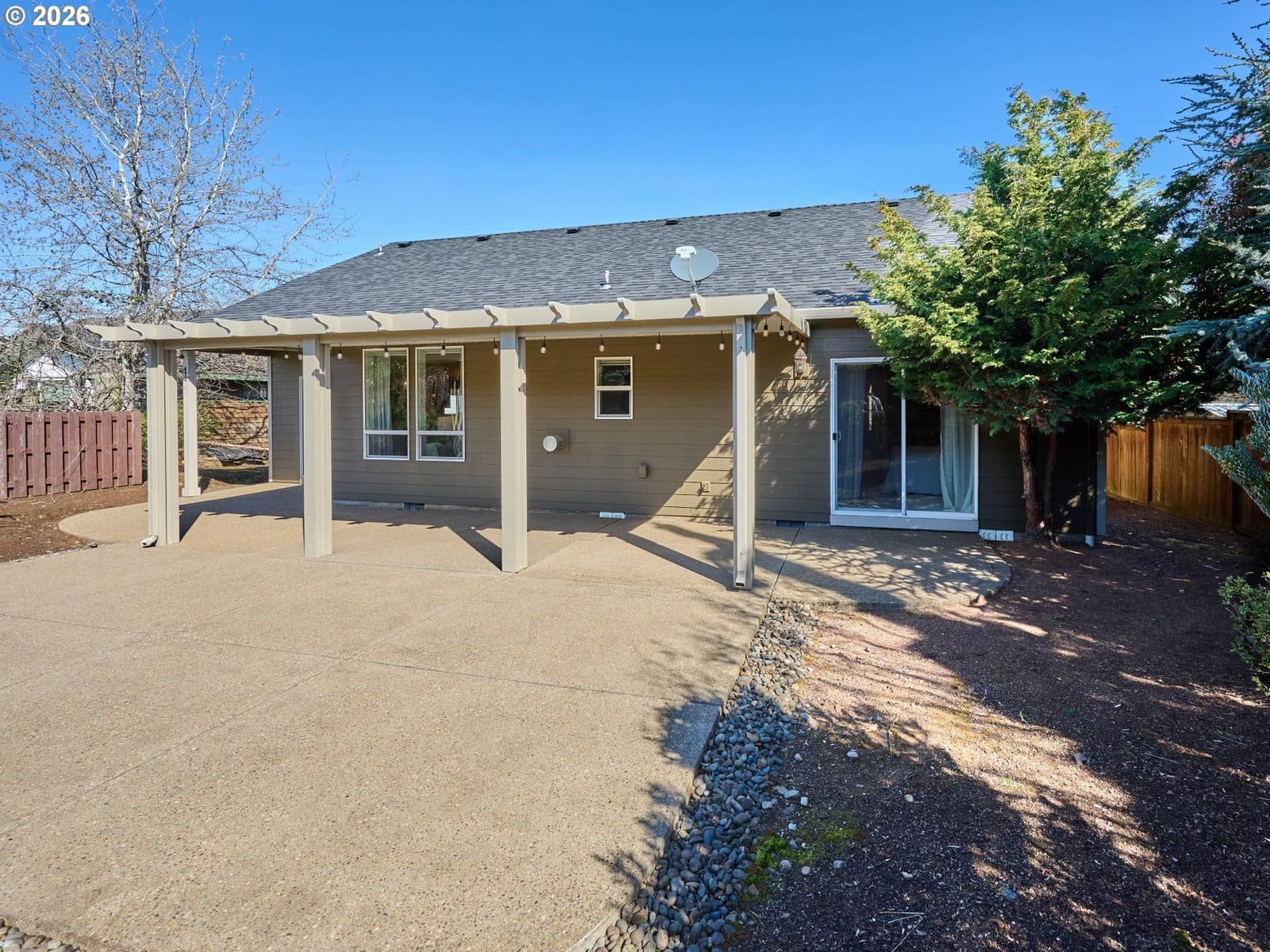 Charming Breyonna Way home with flexible 3 bed/2bath or 2 bed + office layout. Well designed floor plan with private primary suite and patio access. Light and bright living room with high ceilings and a cozy gas fireplace. Large garage with extra storage. Relax in the fenced backyard featuring a custom built pergola and tranquil rock water feature. Backs to open field, creating a quiet and private setting.