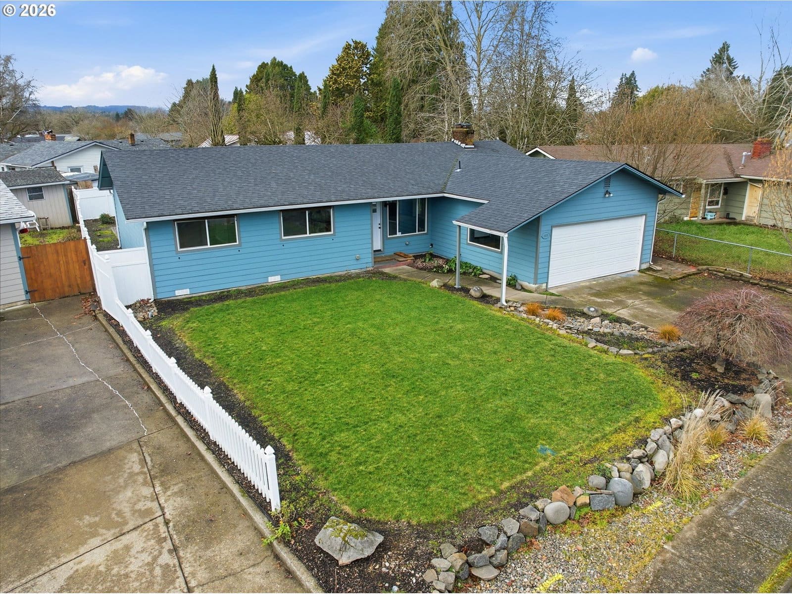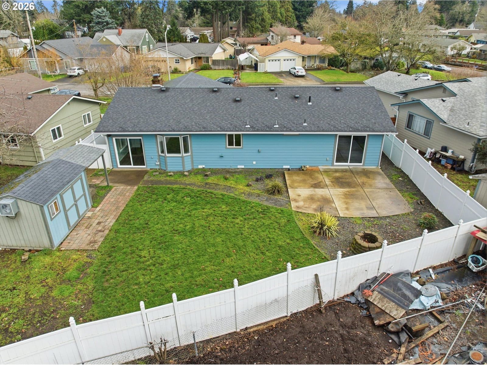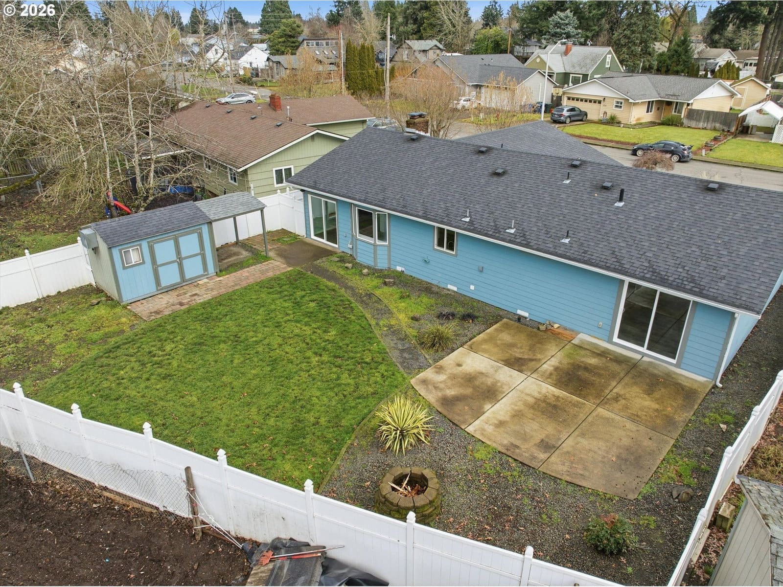 Welcome to this beautifully maintained three-bedroom, two-bathroom home on a quiet street in Keizer. This single-level residence features an inviting open-concept layout with a cozy electric fireplace and laminate flooring throughout. The updated kitchen is a chef’s dream, offering stainless steel appliances, a double oven, custom cabinetry, granite countertops, a tile backsplash, a spacious island with eating bar, and a pantry. The primary suite includes a generous closet with built-ins, private backyard access, and a spa-like bathroom with double sinks, a walk-in shower, and a soaking tub. Enjoy a fully fenced backyard with a hot tub-ready patio, fire pit, Tuff Shed, and garden area—perfect for outdoor living. Updates include a new roof, gutters, electrical panel, siding, interior/exterior paint, doors, lighting, flooring, and more. Conveniently located near excellent schools, parks, and amenities, this move-in-ready home is waiting for you!