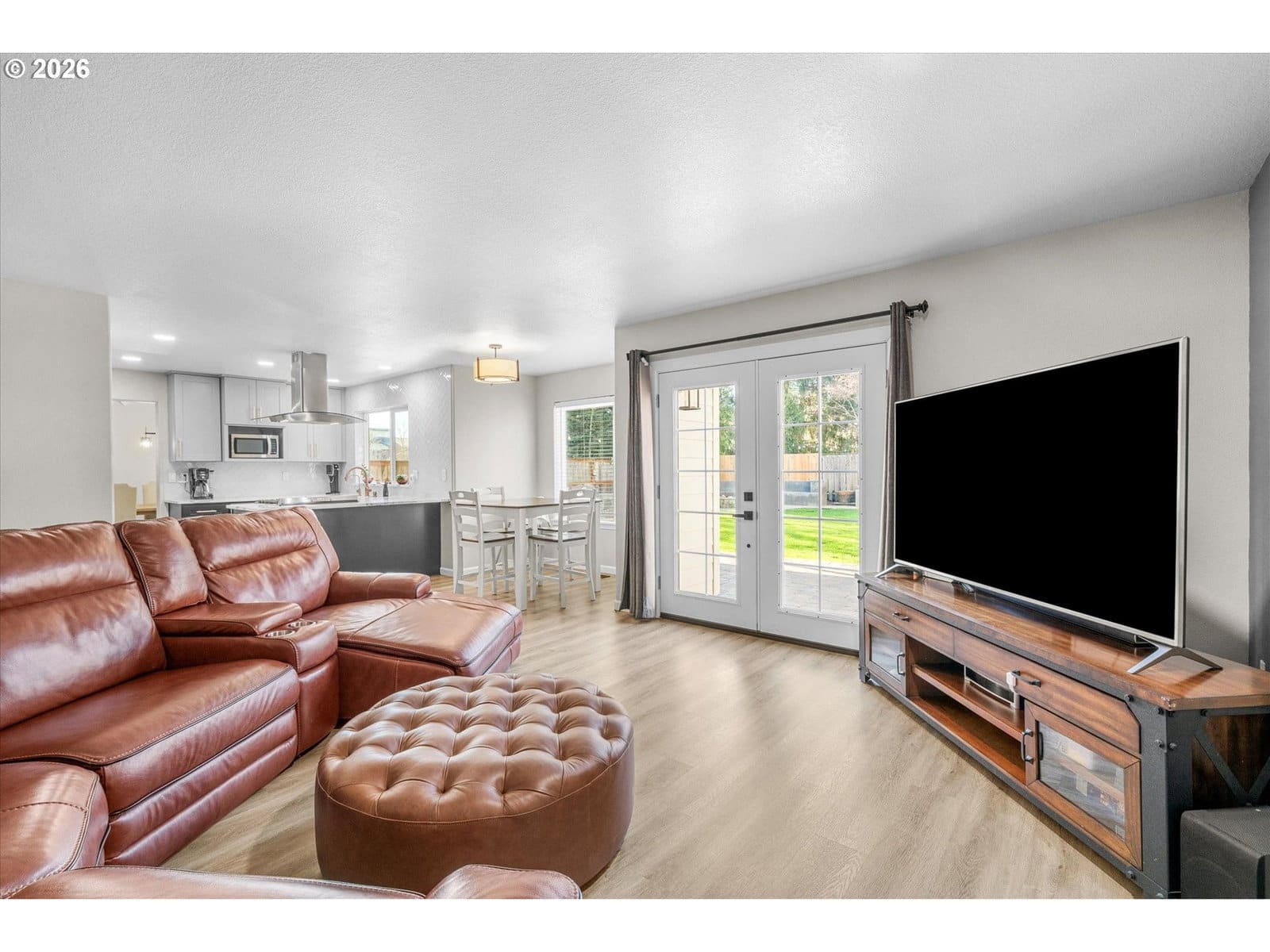 Beautiful 4 bedroom home and a nice landscaped lot. Backyard with fire pit, concrete planters, Covered patio. Roof installed in 2021. Upgrades since 2023 include: new windows, French door installed, completely remodeled kitchen which includes: gas stove, new cabinets, new appliances, quartz counter tops, backsplash with glass tile. Quartz surrounding the fireplace, new dining room chandeliers. New bathroom cabinets, sink and quartz countertops. Extra washer/dryer hook ups in the garage with sink. New water heater and heating and ac systems. Exterior painted and floors installed. Sprinkler system front and back. Move-in ready and enjoy! Amazing fenced backyard. 3D Matterport on Homes.com The back of the school is at the end of the street. No School traffic comes down the road only teachers to park for the day.Open Sunday,2/22..2-4pm. [Home Energy Score = 4. HES Report at https://rpt.greenbuildingregistry.com/hes/OR10206415]