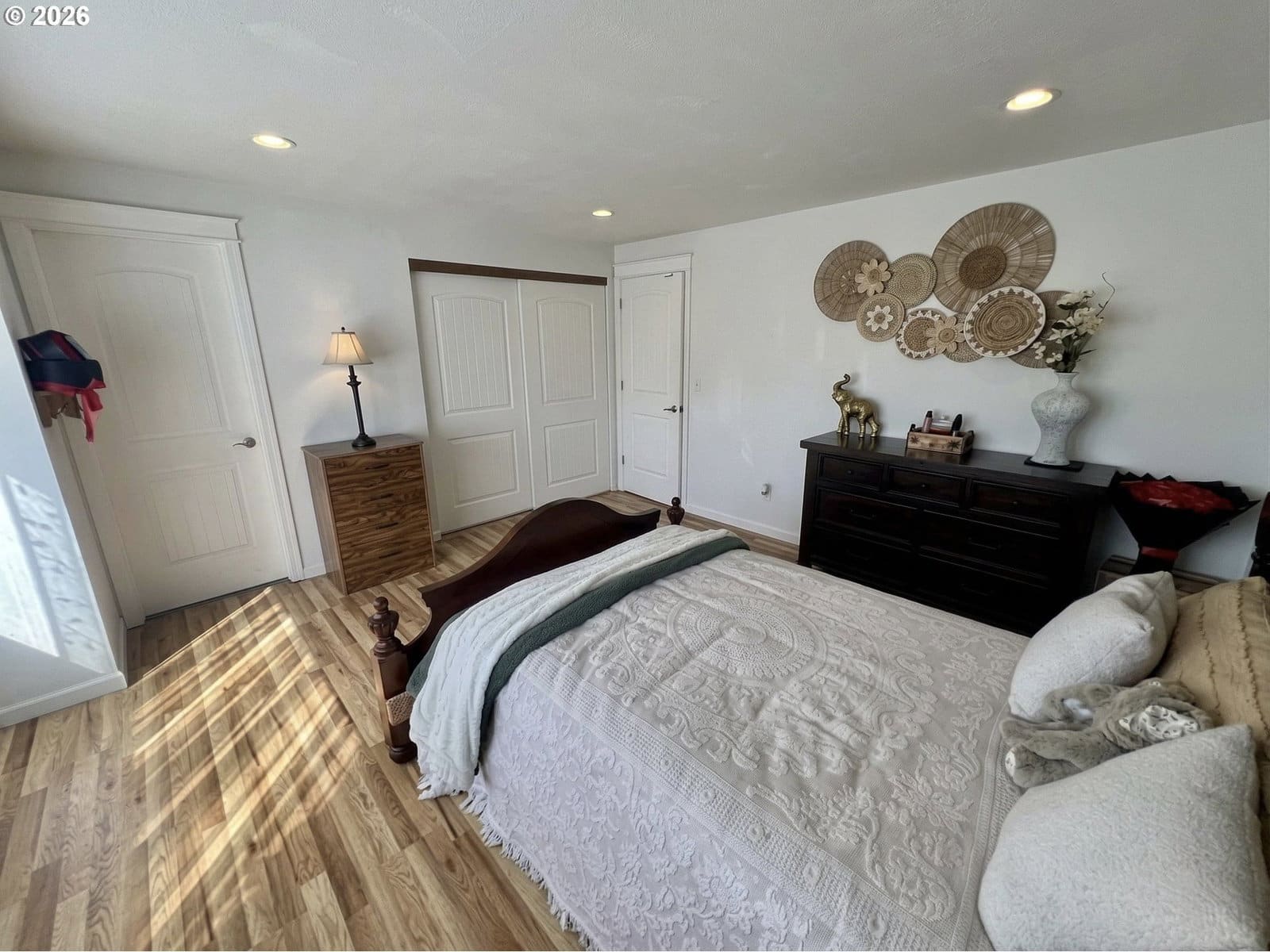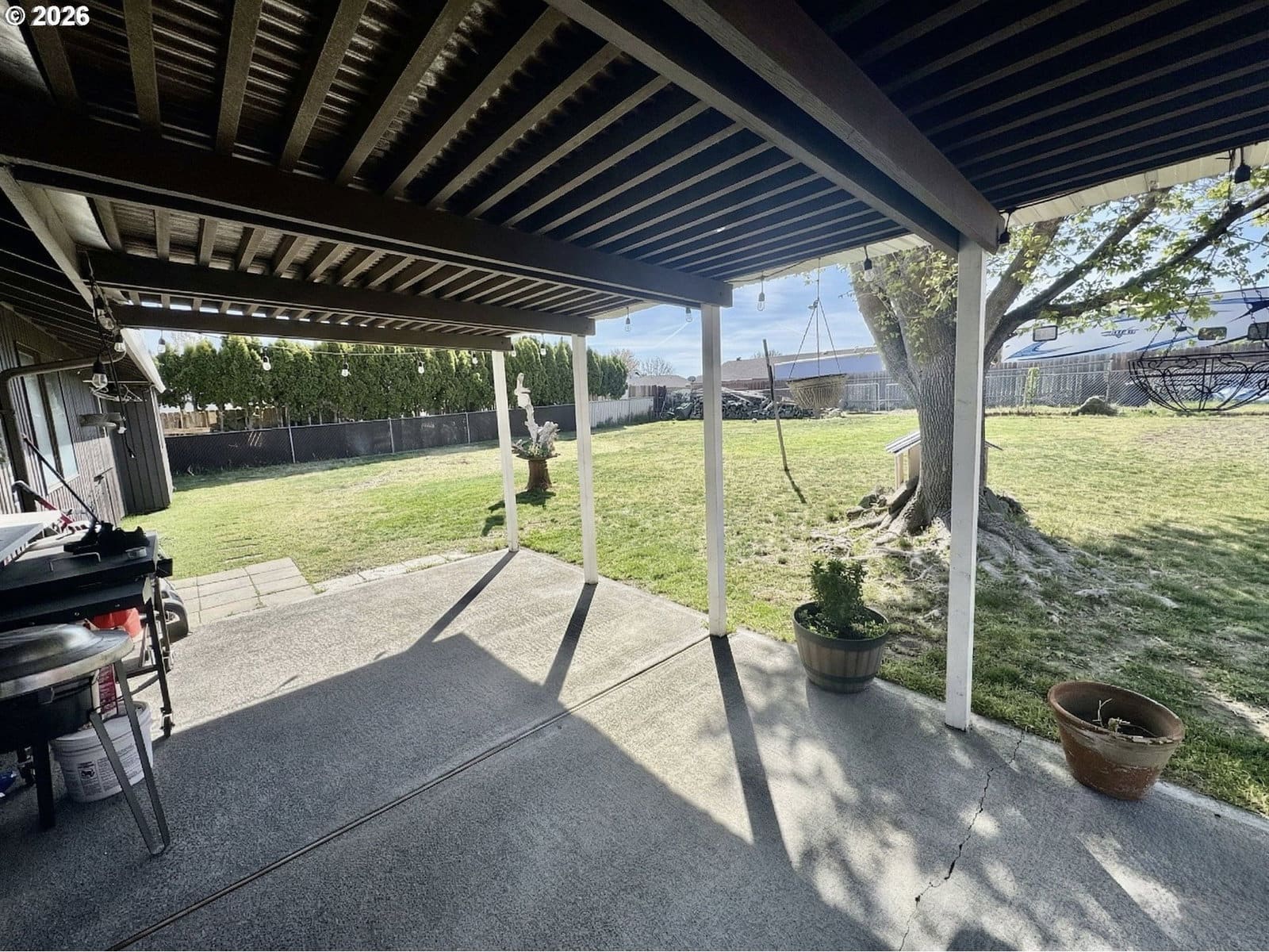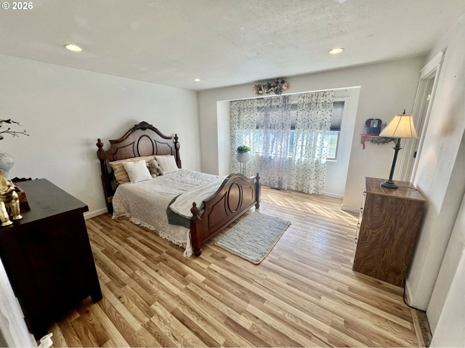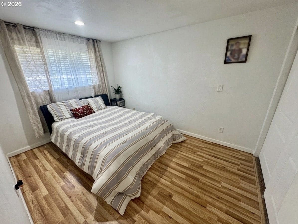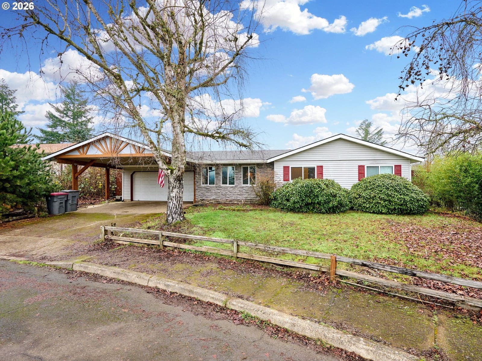 3 beds, 2 bath home with 1,420 sqft. Multipurpose living space with flexibility to arrange the living room in different areas, plus a separation in the middle that creates additional usable space. Kitchen features a peninsula with extra room for movement and connection to the dining area. Hardwood flooring and luxury vinyl plank throughout the main areas, along with a wood fireplace. All bedrooms are located on one side of the home for added privacy, convenience, and sound separation. Main bedroom includes can lighting and a bump-out window design. Bathrooms have updated counters, and there are can lights in the dining area. Sliding door in the dining area provides access to the back patio. Backyard offers a large open space with alley access for additional entry or a shortcut. 2-car garage included.