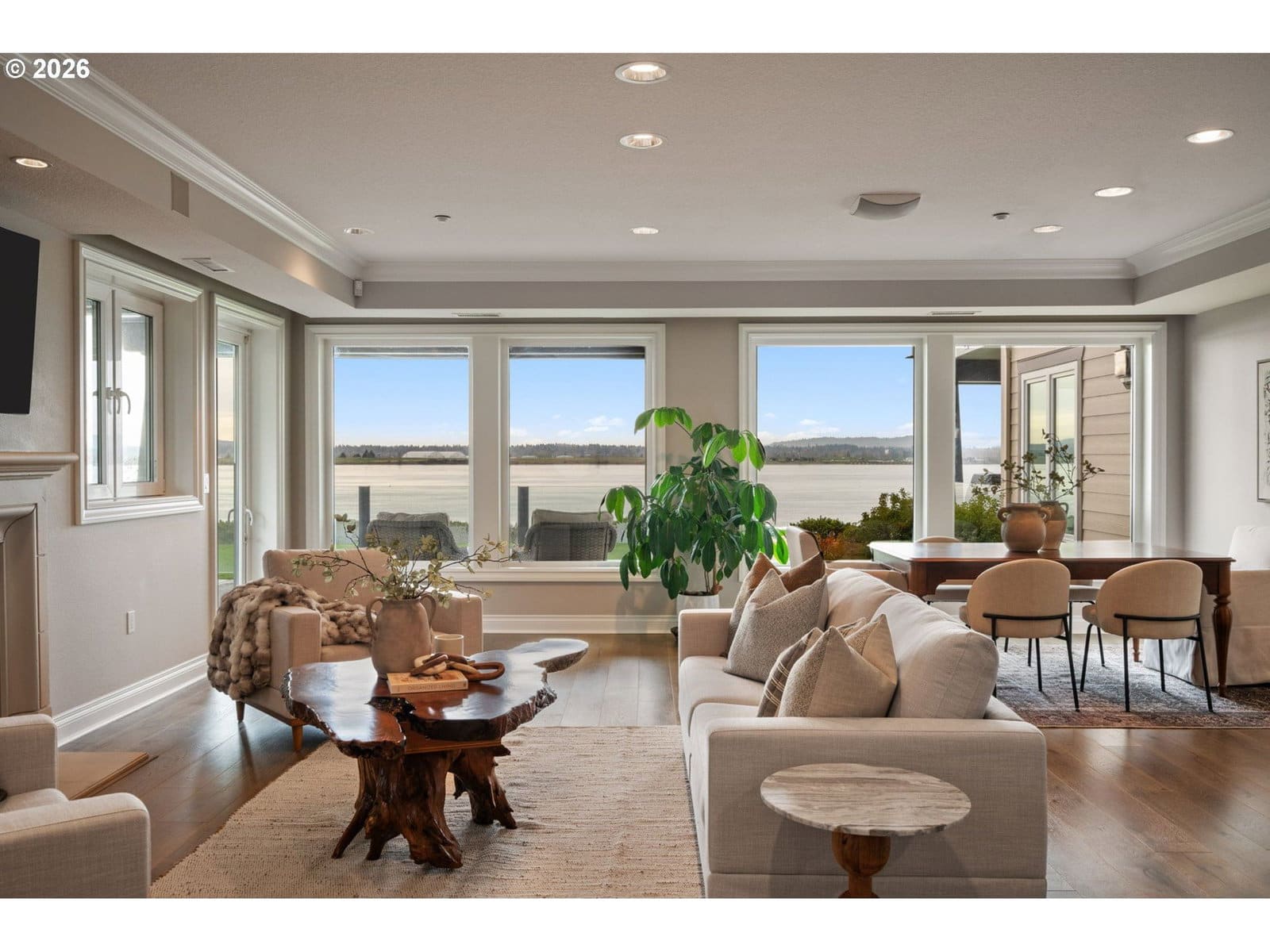 Discover the pinnacle of luxurious riverfront living at The Sahalie at Tidewater Cove. Miles and miles of panoramic waterfront views offer an atmosphere of tranquility as boats sail up and down the river. Premier community with gated entry, gated courtyard, elevator to secured parking (2 dedicated/deeded spaces) and a 400sf secured storage unit. This ground floor one level corner unit condo has 2,356sf of living space, two deluxe primary suites + versatile 3rd room with built in Murphy bed. Rooms are generously proportioned for a sense of spaciousness and the extra wide hallway and entryway provide ease of access. Spectacular sweeping views of the Columbia River from the kitchen, great room and covered patio. The HOA provides an amazing array of amenities including a rec center, pool/spa area, well-equipped fitness center, exterior/grounds maintenance, management, insurance, trash, water, sewer. Direct gated access to the Columbia River Renaissance Trail and is close to the marina, Vancouver Waterfront Park and downtown for culture, shopping and restaurants. Two parking spaces and storage unit transfer with the sale. This riverfront condo is more than a residence, it provides low maintenance quiet resort-style living. Come experience the views firsthand.