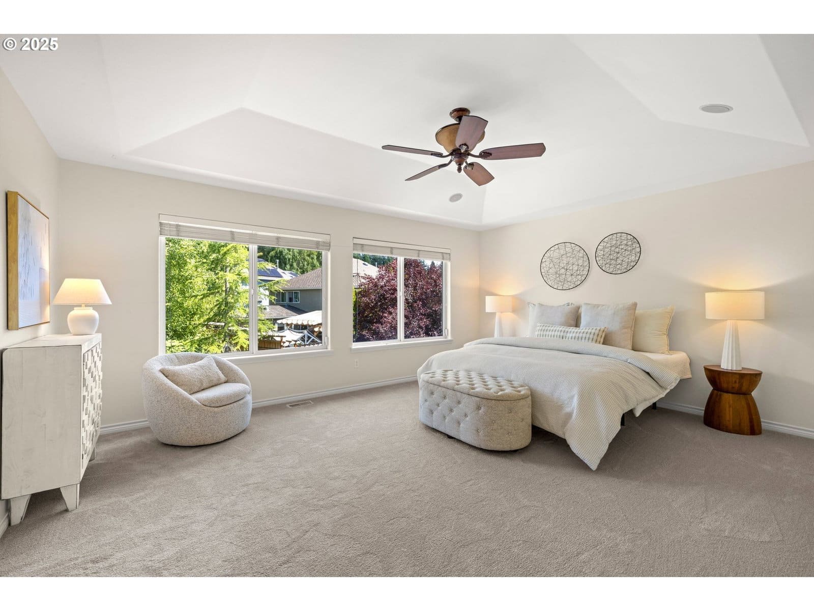 This Oakridge Estates home makes a statement from the start with great curb appeal and a grand entry that welcomes you in. Large windows throughout bring in plenty of natural light, and with new carpet and fresh paint, the home feels bright and move-in ready. The main level includes a full bedroom and adjacent full bath—ideal for guests, extended stays, or use as a home office. The layout flows easily between living spaces, offering flexibility for everyday living or gatherings. Upstairs, the primary suite is a standout with dual walk-in closets featuring California Closet organizers, a soaking tub, walk-in shower, and double vanity. Additional bedrooms and baths provide plenty of space for everyone. The oversized three-car garage comes with built-in storage and an EV charger, making room for cars, hobbies, and gear. Outside, the backyard backs to the recently renovated neighborhood park that creates a serene outlook with mature landscaping and generous space for entertaining or simply relaxing in private. The neighborhood adds even more to enjoy with tennis courts, a community amphitheater, park, playground and neighborhood events. The location is also served by highly rated schools, including Findley, Tumwater and Sunset.