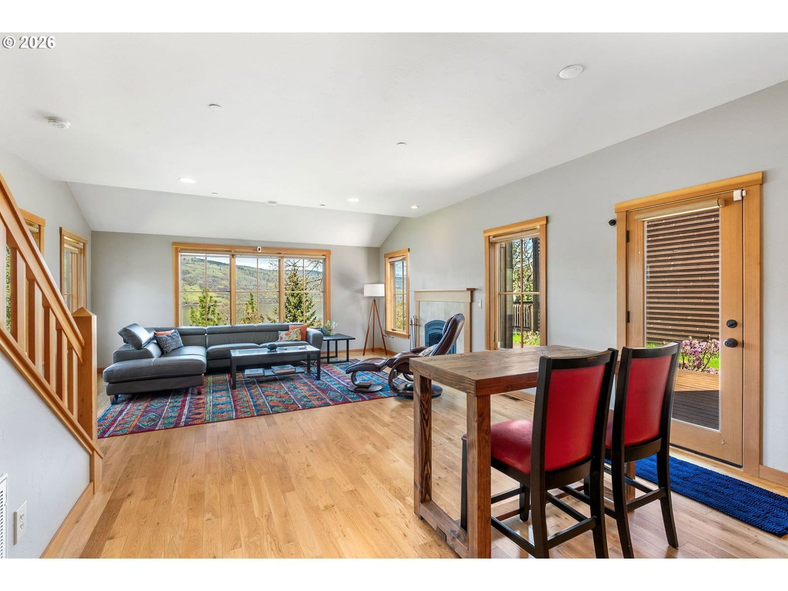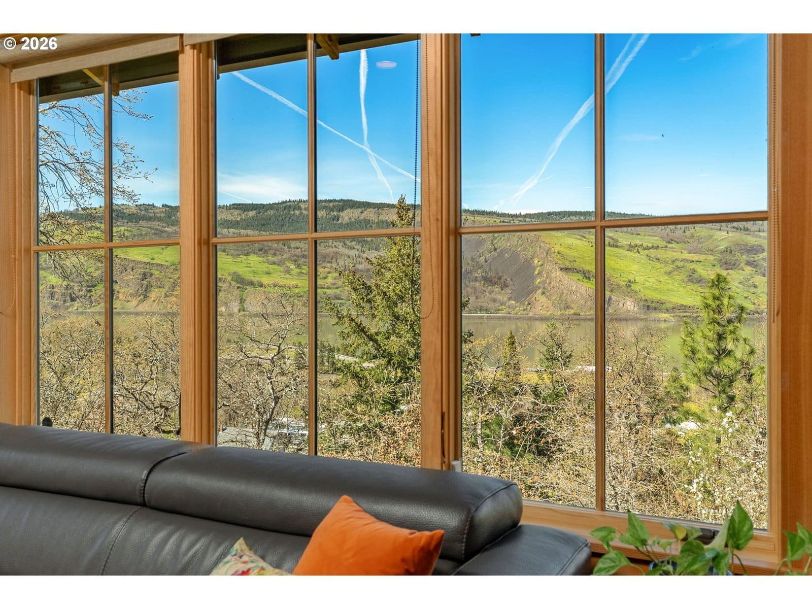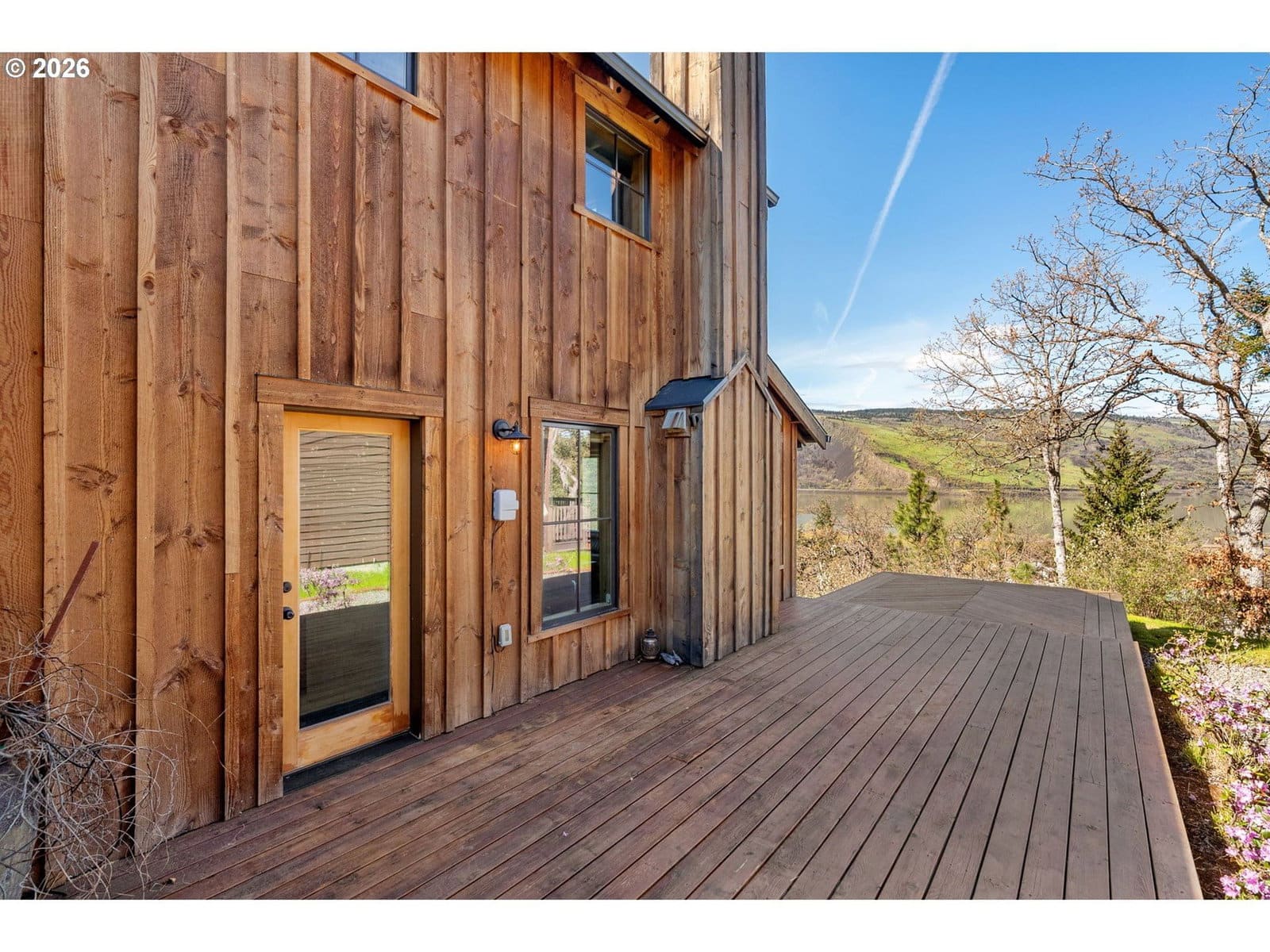 Perched above the Columbia River on a scenic bluff, this beautifully crafted modern Craftsman captures breathtaking, unobstructed views of the river, Coyote Wall, and the dramatic Syncline. Designed to complement the natural beauty of the Gorge, the home features classic Northwest architecture with warm cedar board-and-batten siding and high-quality finishes throughout.This 3-bedroom, 2-bath home offers an open-concept layout filled with natural light. Expansive windows frame ever-changing river vistas and seasonal colors, while the inviting living room features a cozy wood-burning fireplace—perfect for relaxing year-round. The well-appointed kitchen combines style and function with new appliances, including an induction range, along with quartz and butcher block countertops. Step out to the wind-protected deck, ideal for outdoor dining, entertaining, or simply taking in the views.The flexible floor plan includes a main-level bedroom and full bath, plus two vaulted upstairs bedrooms with an additional full bath—perfect for guests, remote work, or creative space. Thoughtful design ensures stunning views from nearly every room, creating a seamless connection to the surrounding landscape.A covered breezeway leads to the detached two-car garage, offering ample storage for vehicles and gear. The landscaped yard features mature plantings and raised garden beds, ideal for those who enjoy gardening and outdoor living.This property is just a short walk to downtown Mosier, with easy access to shops, dining, and coffee. Enjoy nearby recreation including the Historic Columbia River Highway and Mosier Waterfront Park. Enjoy a peaceful Gorge retreat with unforgettable views.
