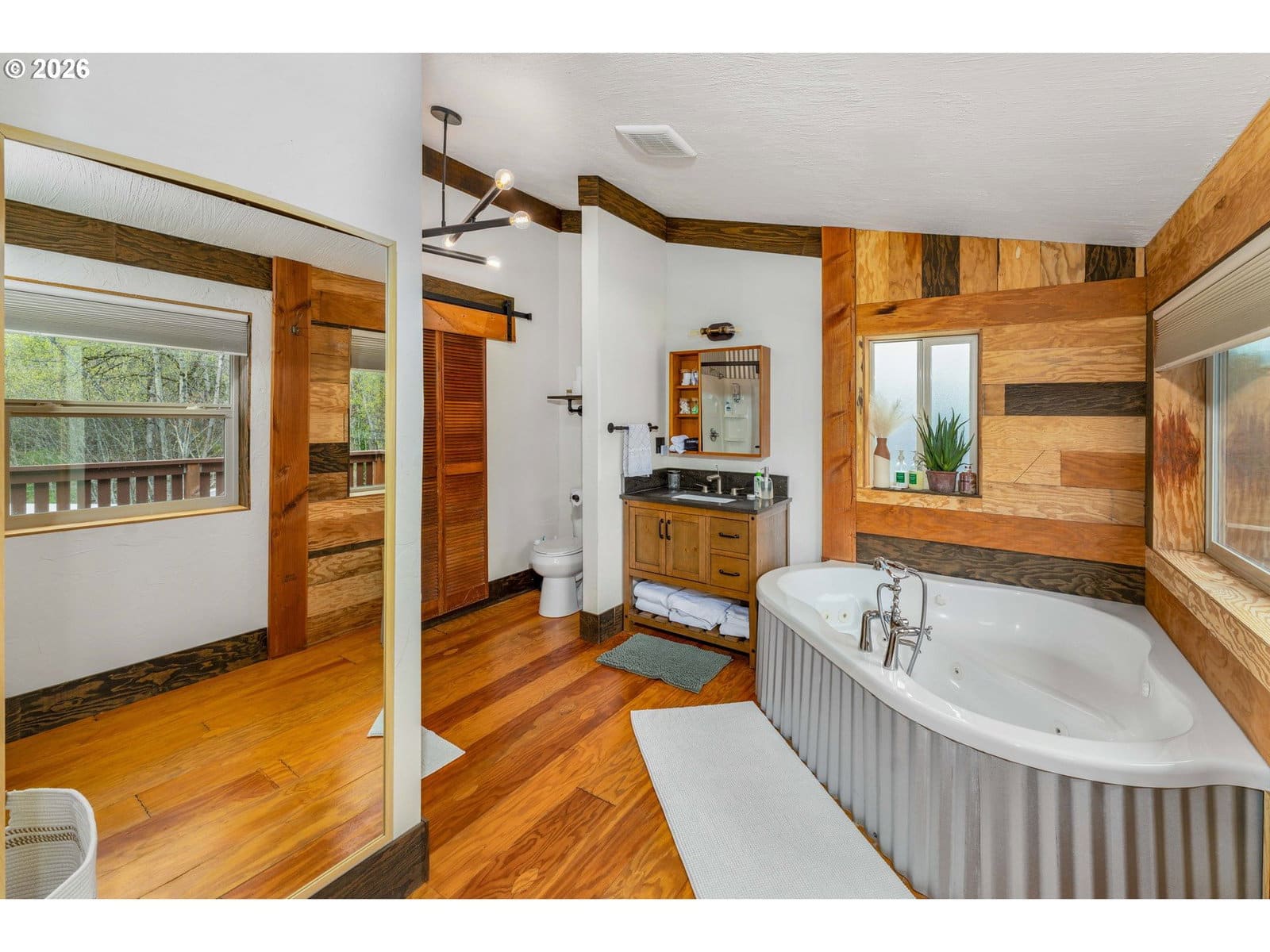 Turnkey investment opportunity in Oakridge. Built in 2018, this custom home is a proven, successful Airbnb with $26,523 in 2025 bookings across 167 nights and an average stay of 3.2 nights. Located in Salmon Creek Estates, this property offers a peaceful setting with mountain views out front and greenspace along Salmon Creek behind. Thoughtfully updated with a bike wash station, new concrete slab with cover, refreshed shed and decks, exterior stain (2024), new hot water heater, cold-weather rated mini splits, updated kitchen sink and bathroom vanities, resealed concrete, and new landscaping with garden beds. The home features a unique, custom design with an eclectic feel, including salvaged barn style doors, a lofted primary suite with bonus space, and inviting outdoor areas with room to relax or entertain.Ideal as a short term rental, second home, or full time residence in one of Oregon’s top outdoor recreation destinations. Seller is also open to selling fully furnished.
