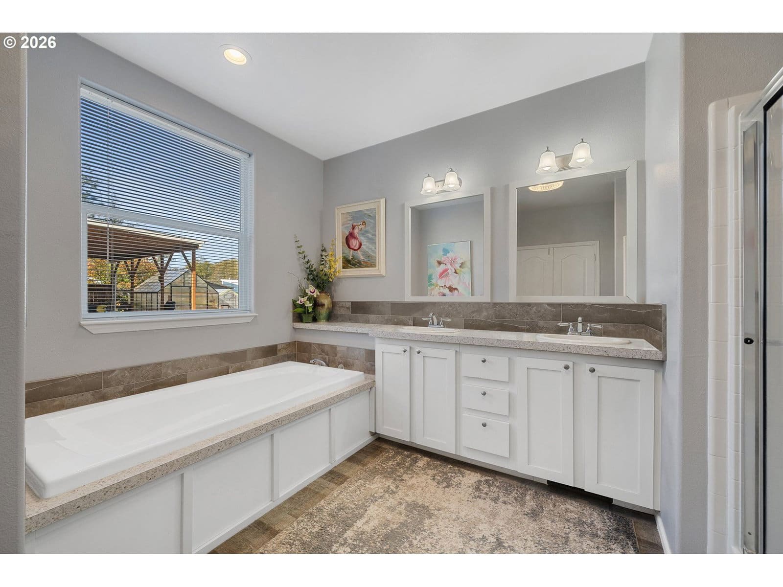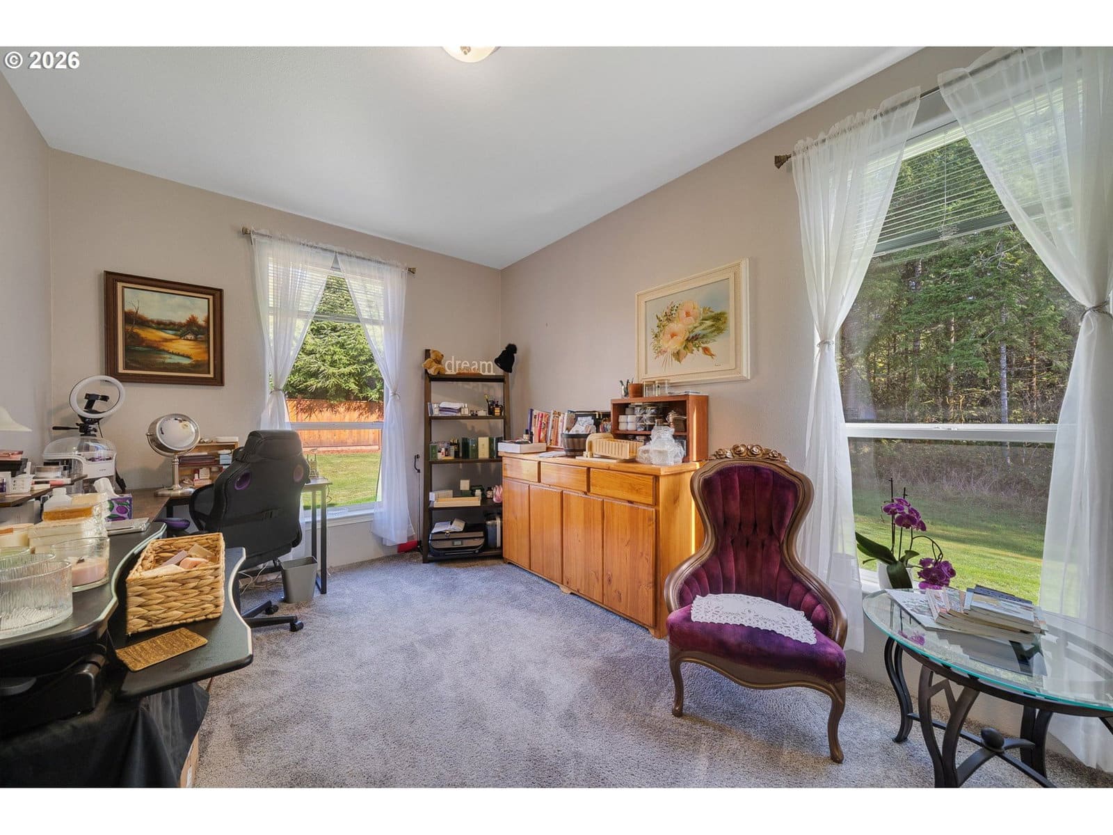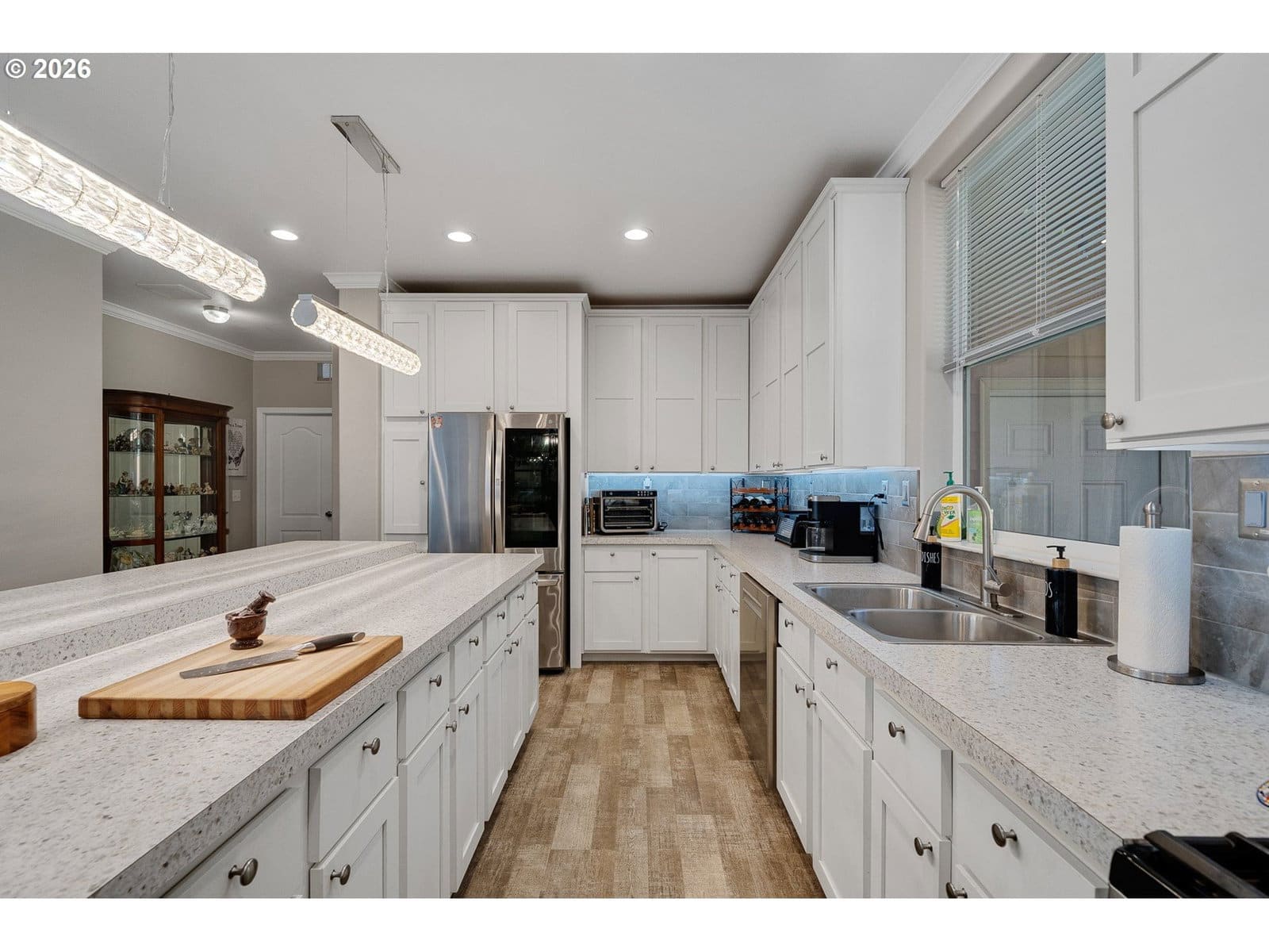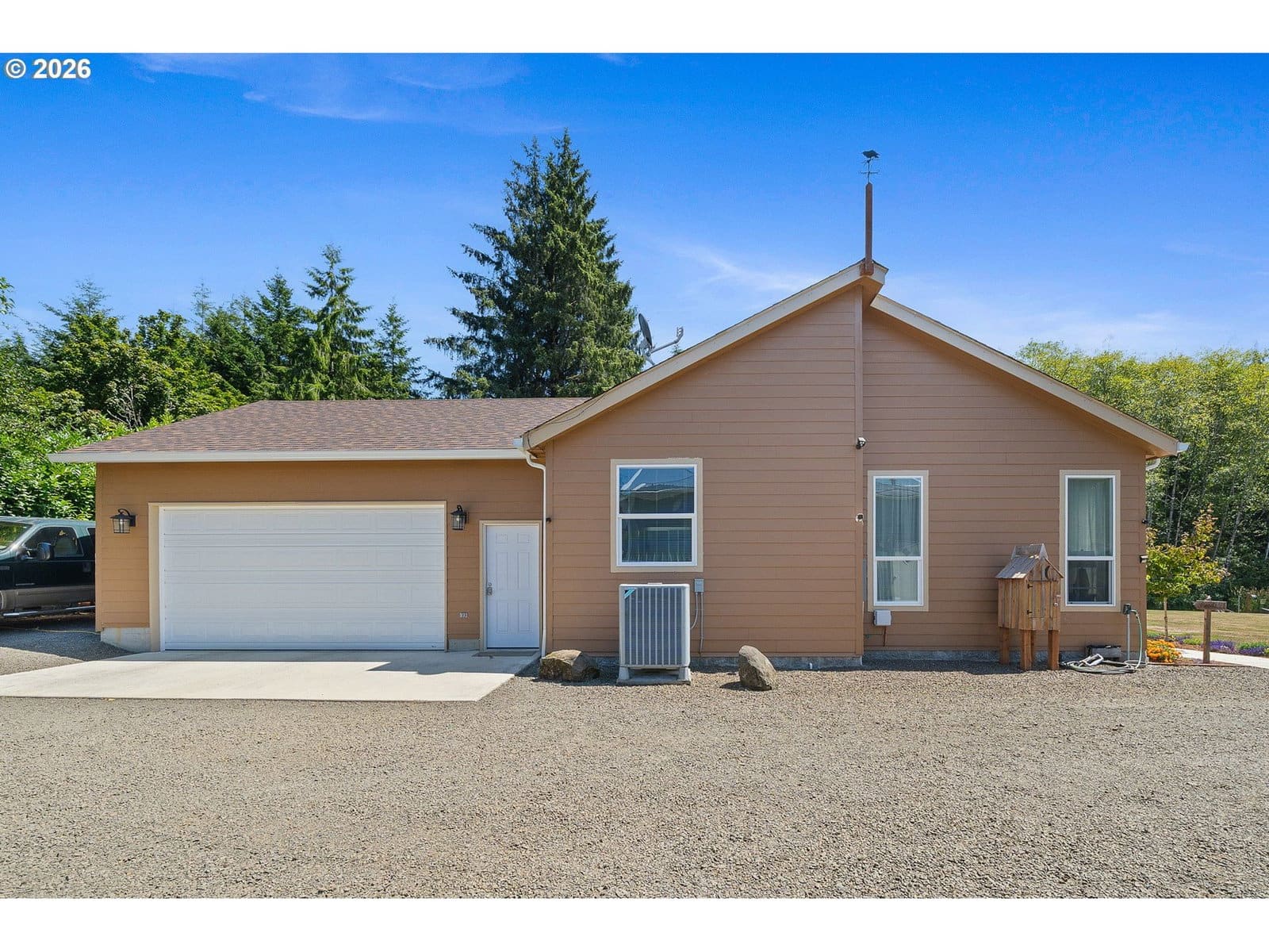 Welcome to this beautifully maintained 2021 home, where modern comfort meets thoughtful design. 9-foot ceilings with crown molding blend seamlessly with the home's neutral color palette, creating a light and airy atmosphere throughout the main living spaces. The layout flows effortlessly from the living room into the kitchen and dining area, offering a comfortable and functional space for both everyday living and entertaining. The kitchen features stainless steel appliances, a large island with breakfast bar seating, and ample cabinetry; all positioned to keep you connected to the heart of the home. Just off the dining area, a sliding glass door leads to a covered outdoor sitting area and a fully fenced backyard—perfect for relaxing or hosting year-round. The primary suite is spacious and private, complete with a large ensuite bathroom featuring double sinks, a walk-in shower, a separate soaking tub, and generous storage. An oversized walk-in closet adds even more functionality to the space. Outside, the property is well-equipped for hobbies, projects, or small-scale homesteading. Highlights include hot and cold water at the exterior spigot, a 30x35 shop with two bays and a wood stove, a covered carport, a 10x12 greenhouse, and a chicken coop with an enclosed run. The level lot provides usable space with a sense of privacy, surrounded by a peaceful, forested backdrop.