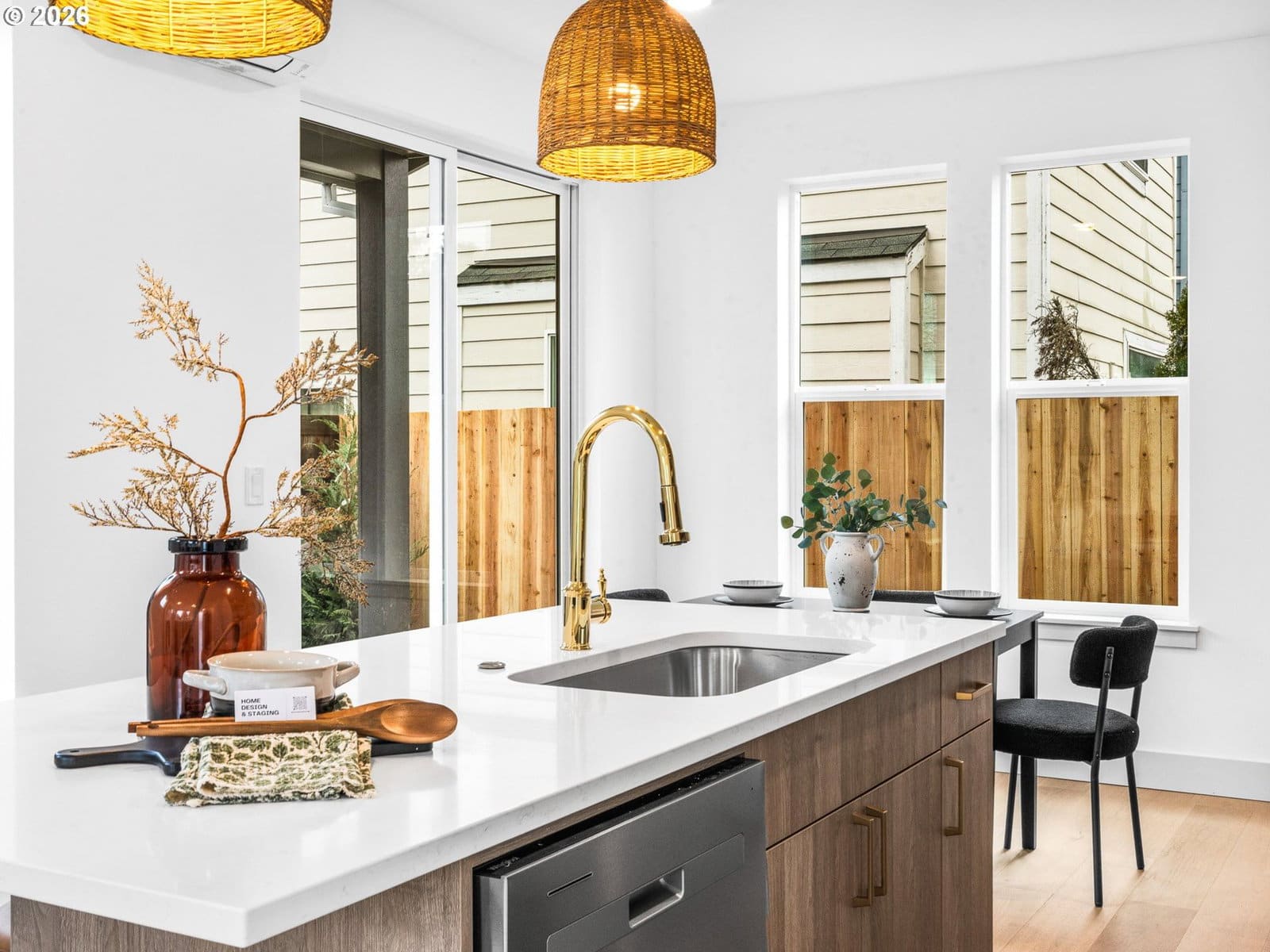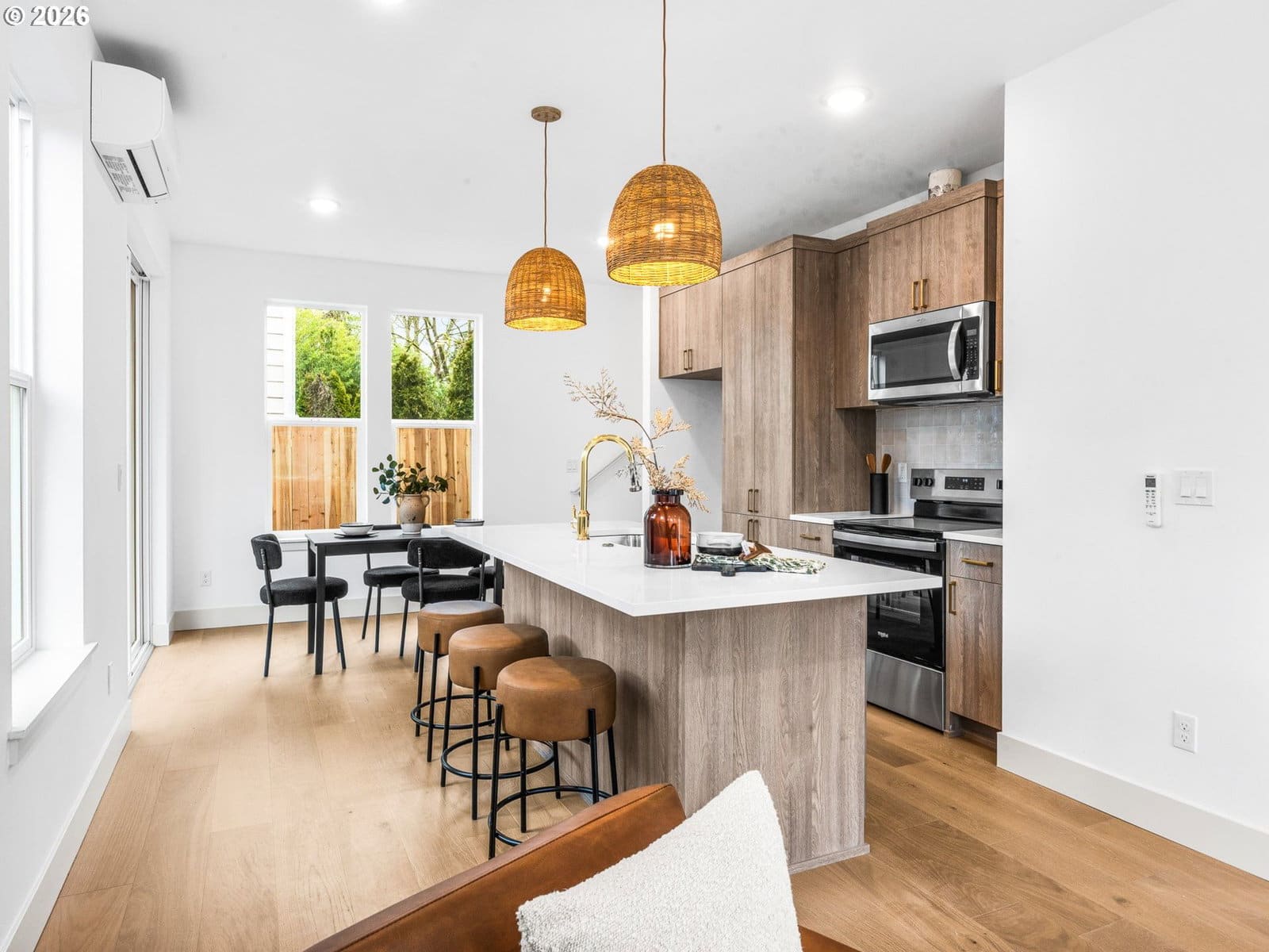 Hello there. I am newly completed and ready for my first chapter in Cully. Designed and developed by a multi year Street of Dreams builder and Builder of the Year award winner by the Home Building Association, I offer 1,347 square feet with four bedrooms, two and one half bathrooms, and an attached garage on my main level, an increasingly rare and sought after feature that adds everyday convenience and long term functionality. Step inside and feel how my open great room layout keeps life connected. My living, dining, and kitchen spaces flow seamlessly together, creating a bright and comfortable setting for quiet evenings and gatherings. A fireplace anchors my living room, while my kitchen centers around a generous island with a full eat bar, quality finishes, and abundant cabinetry for storage and workspace. Large windows invite natural light throughout my main level and enhance my welcoming feel. Energy efficient mini splits provide heating and cooling for year round comfort with individualized climate control. Upstairs, my primary bedroom features vaulted ceilings, an ensuite bathroom, and a walk in closet, creating a comfortable retreat. Three additional bedrooms share a full bathroom, offering flexibility for guests, office space, or hobbies. My upper level laundry simplifies daily routines and adds convenience. Just off my dining area, a covered patio opens to my private, fenced yard, creating easy indoor outdoor living. Grind Wit Tryz is ~0.4 miles away, Cully Central ~0.5 miles, Lakeside Bar and Grill ~0.7 miles, Pinches Burros ~0.6 miles, and Hi Top Tavern ~0.8 miles. Bison Coffee House is ~0.5 miles away. Cully Park is ~0.6 miles, Khunamokwst Park ~0.7 miles, and Sacajawea Park ~1.0 mile. My list price is for buyers eligible for Portland Housing Bureau's System Development Charge Exemption SDC, an initiative promoting affordable housing across the City of Portland. If you are not familiar with the program, contact my people and they will guide you.