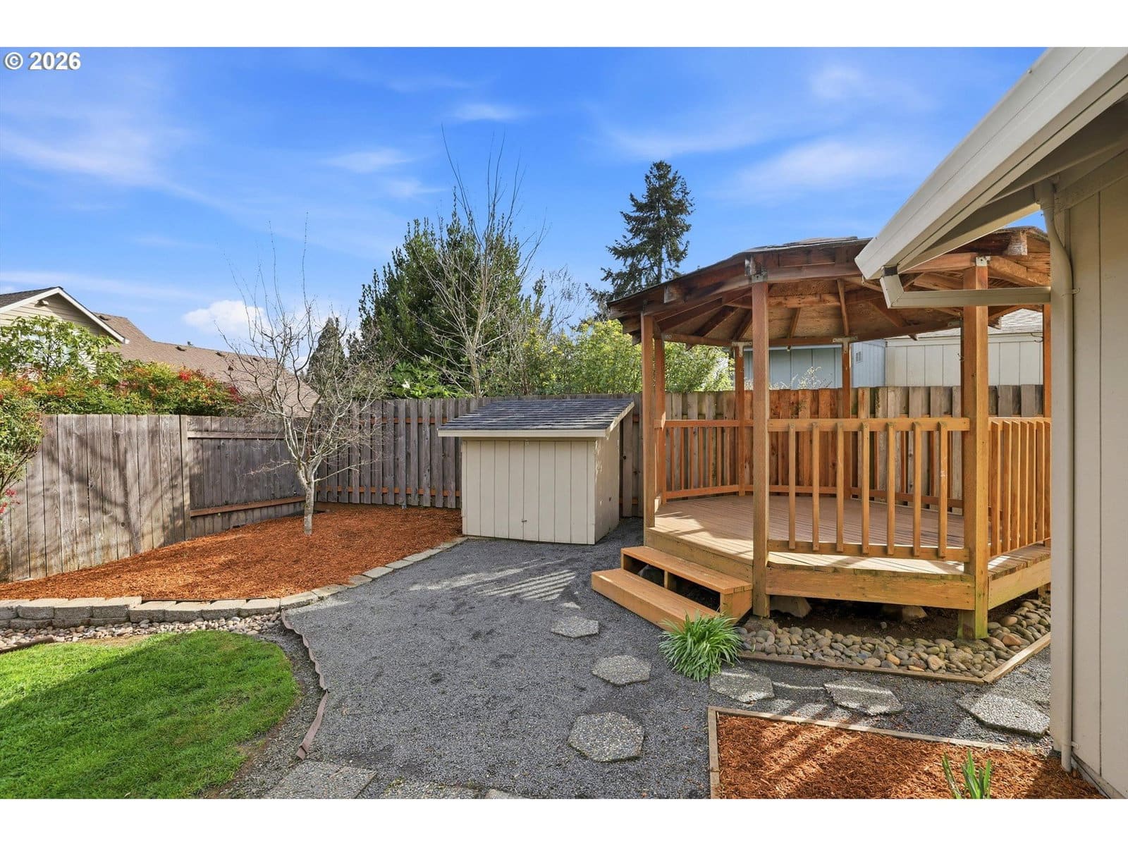 Turn-key one-level living in a desirable Tualatin neighborhood. This thoughtfully improved single-level home offers modern comfort, smart upgrades, and an ideal layout for first-time buyers or those looking to downsize without compromise. Inside, you’ll find a flowing floor plan featuring a welcoming living room and a separate family room that opens directly to the backyard—creating seamless indoor-outdoor living. The kitchen serves as the heart of the home with stunning quartz countertops, a beautiful eating island, new range and dishwasher installed in 2026, and an updated refrigerator in 2023, blending function and style. New luxury vinyl plank flooring and carpet installed in 2026, along with fresh interior paint in 2026 and 2022, enhance the main living areas, while select rooms were freshly recarpeted in 2022, adding comfort and a fresh, modern look throughout. Interior trim, doors, faucets, sinks, and door hardware were tastefully updated in 2022, elevating the home’s cohesive, modern aesthetic. The spacious primary suite offers comfort and privacy, complete with its own ensuite bathroom, while the versatile layout makes everyday living easy and efficient. Recent updates provide both style and peace of mind, including a new roof, vapor barrier, drainage system, and sump pump completed in 2024; new windows in 2022 with the primary bedroom window replaced in 2019; front siding and exterior paint, air conditioning, and water heater replaced in 2022; earlier siding work with exterior paint and chimney updates completed in 2008; and a furnace installed in 2004. Combined with the recently modernized kitchen and flooring, this home is truly move-in ready. Outside, the level backyard features a charming gazebo, raised flower beds, & plenty of space to relax, garden, or entertain. Located in a highly desirable Tualatin neighborhood near parks, shopping, dining, & easy freeway access—with no HOA—this home delivers comfort, convenience, and a seamless living experience.