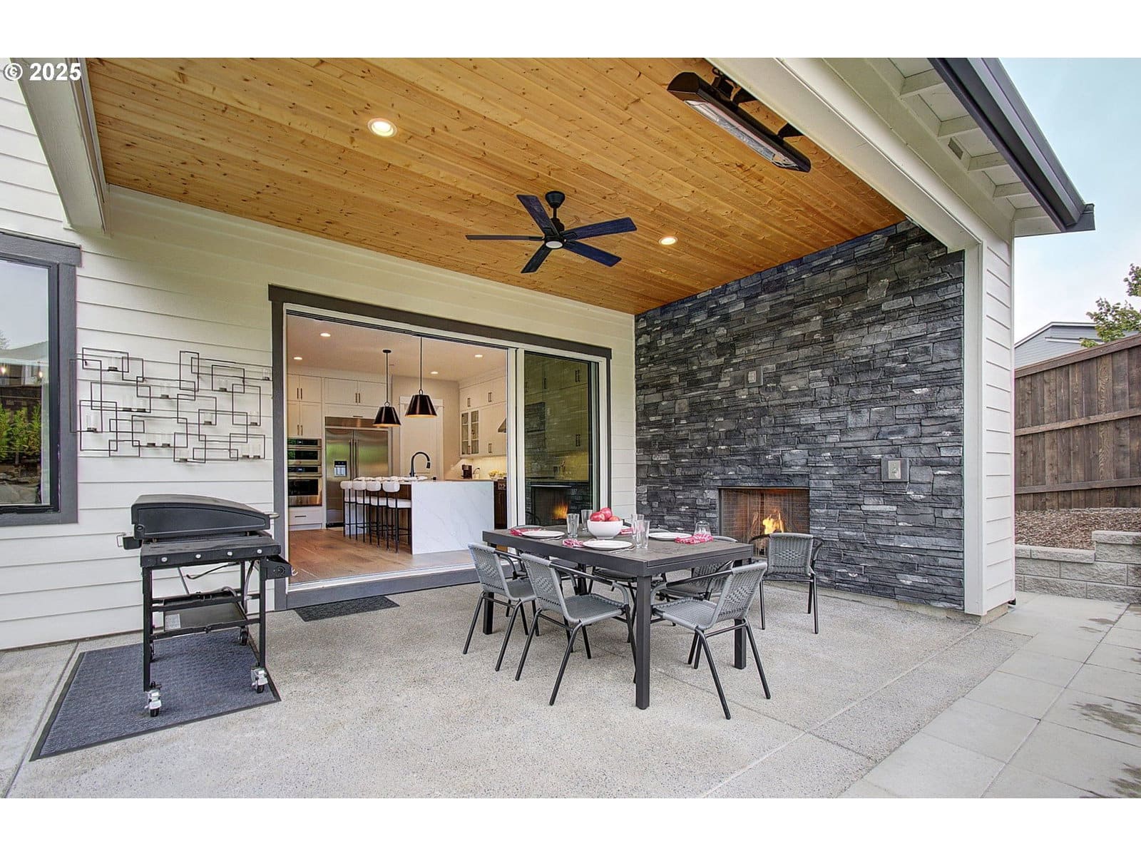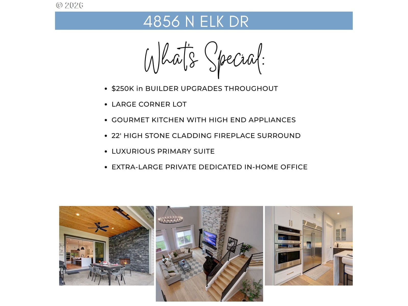 The desirable Quinault floorplan at Lacamas Hills by Toll Brothers is available to you in this great home completed 2024. Enjoy top upgrades with the perfect blend of luxury and function. Two-story great room, full height (22') stone fireplace, ceiling beams and contemporary stair railings. Large windows let in wonderful natural light. The thoughtfully designed main level includes a private guest suite with fully upgraded bath, a separate powder room, and a welcoming built-in drop zone with custom upholstery. The gourmet kitchen is a true centerpiece with all JennAir appliances including a 48" wide built-in refrigerator, six-burner gas cooktop, wall oven, microwave, and beverage cooler. Cabinetry extends to the ceiling. Storage is plentiful in the large walk-in pantry. Beautiful waterfall quartz slab at the island. Wide stacking panel patio slider seamlessly connects the indoors to your covered patio with an outdoor fireplace, perfect for year-round entertaining. Built-in overheard space heater and bluetooth speakers complete the ambience. Upstairs, enjoy the luxurious primary suite with a spa-style bath featuring a freestanding soaking tub, large shower, and a fully built-out custom closet. Two additional bedrooms, 2 full baths in addition to the primary bath, a loft, and a large dedicated office provide room for all. Upstairs you can also enjoy seasonal peek-a-boo views of Lacamas Lake. The landscaped backyard with fast-growing trees has a stone retaining wall and a fenced side yard ideal for a garden or future hot tub. The 3-car garage has a custom coated floor, an extra-deep 3rd bay for your boat, truck, or home gym. The airy corner lot means just one neighbor beside you, adding space, privacy, and open sky. Completed in 2024, this home includes tasteful window treatments for your move-in ready needs. Camas Schools. Come see your gorgeous Quinault home today!