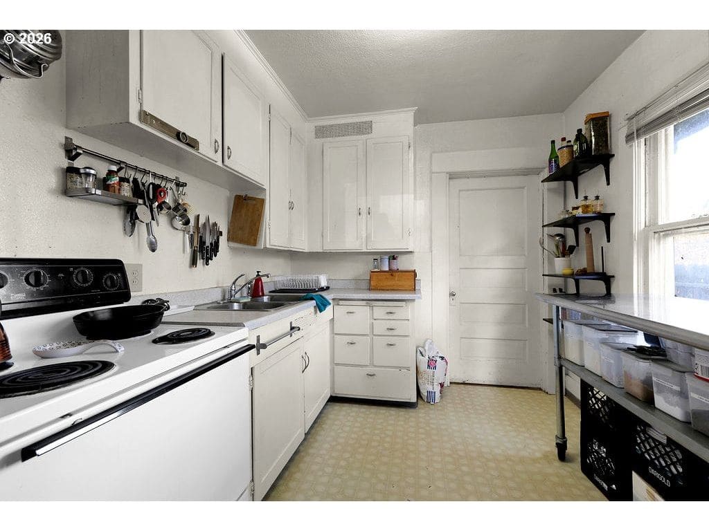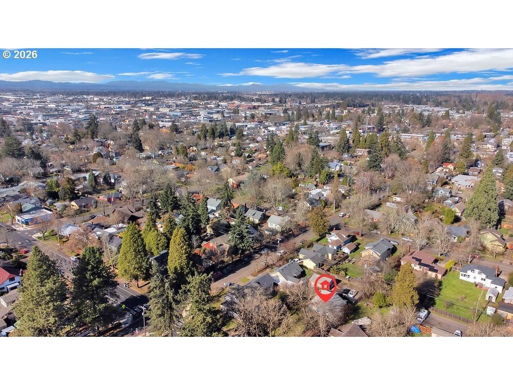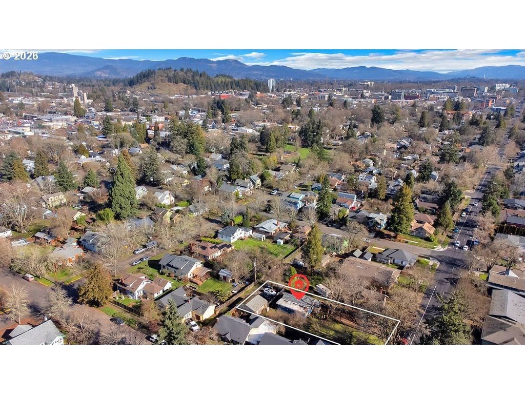 A. Located in the Jefferson Westside Special Area, approximately 2 miles from the University of Oregon and under a 10-minute drive, this quarter-acre property presents a compelling investment opportunity. The 3-bedroom home is currently livable and includes an updated electrical panel and mini-split heating and cooling systems, along with a detached 2-car garage. The home sits well back from W 11th and is accessed from the W 10th alley, where additional parking is available. Street parking is also available on W 11th. While the home offers immediate functionality, the true value lies in the prime location and sizable lot within a zoning area known for expanded housing potential. Property is being sold as-is. Buyers to perform their own due diligence regarding zoning, density allowances, and future development possibilities.