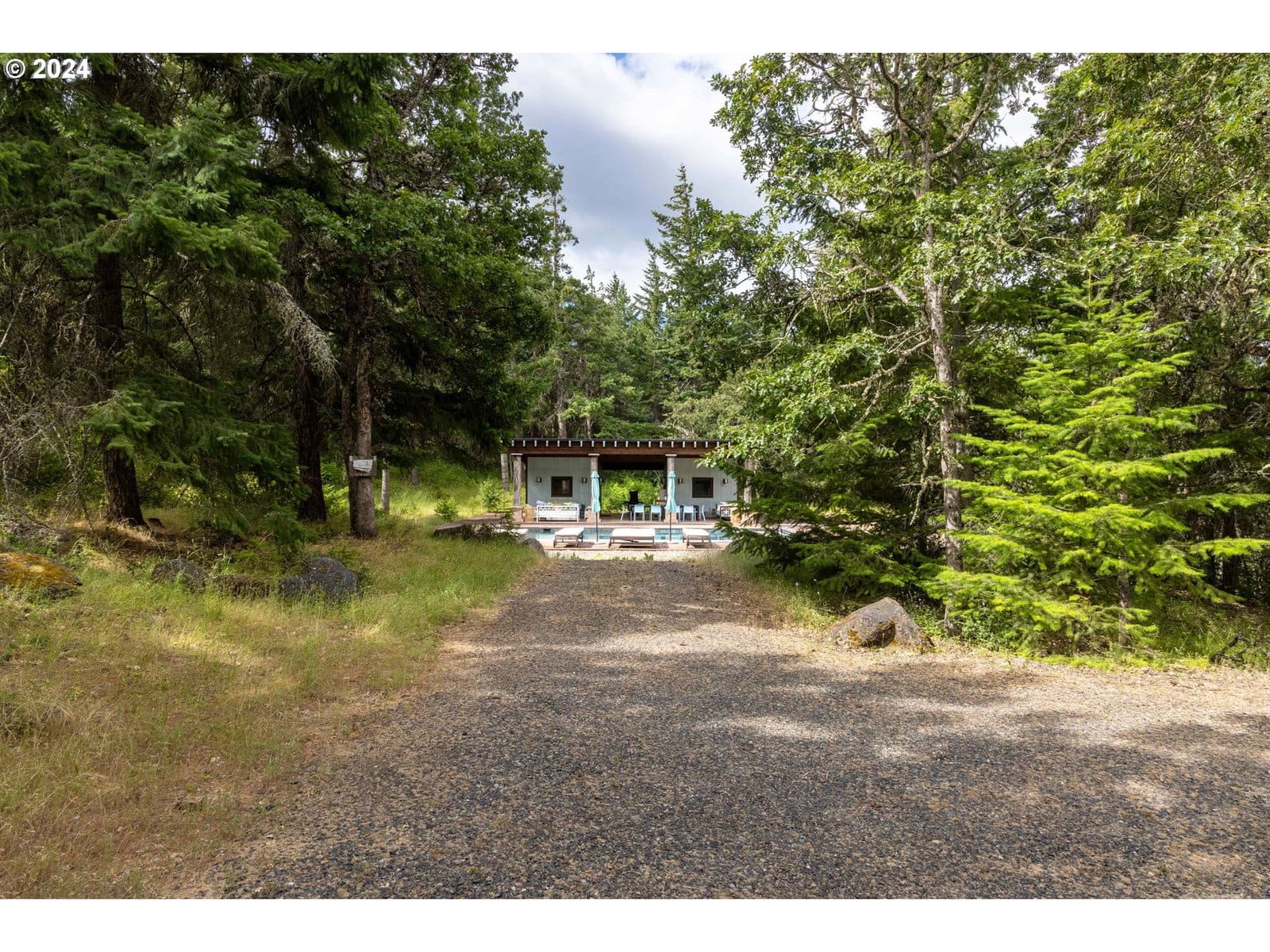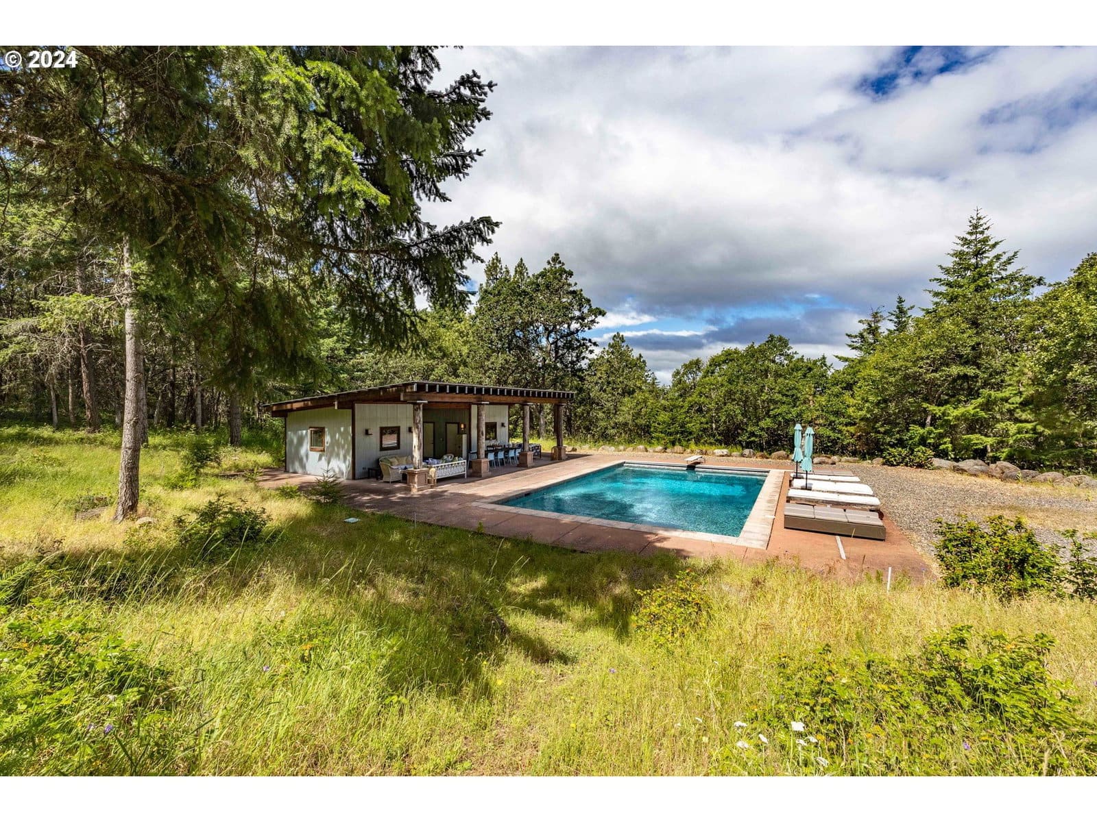 Embrace effortless outdoor living this summer in your own private Mosier retreat. Set on ~15 acres of peaceful, scenic land, this property invites you to slow down and soak in the beauty of the Columbia River Gorge. Spend your days poolside beside the heated, in-ground saltwater pool, surrounded by lush nature. The custom 384 square foot, 1-bedroom, 1-bath pool house offers a comfortable and functional space, complete with a kitchen and laundry. Perfect for weekend stays, guests, or a simple lifestyle. The property is already equipped with power and water, making it ready for your future vision. A thoughtfully positioned building site is framed by trees and captures views of the Columbia River, stretching all the way to the Hood River Bridge. Whether you choose to enjoy it as is or build your dream home, this is your opportunity to own a truly rare and unique property in the heart of the Columbia Gorge.