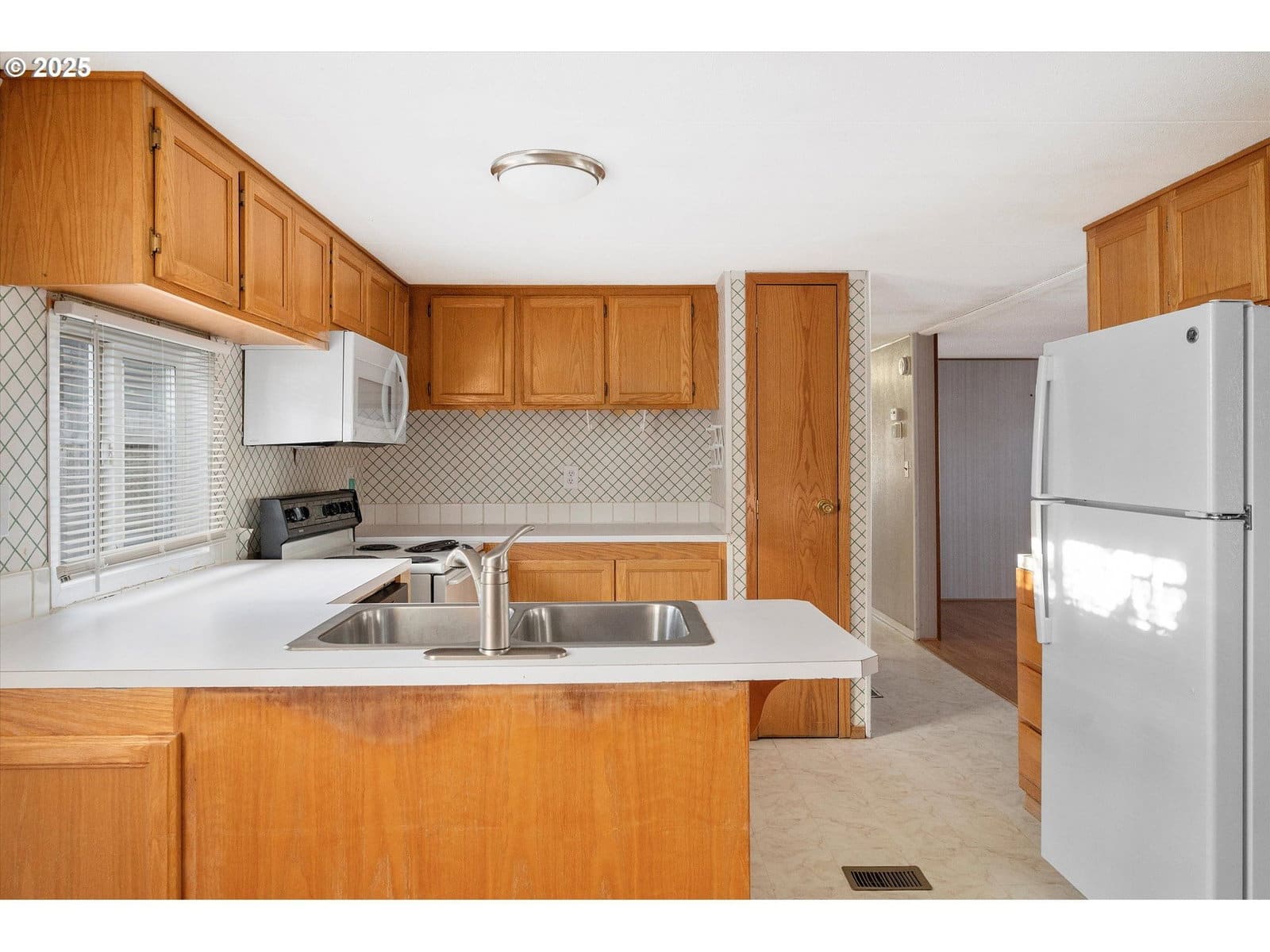 Beautiful 3 bedroom, 2 bath home in the sought after Salem Greene 55+ community. This charming home features an open layout with vinyl windows that let in plenty of natural light and convenient walk-in showers in both bathrooms. Outside, enjoy a private garden bed in a gated, peaceful setting.Community amenities include a clubhouse, mailroom, library, billiards room, and a seasonal swimming pool. Additional conveniences such as storage sheds and RV parking are available.Discover the perfect blend of comfort, convenience, and community in this delightful home!
