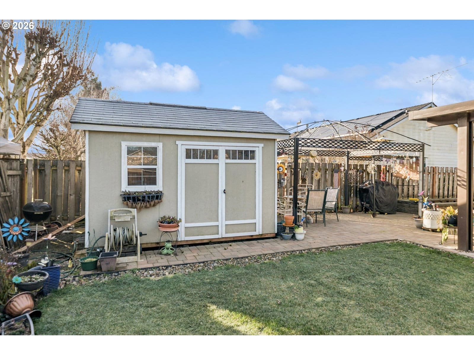 Nicely appointed home on large corner lot in Heritage Park Meadows. Great room floor plan, all stainless appliances in Kitchen are included. Updated bathroom by Jacuzzi of Portland. Engineered bamboo floors, oversized two car garage. Owned solar panels provide low electric bills year round. Covered patio, with pavers leading to garden shed, raised beds, BBQ area, and more. Stunning, landscaped, fenced back yard. This property has it all!
