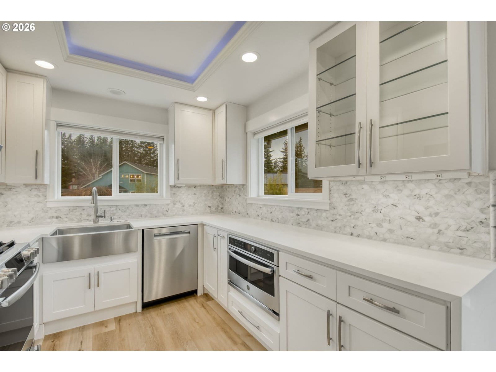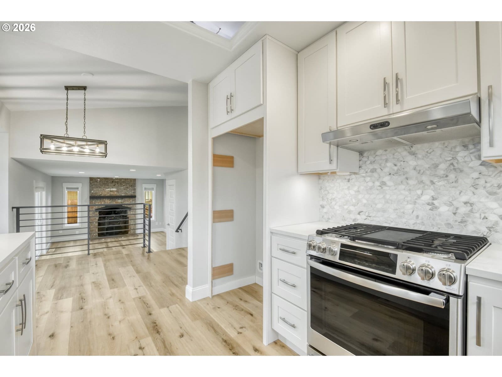 Located in the sought-after Sandee Palisades neighborhood, this beautifully remodeled home sits on a generous .24-acre lot and was thoughtfully updated by the owner for personal use, with every detail carefully considered for comfort, function, and quality. High vaulted ceilings create an impressive entry, while the stunning kitchen showcases custom crown molding with integrated lighting, quartz countertops, a farmhouse sink, and top-of-the-line stainless steel appliances, including a GE Profile Gas cooktop/range, GE Profile Advantium built-in microwave/convection oven combination, high-output range hood, and Bosch dishwasher. The home has been freshly painted and features durable LVP flooring throughout the main level. Both bathrooms include humidity sensors for added functionality and air control. The primary suite offers high ceilings and a beautifully appointed bathroom featuring custom lighting and an oversized shower with dual shower heads. All closets throughout the home are built out with custom lighting and organized storage systems, adding both luxury and functionality. A 95% high-efficiency furnace, central A/C, and a newer water heater provide year-round comfort and efficiency.The attached two-car garage includes a convenient utility sink for added practicality. Outside, the expansive lot offers RV parking, a hot-and-cold outdoor faucet, a fully fenced backyard, and a large concrete pad — ideal for entertaining, relaxing, or creating your perfect outdoor retreat. Located near two parks and a scenic hiking trail, this home offers a rare blend of space, thoughtful upgrades, and everyday convenience. Move-in ready and filled with custom details and upgraded features throughout — don’t miss this opportunity to own a home that stands apart!