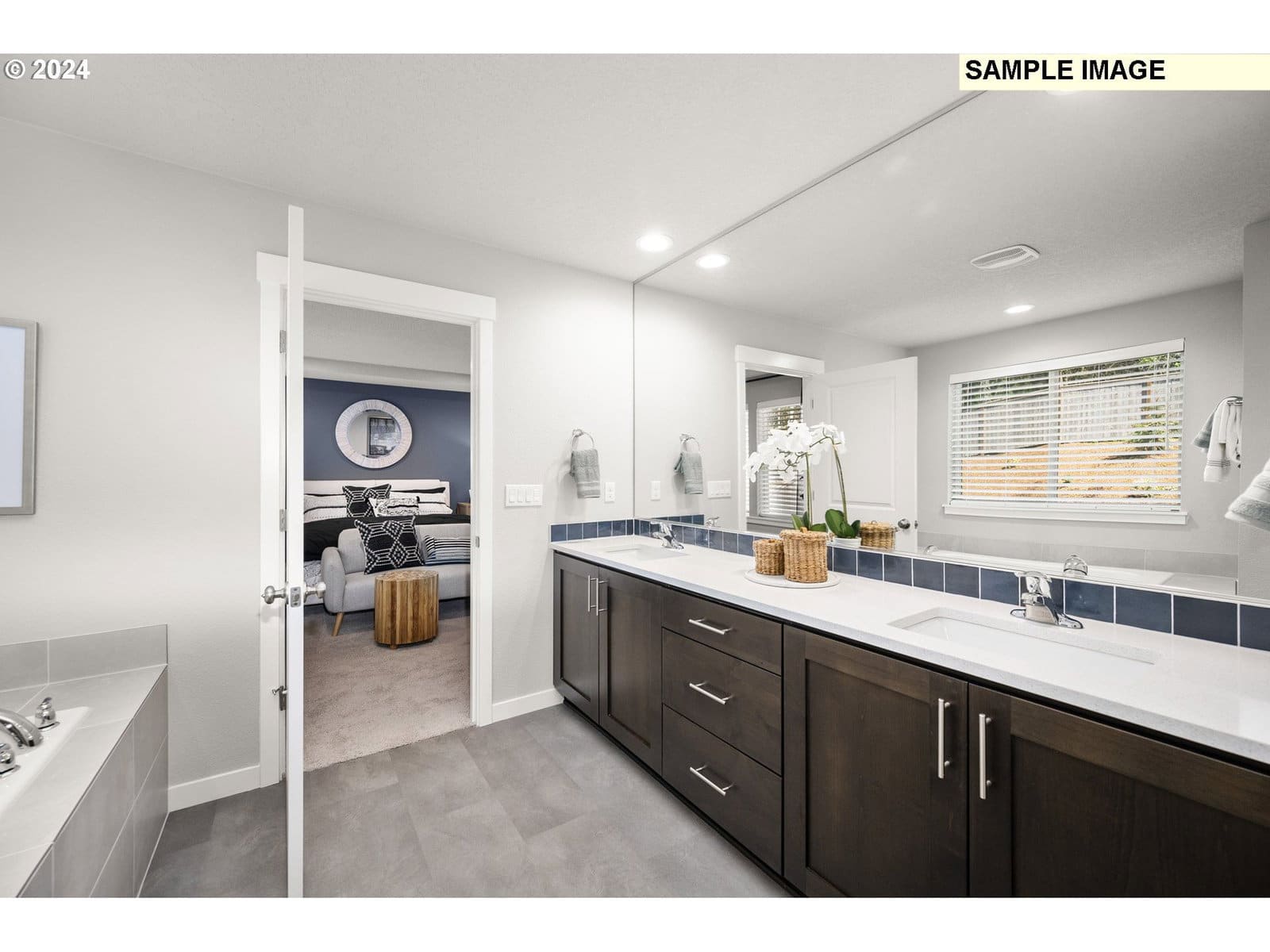 2676 Floor Plan - READY IN FEBRUARY - ASK ABOUT INCENTIVES! Spacious, contemporary 4-bedroom home with loft on a corner lot. Large, open living area and bedroom/office plus full bath on main level, primary suite and three additional bedrooms on the second level. Home features a gas fireplace, 9ft ceilings on main level, quartz countertops throughout, gas range, gourmet kitchen, large primary bedroom with walk-in closet and soaking tub, heat pump with A/C, and a 10x22 covered patio on a fully fenced lot! Community features walking trails, green spaces, and park areas. Sample images - actual finishes and colors will vary.