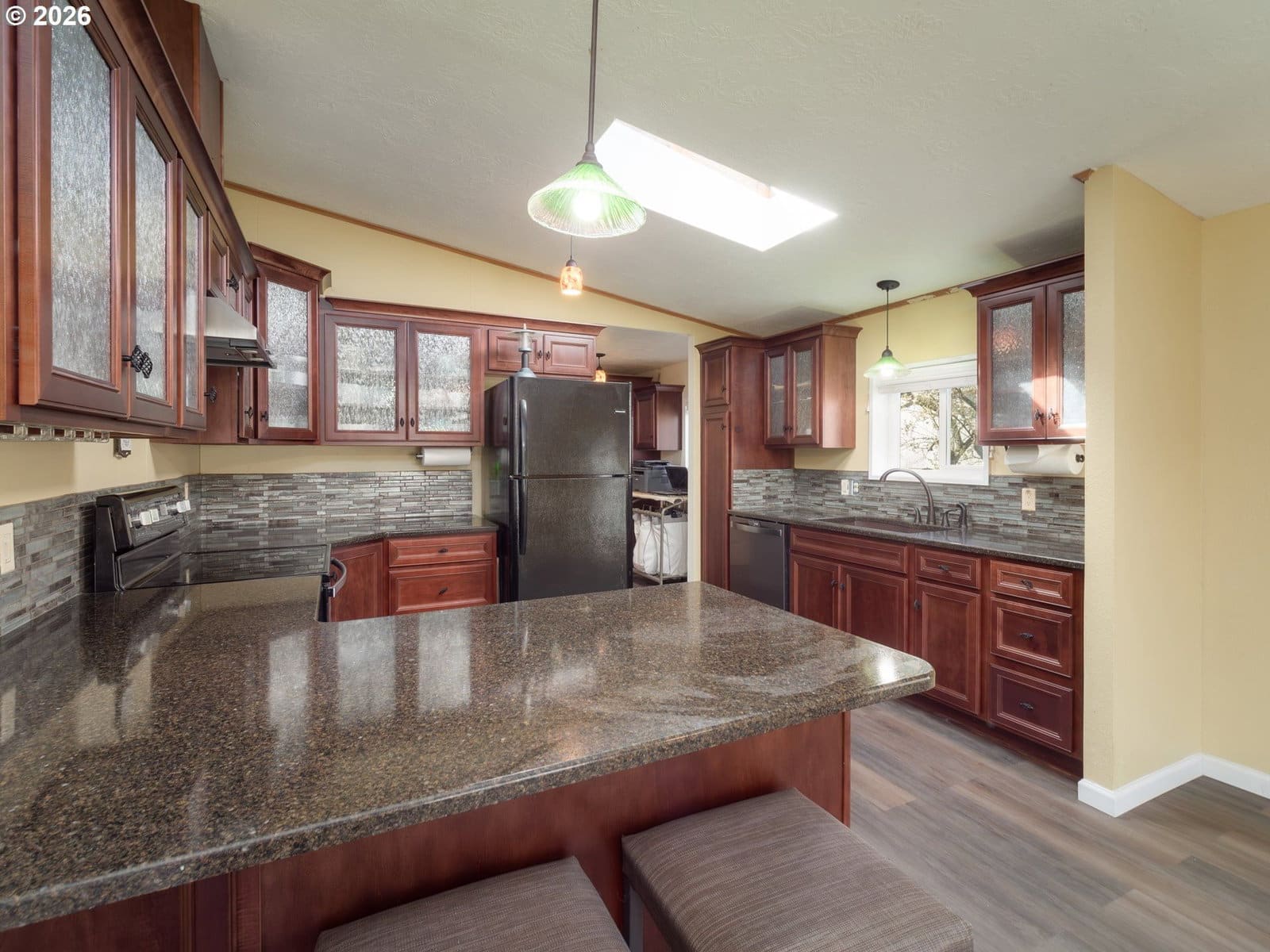 Discover your ideal hobby farm retreat on this expansive 2.47-acre flat, usable property! Fully fenced with an automated gate, this gem boasts stunning mountain views and seasonal Cow Creek, enhancing its picturesque charm. Perfect for horses and fulfilling all your hobby farm dreams, the land features numerous outbuildings, grape stands, five black walnut trees, two flourishing plum trees, a delightful apple tree, and a pear tree. The property also features new vinyl and chain-link fencing, a convenient dog yard located near the house, a sturdy reinforced bridge, a cozy chicken coop, various practical sheds, and a spacious carport/shop area equipped with a solid concrete floor and upgraded electrical systems. The beautifully updated home is equally impressive, featuring a new roof, double-pane windows, siding, and exterior paint all installed in 2019. Enjoy year-round comfort with a modern central air heat pump and upgraded windows. For ultimate peace of mind, a brand new high-end propane generator ensures uninterrupted power. Inside, the gorgeously remodeled kitchen shines, featuring a skylight, updated appliances, a double oven, sleek granite countertops, and beautiful custom soft-close cabinets. High-end waterproof luxury plank flooring flows seamlessly throughout. The guest bathroom features an easy-access walk-in tub, while the primary bedroom en-suite offers a luxurious remodel, complete with a spacious walk-in shower and a generous walk-in closet. With ample space for gardening and animals, the possibilities are truly endless. Don't miss this exceptional opportunity at all this value!