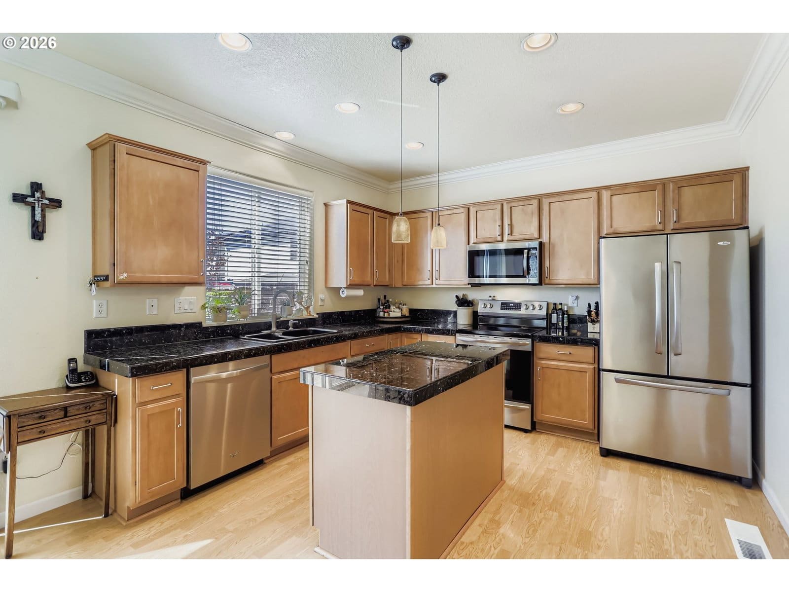 Well maintained dream home in one of Milwaukie’s most sought-after neighborhoods! Tucked away on a quiet street, this traditional 2004 gem offers a perfect blend of comfort, functionality, and style. 4 generous bedrooms, including a luxurious primary suite, plus a versatile bonus room, there's room for everyone and everything. Whether you need a home office, media room, or extra guest space, this home has you covered. The layout features 2.1 bathrooms, a formal living room (or office), a formal dining room, and a large great room pre-wired for surround sound—perfect for movie nights or entertaining guests. Heart of the home is the gourmet island kitchen, complete with a cozy eating nook, pantry, a slider that opens to the garden and back patio—ideal for indoor-outdoor living. You'll love the newer range and ample counter space for cooking and gathering. The gas fireplace adds a warm, inviting touch to the living space, while crown molding and thoughtful finishes elevate the overall feel. Step outside to enjoy the professionally landscaped gardens, highlighted by landscape lighting that enhances curb appeal day and night. The backyard garden, fountain and patio offer a peaceful escape and the perfect place to relax or entertain. Additional highlights: dedicated freezer circuit in the garage, a whole-home surge protector, TONS OF STORAGE and newer exterior paint (2019)—showing pride of ownership throughout. This home truly has it all: space, style, and a fantastic location close to parks, schools, shopping and easy freeway access. GreenBriar Hoa
