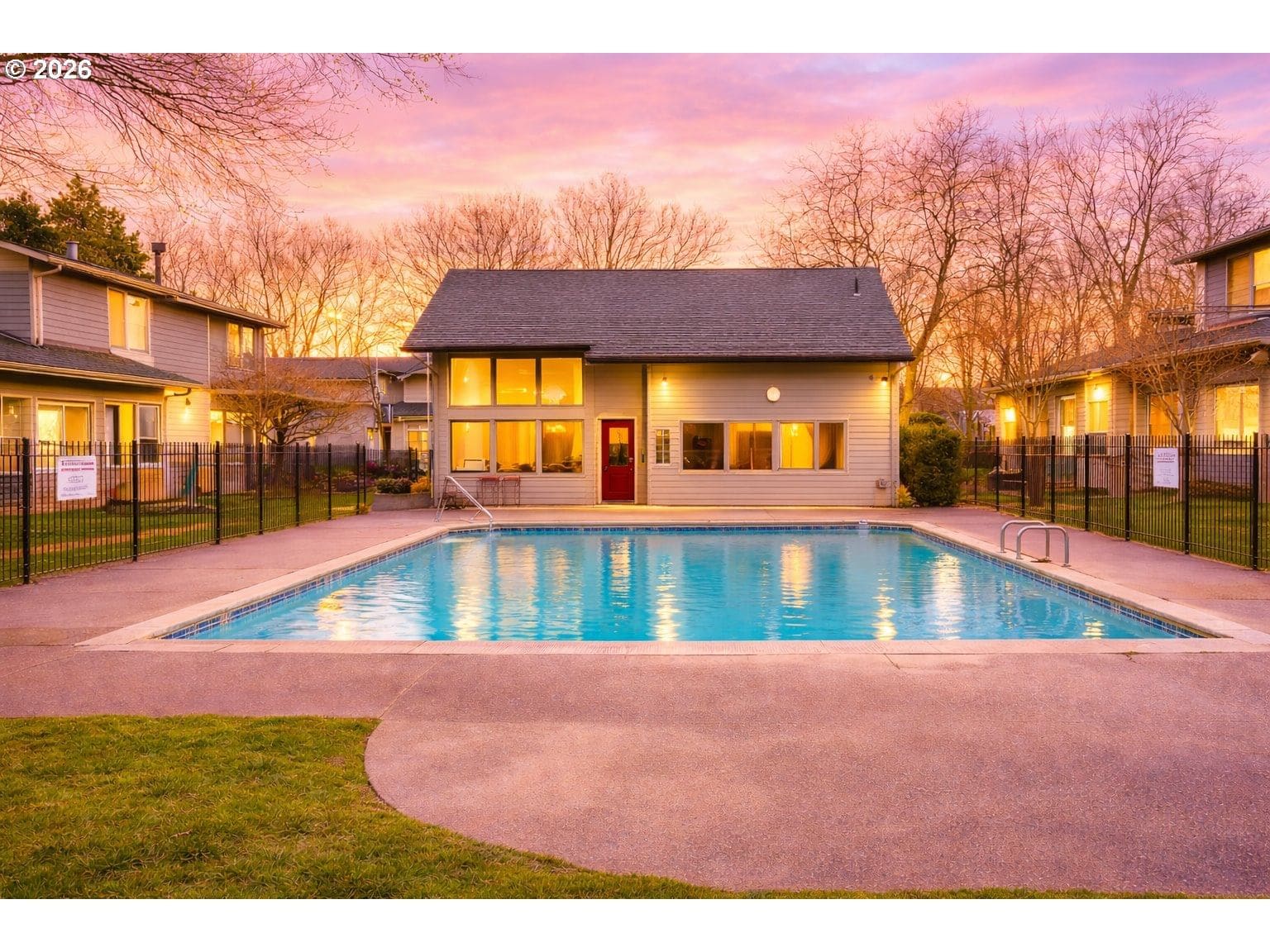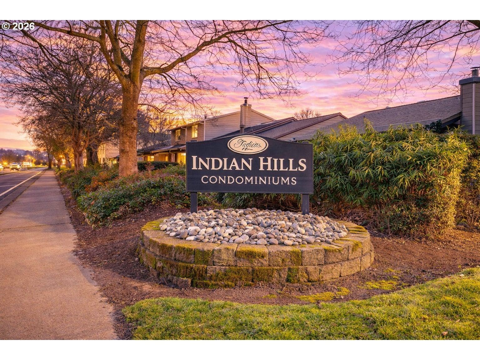 Rare, single level condo in the highly sought after Indian Hills community offering comfort, convenience, and a truly low maintenance lifestyle. This well designed floor plan features no stairs, an easy flowing layout, and a peaceful private setting surrounded by mature, park like landscaping.The living room is centered around a cozy brick surround Wood burning fireplace, creating a warm and inviting space to relax or entertain. Step outside to the covered patio with lawn area, perfect for morning coffee or quiet evenings, offering a private and serene backdrop. The kitchen features granite countertops, a convenient eating bar, and opens to a large dining area, ideal for everyday living or hosting guests. All appliances are included.The vaulted primary bedroom offers a sense of space and light and includes an ensuite bathroom. Finishes include hardwood floors, tile, and recently cleaned carpet. In unit laundry w/ Washer & Dryer and sink adds ease, while the oversized attached one car garage provides secure parking and additional storage, along with plenty of visitor parking throughout the community. A mini split system provides energy efficient cooling. The community is exceptionally well cared for, clean, and beautifully landscaped, with an in ground pool and clubhouse for residents to enjoy. Newer roof and siding add peace of mind, and the HOA is well managed. Ideally located just blocks from Vancouver Mall, restaurants, shopping, and movie theaters, with easy freeway and highway access and approximately 10 minutes to PDX Airport. This is a rare opportunity to own one of Indian Hills’ most desirable single level floor plans in a quiet, friendly, and established community.
