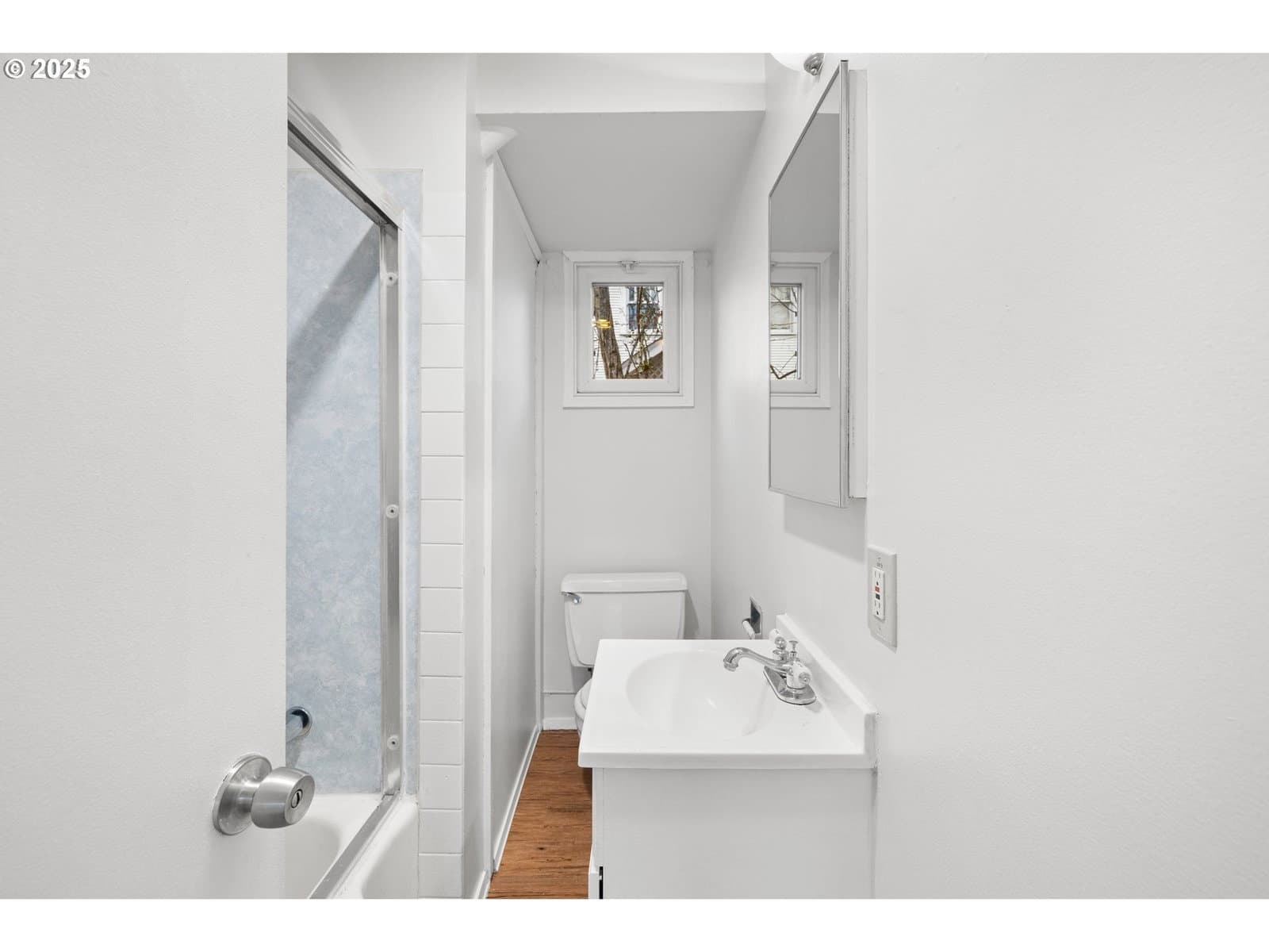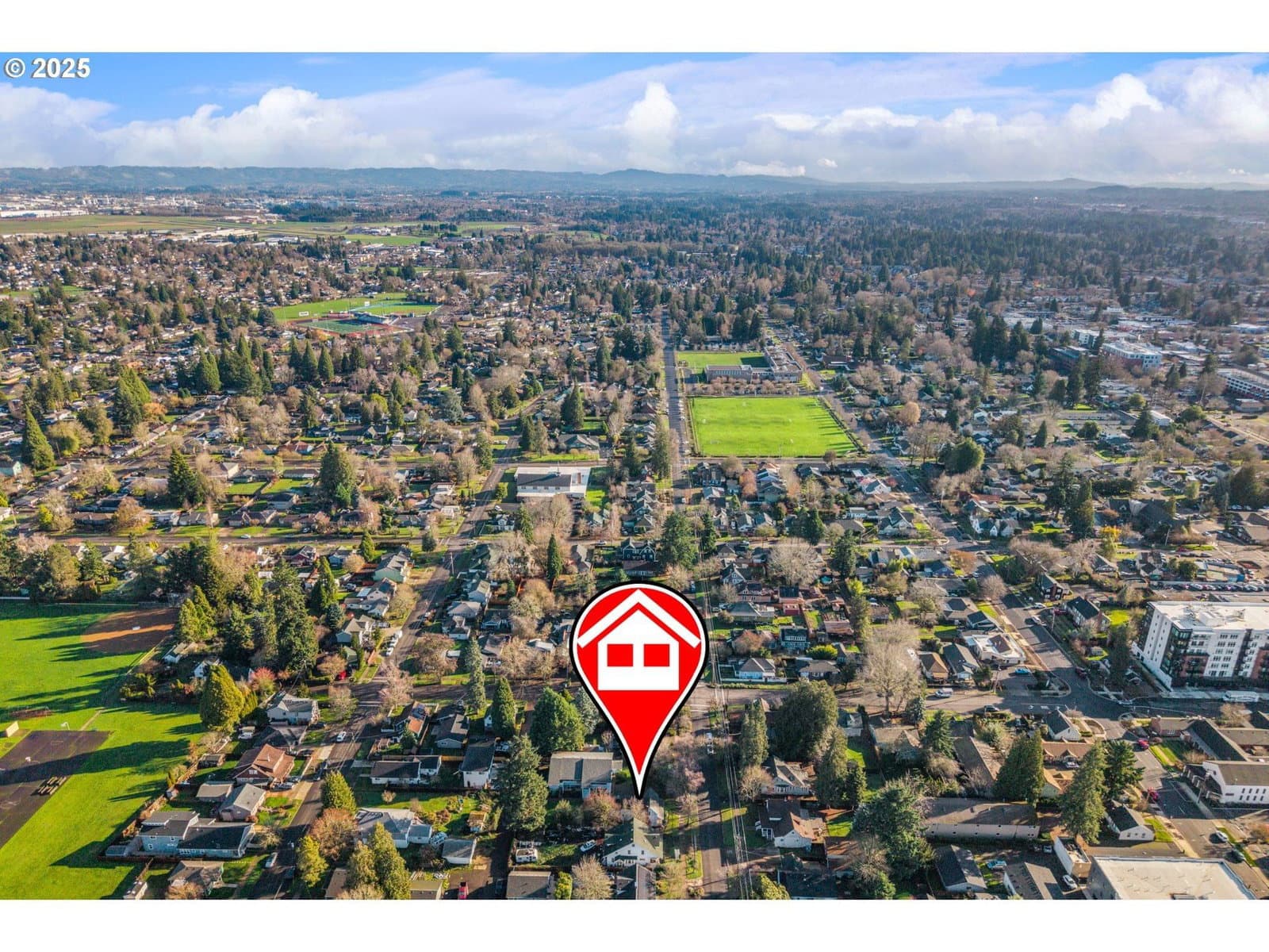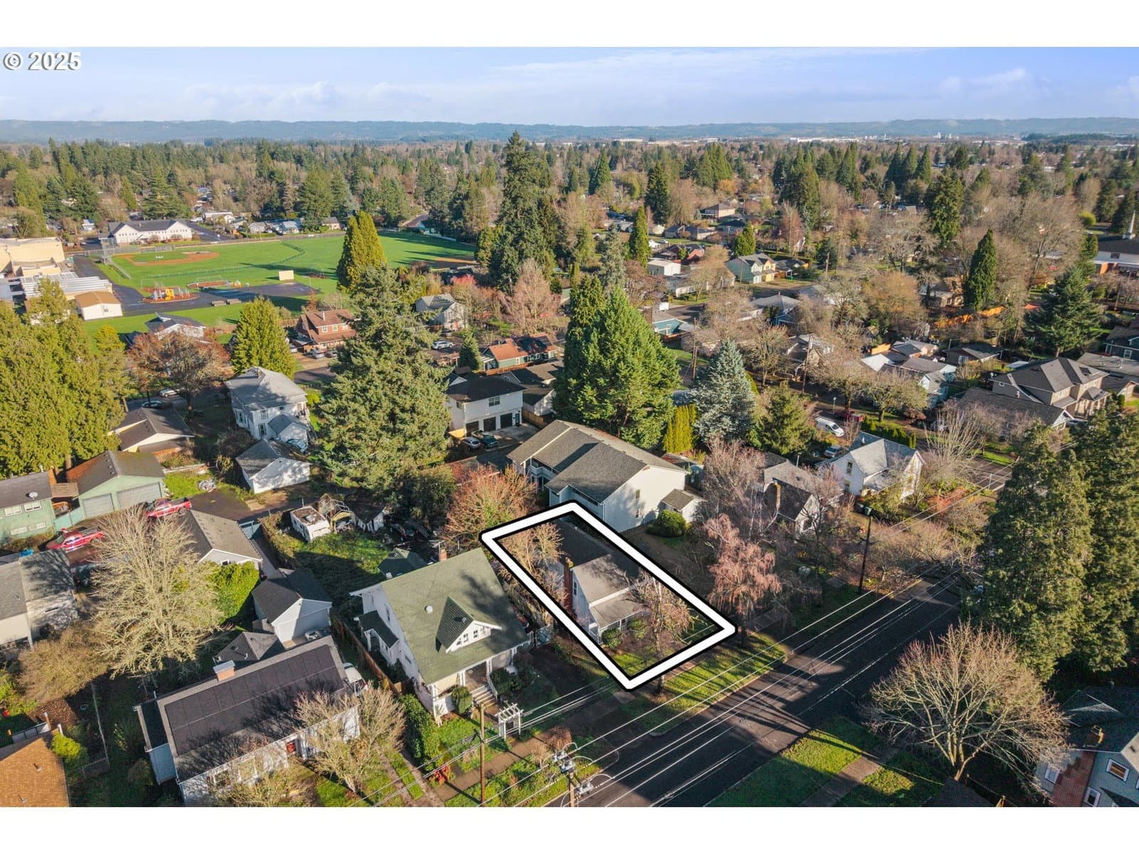 Charming four bedroom home featuring a covered front porch and a welcoming parquet wood entry that opens to spacious living and dining areas. The living room offers a cozy fireplace insert and built-in bookcase. The kitchen includes painted wood cabinetry and appliances, including refrigerator, range, and dishwasher. One bedroom, a full bathroom, and a utility room are located on the main level, with convenient access to the backyard. Upstairs features three additional bedrooms and a second full bathroom. The partially fenced backyard includes a paved walkway. Ideally located near Bagley Park, Lincoln Street Elementary, shopping, and restaurants. [Home Energy Score = 1. HES Report at https://rpt.greenbuildingregistry.com/hes/OR10243340]