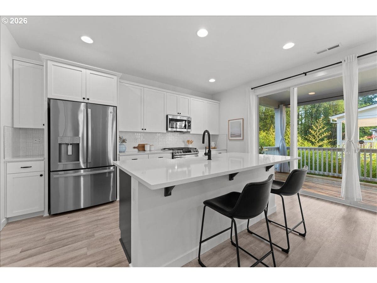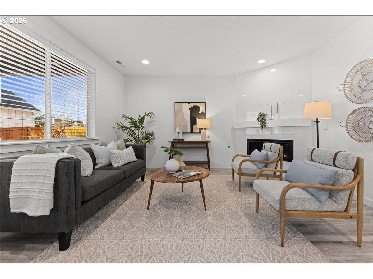 Immaculate, move-in ready with NO HOA! The main level welcomes you with a versatile FLEX SPACE, soaring ceilings, and a light-filled open layout that SEAMLESSLY connects the living, dining, and kitchen areas—perfect for gathering with friends or enjoying a quiet night in. A cozy gas FIREPLACE creates an inviting atmosphere, while the kitchen’s expansive QUARTZ island is ideal for casual meals, morning coffee, or entertaining. Step outside to the COVERED back deck and enjoy effortless indoor-outdoor living year-round. AC, Refrigerator, washer, and dryer are all included for added MOVE IN ready ease.The beautifully landscaped yard is thoughtfully maintained with a SPRINKLER system and a gas hookup—ready for summer BBQs and outdoor entertaining. Upstairs, unwind in a SPACIOUS bonus living area along with two more generously sized bedrooms. The primary suite offers a PEACEFUL retreat with a LARGE walk-in closet and a private en-suite featuring a tiled shower, DOUBLE SINKS, and quartz countertops. Tucked at the end of the street, this OVERSIZED 8148 sq.ft. lot provides enhanced PRIVACY along with plenty of off-street parking for RV/Boat and everyday convenience.