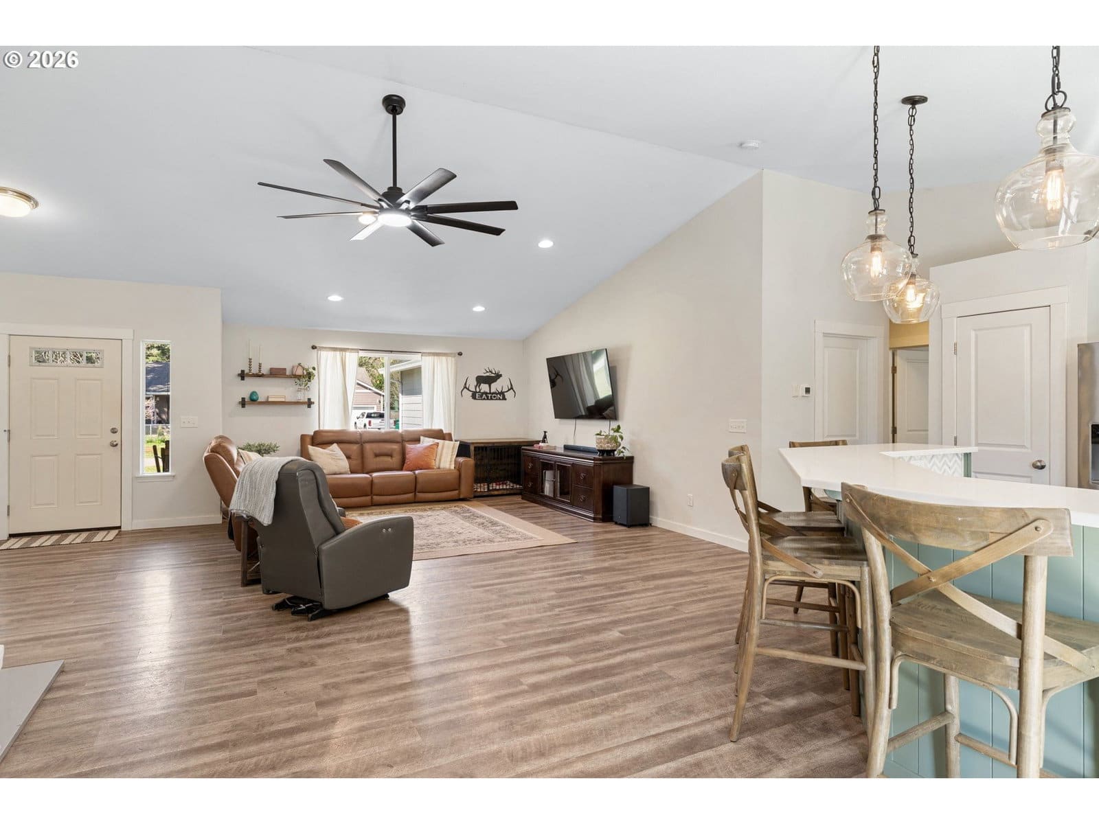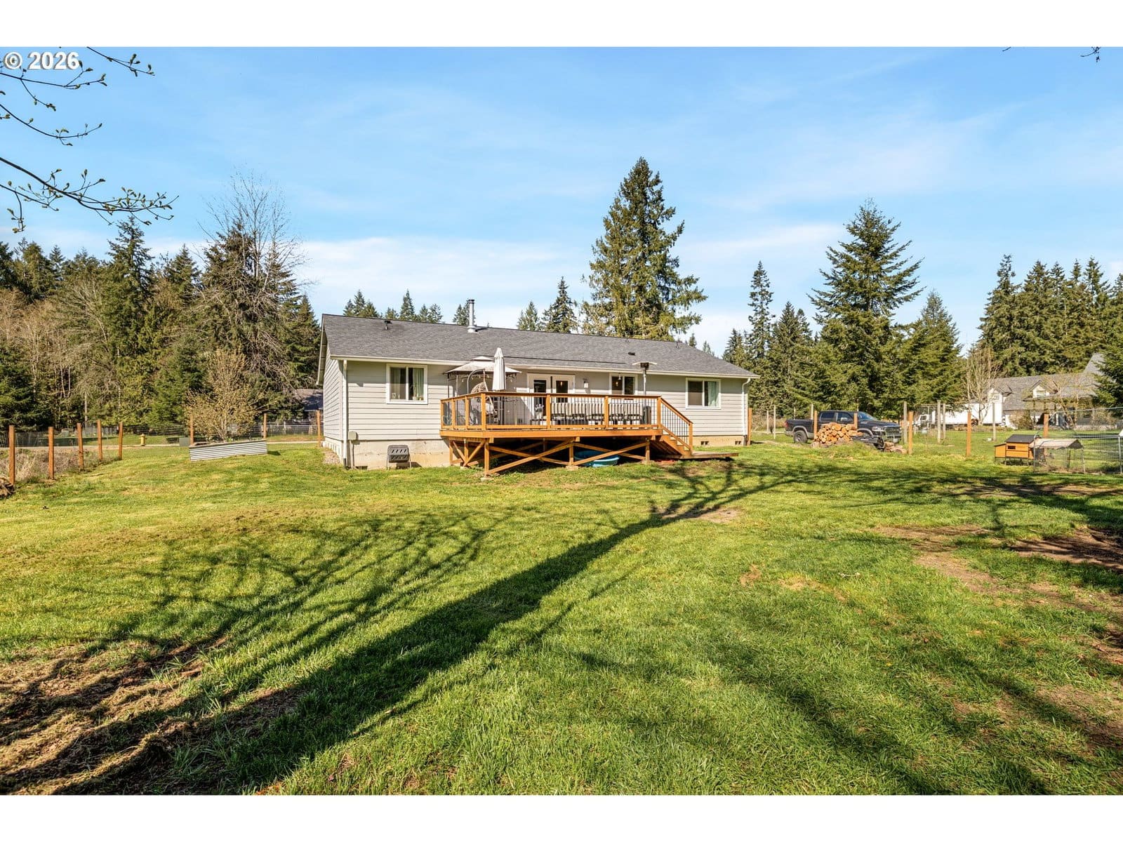 Pull up to 1128 Springboard Dr and you'll immediately understand the appeal. Quiet dead-end street, almost half an acre, and the kind of one-story layout that actually lives as good as it looks. Inside, the vaulted ceilings set the tone. Everything is spacious and open from the moment you walk in. 3 large bedrooms, a true primary with en-suite, LVP flooring, and a well-appointed kitchen with quartz counters and farmhouse fixtures. The outdoor living is where this one really shines. A large Trex deck off the back is ready for summer, morning coffee, playing in the yard, evening fire, and the almost half-acre lot gives everyone room to breathe, including the chickens. RV parking adds to the utility. This is Vernonia living at its best: the feel of the country without giving up the convenience of town. One story, real space, and a community worth buying into. Don't miss it!