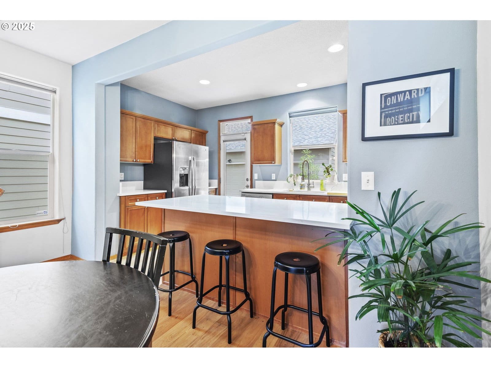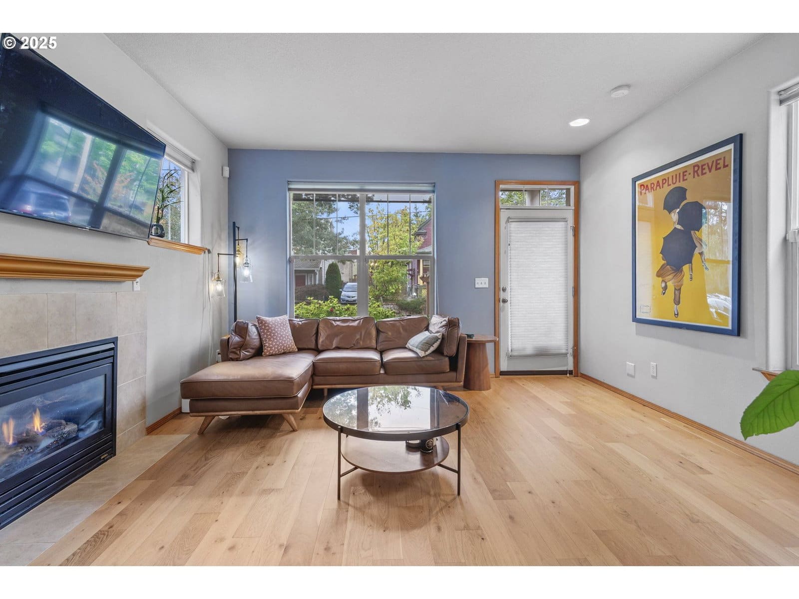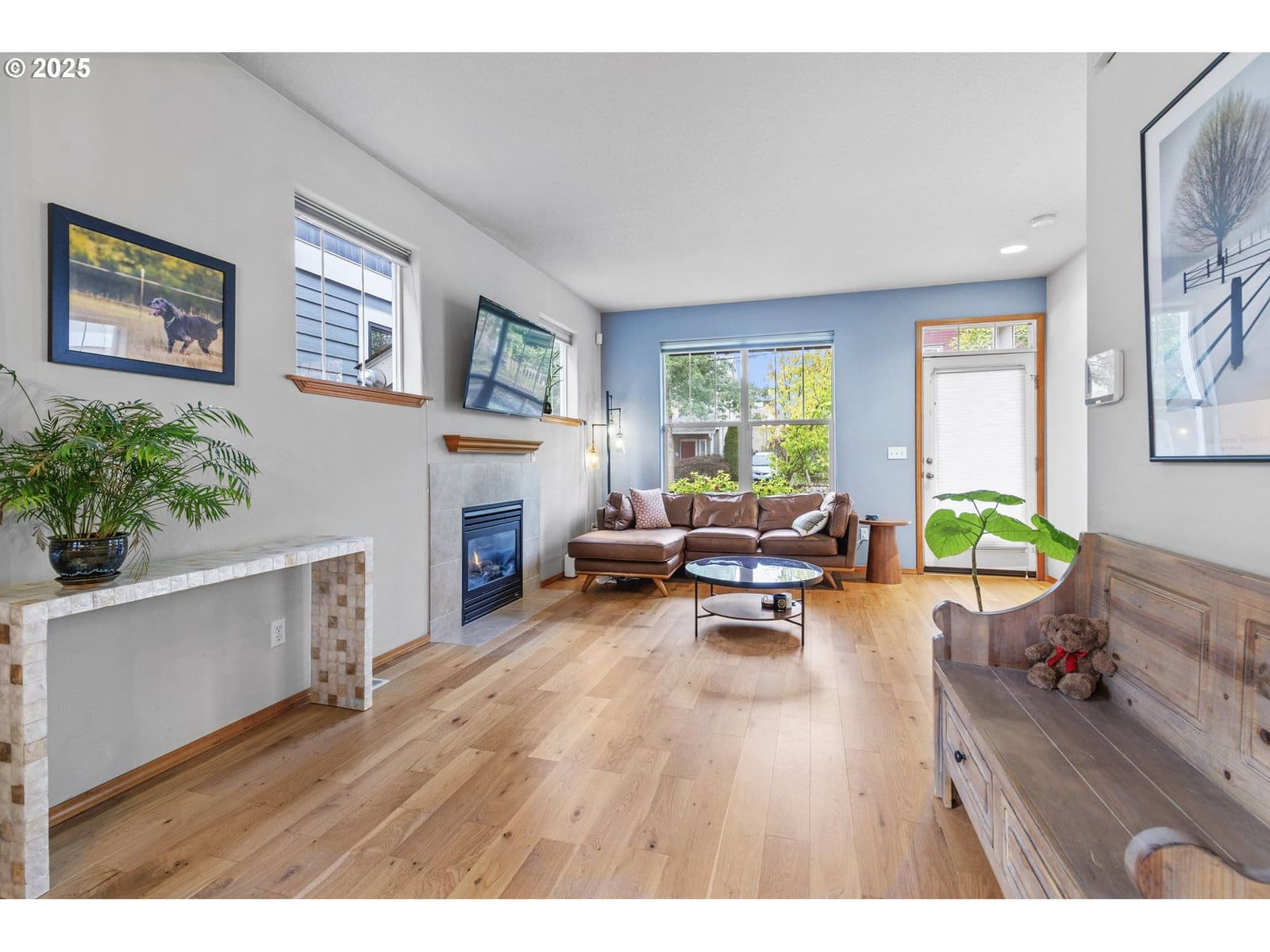 Welcome to this updated 2bed, 2bath residence offering 1,275 sq ft of thoughtfully designed living space across two levels and over $100,000 in upgrades. Perfectly positioned in a coveted NE area, this home combines timeless character with modern sophistication, all within walking distance to Irving Park, local eateries, and vibrant neighborhood amenities.From the moment you arrive, the curb appeal abounds with a manicured garden framed by a charming fence and an inviting covered front porch. Inside, the main level features rich new hardwood floors and sun-filled living spaces that exude warmth and comfort. The stylish kitchen impresses with gleaming white quartz countertops, modern cabinetry, and finishes; ideal for both everyday living and entertaining.The living room centers around an updated gas fireplace, offering a cozy space to unwind. A updated air conditioning system ensure comfort. while thoughtful updates throughout highlight the home’s meticulous care.The primary suite offers a serene retreat with a luxurious walk-in shower, contemporary fixtures, and garden view. Ample storage is found throughout the home, ensuring practicality without sacrificing style. Upstairs, soft new carpeting complements two spacious bedrooms and two beautifully appointed bathrooms.Outdoors, the private backyard offers a true urban sanctuary with lush landscaping, a charming sitting area, and plenty of room for entertaining. A single-car garage—detached yet fully divided for exclusive use, adds value and convenience.Every detail of this home has been crafted for effortless elegance and livable comfort. Experience the best of NE Portland living, where classic charm meets modern luxury. [Home Energy Score = 7. HES Report at https://rpt.greenbuildingregistry.com/hes/OR10144908]