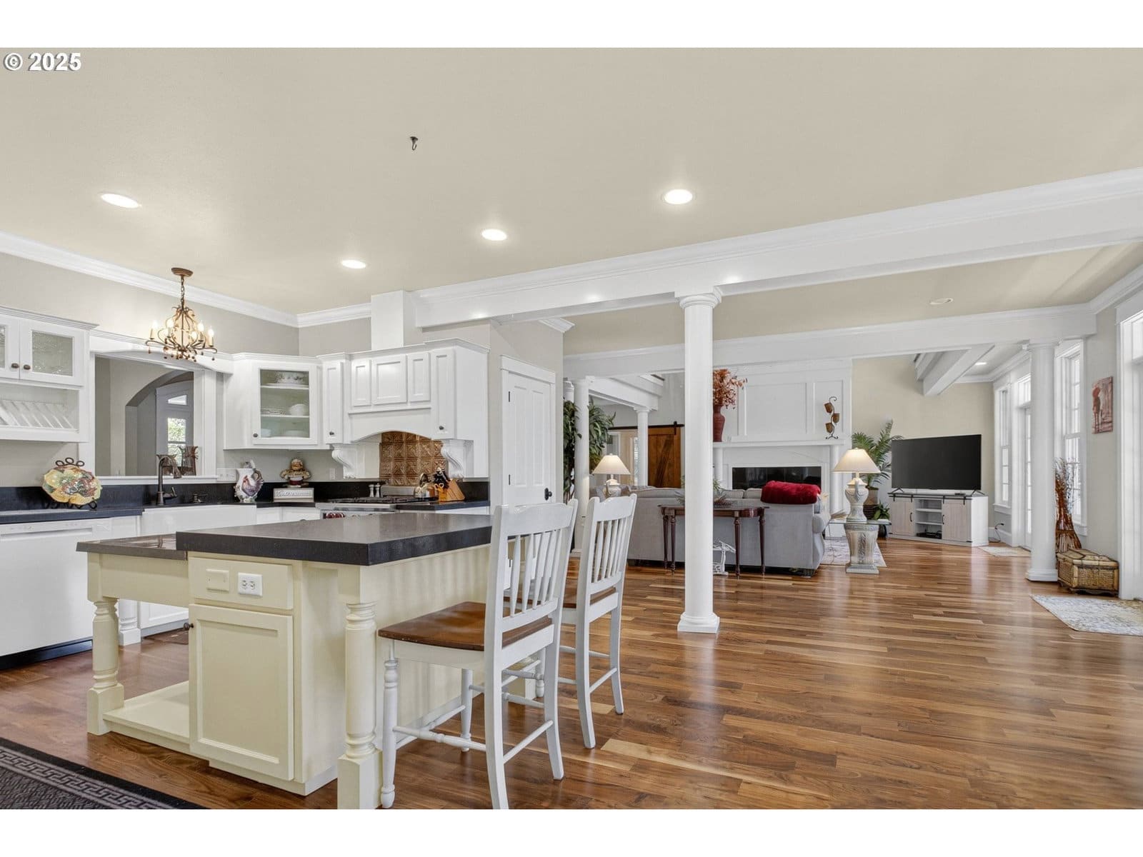 This French inspired hilltop villa features sweeping views of Dexter Lake and the valley below. A successful Airbnb this home is a favorite earning a nearly five-star rating for its beauty, views and convenient location. Private and gated this will truly be your oasis. As you enter note the covered front porch measuring nearly 49X12'. The entry opens to gleaming wood floors, architectural detailing & natural light from the abundant windows. The living room is two story in height yet elegant and beautiful. The chef's kitchen features a Wolf range, large island with breakfast bar and abundant cabinetry. The main level primary bedroom suite is spacious and features private access to the 49X8' rear balcony. Just imagine enjoying your morning coffee and tea on your balcony overlooking the vista below. The walk in closet is ample sized. The primary bath is truly decadent with a huge walk-in tile shower, a jetted tub and dual sinks. This bathroom is exceptionally spacious and reminiscent of a spa. There are three additional bedrooms, a full bathroom, storage room and a family area. The family room space enjoys an open balcony view of the living room below. Outsi you will enjoy two acres of well cared for grounds. The terracing and careful gardening has created a serene space for you to experience. At the rear of the property across the street is the local marina and park on Dexter Lake. Along with the oversized two car attached garage is an incredible shop with three garage bays. This building matches the home in it's design and construction. Enthusiasts will enjoy the heated & insulated space or perhaps a guest suite may be in your future. This villa overlooking Dexter Lake is located just 20 miles from Matthew Knight Arena & approximately 21 miles from the University of Oregon. Very short drive to enjoy this truly pristine hilltop retreat. Wo do not do this home justice. Please view the photos, video and floor plans then schedule a private tour today.