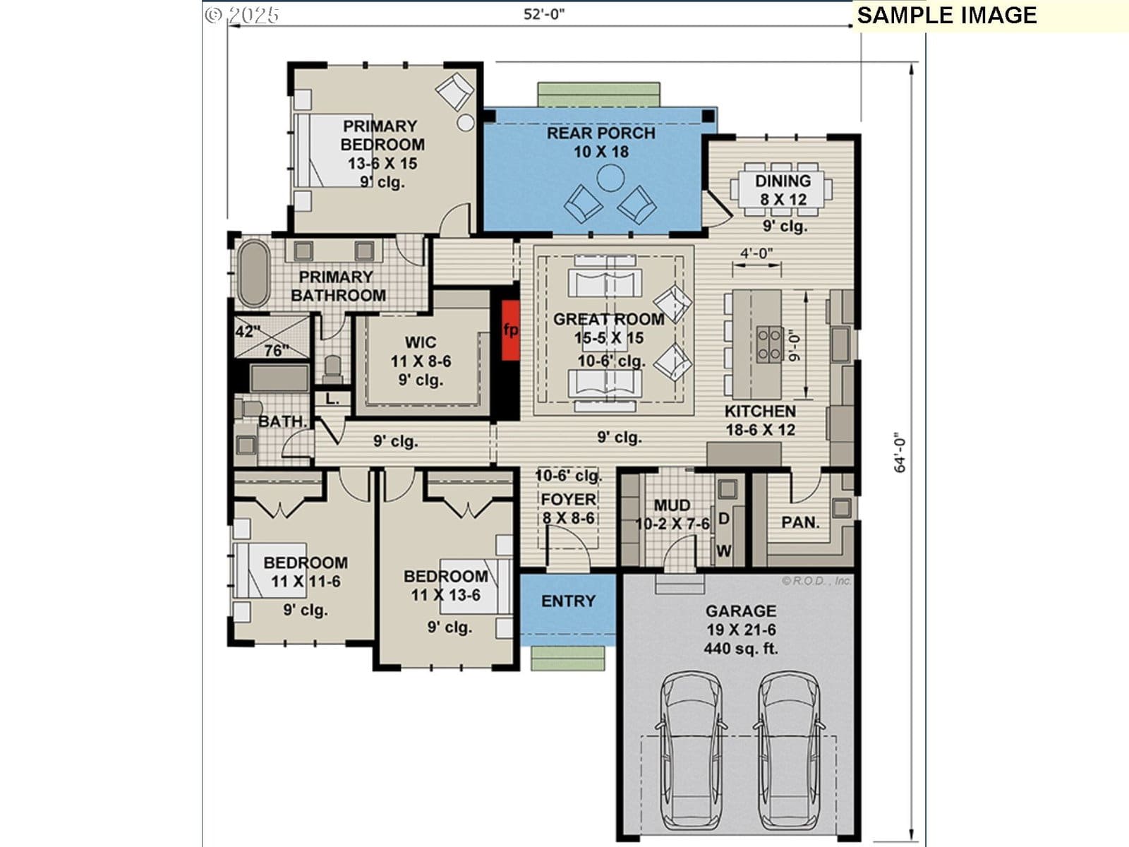 Modern Farmhouse Elegance with one-level Convenience Discover 1,952 square feet of thoughtfully designed heated living space in this New American farmhouse. A striking exterior blend of stone, timber, and steel sets a contemporary yet rustic tone before you even step inside.Open Concept Living: An elegant foyer leads immediately into an expansive great room, where a cozy fireplace serves as the warm focal point of the home.Chef’s Kitchen: Designed for function and flow, the kitchen features a 4-foot deep island with seating for four—ideal for prep work and conversation. A walk-in pantry and extensive cabinetry ensure ample storage.Private Retreats: The master suite is a true sanctuary, complete with a dedicated sitting area, private bath, and a generous walk-in closet. Two additional bedrooms feature linear closets and share a convenient hall bath.Outdoor Living: Extend your entertaining space outdoors on the 10-foot deep covered rear porch, perfect for relaxing in the fresh air.