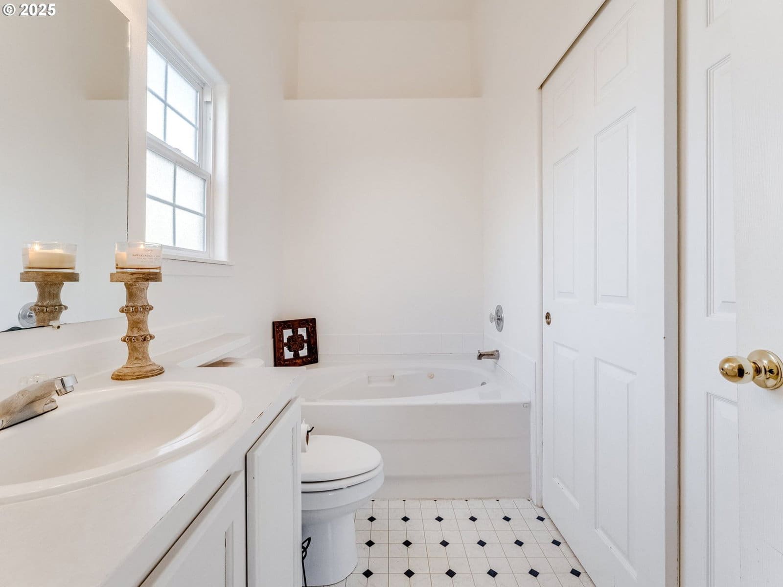 Bright and inviting vaulted living room features a charming bay window and a cozy fireplace—perfect for everyday living and entertaining. The family room opens seamlessly to a beautifully remodeled kitchen, highlighted by natural wood countertops, island, and a convenient double-drawer under counter refrigerator for added functionality. Newer engineered flooring throughout enhances durability while delivering a modern, cohesive look. The vaulted primary suite offers a walk-in closet and relaxing jetted tub. The recently remodeled guest bathroom offers new fixtures and a beautifully tiled shower. Enjoy a private backyard, ideal for outdoor living. New large shed for your tools and extra storage. All appliances included. Located in a wonderful neighborhood, just blocks from a golf, schools, and nearby hiking trails. Easy access to freeways, PDX, and downtown Portland.