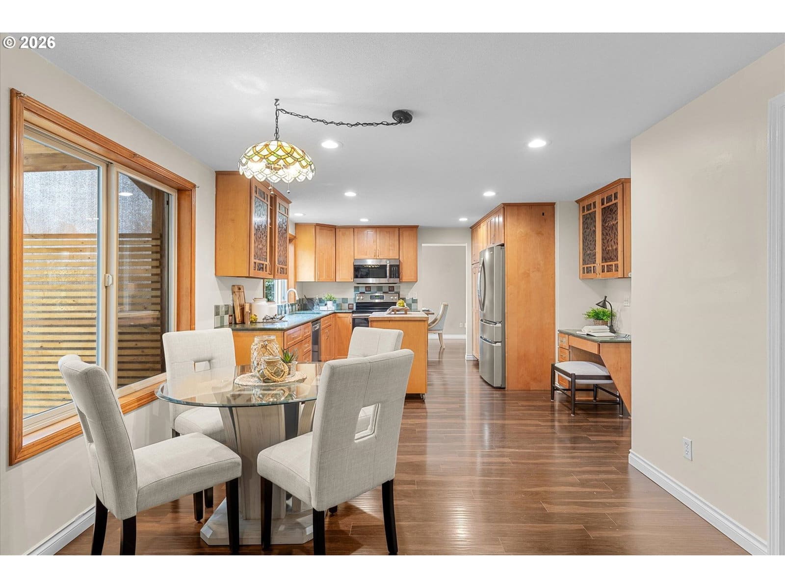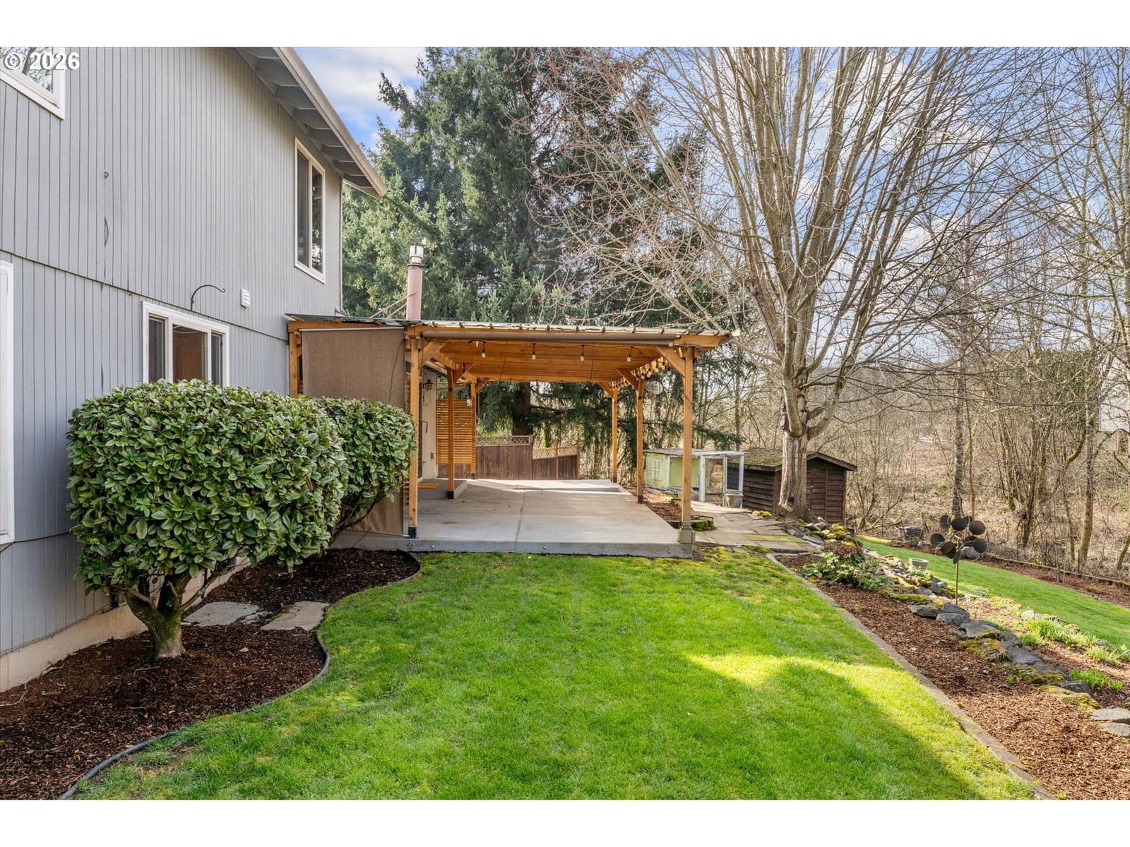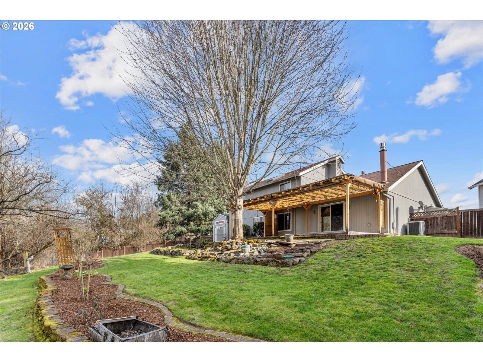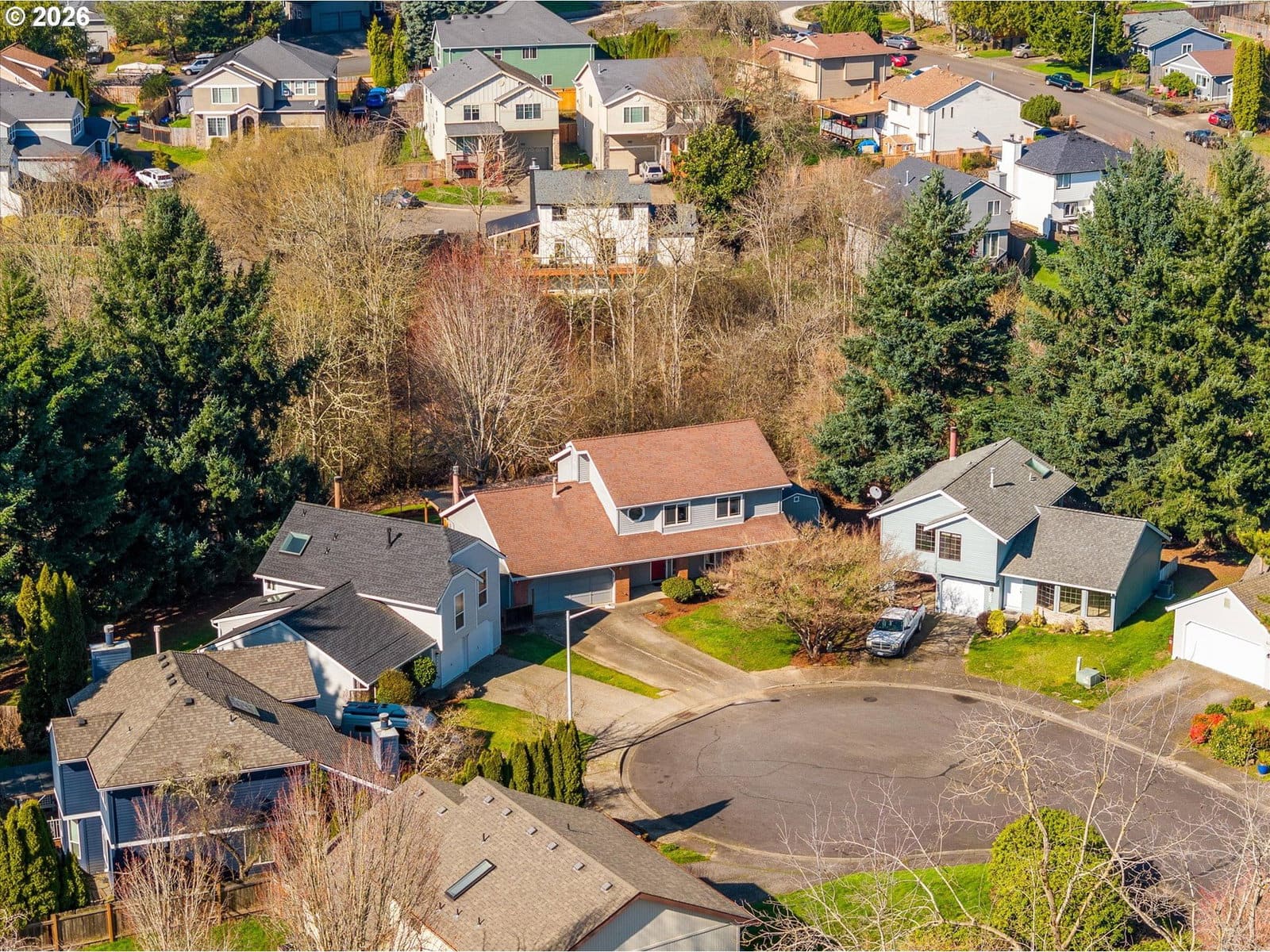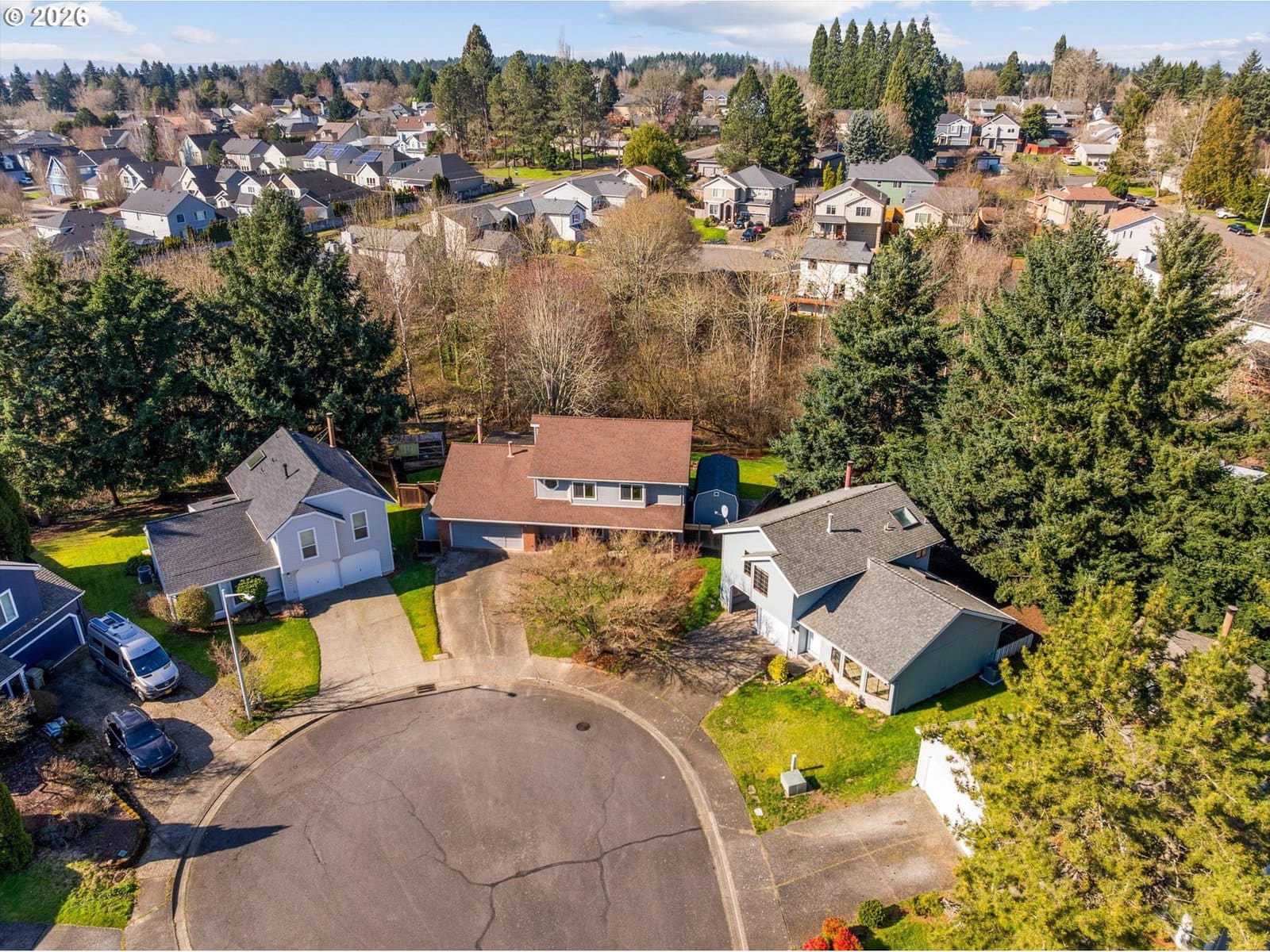 A unicorn indeed! Welcome home to this 4 Bedroom/2.1 Bathroom gem in the heart of it all! Make this 9100+ SF park-like lot your own private sanctuary. Enjoy the best of both worlds while you sit back & enjoy a moment on your covered front porch looking out over your cul-de-sac OR enjoy the peacefulness of the vast greenspace in your backyard. With over 2000 SF you have the option of entertaining in the Living Room/Dining Room or Lounging in the Spacious Family Room with cozy gas fireplace + covered patio access. Remodeled Kitchen with SS Appliances & Granite Counters opens to the Family Room. Utility Room & Updated laminate floors on the main. Primary Suite with Walk-in Closet & Coved ceiling + 3 Spare Bedrooms & Hall Bathroom ALL Upstairs. Don't miss the 20x10 Outbuilding complete with concrete foundation & power - perfect for all your hobbies or storage! There is also a 2nd, 5X8 Garden Shed. This backyard is a “10” with terraced gardens, covered patio & ready for your hot tub. Close to everything – Tualatin Hills Park & Rec, Hwy 26, Shopping, Schools, Restaurants plus so much more. This is a home you will want to see!