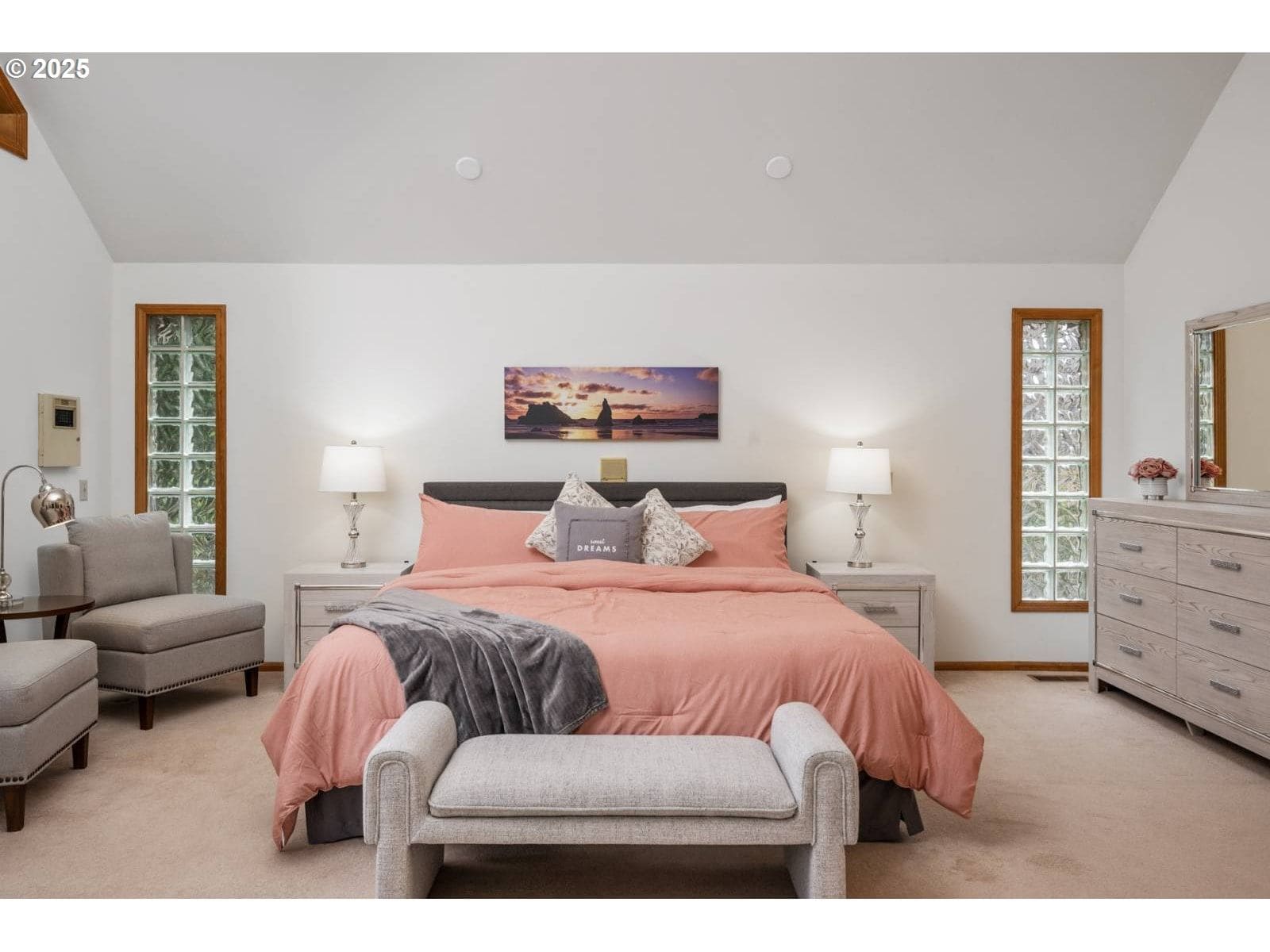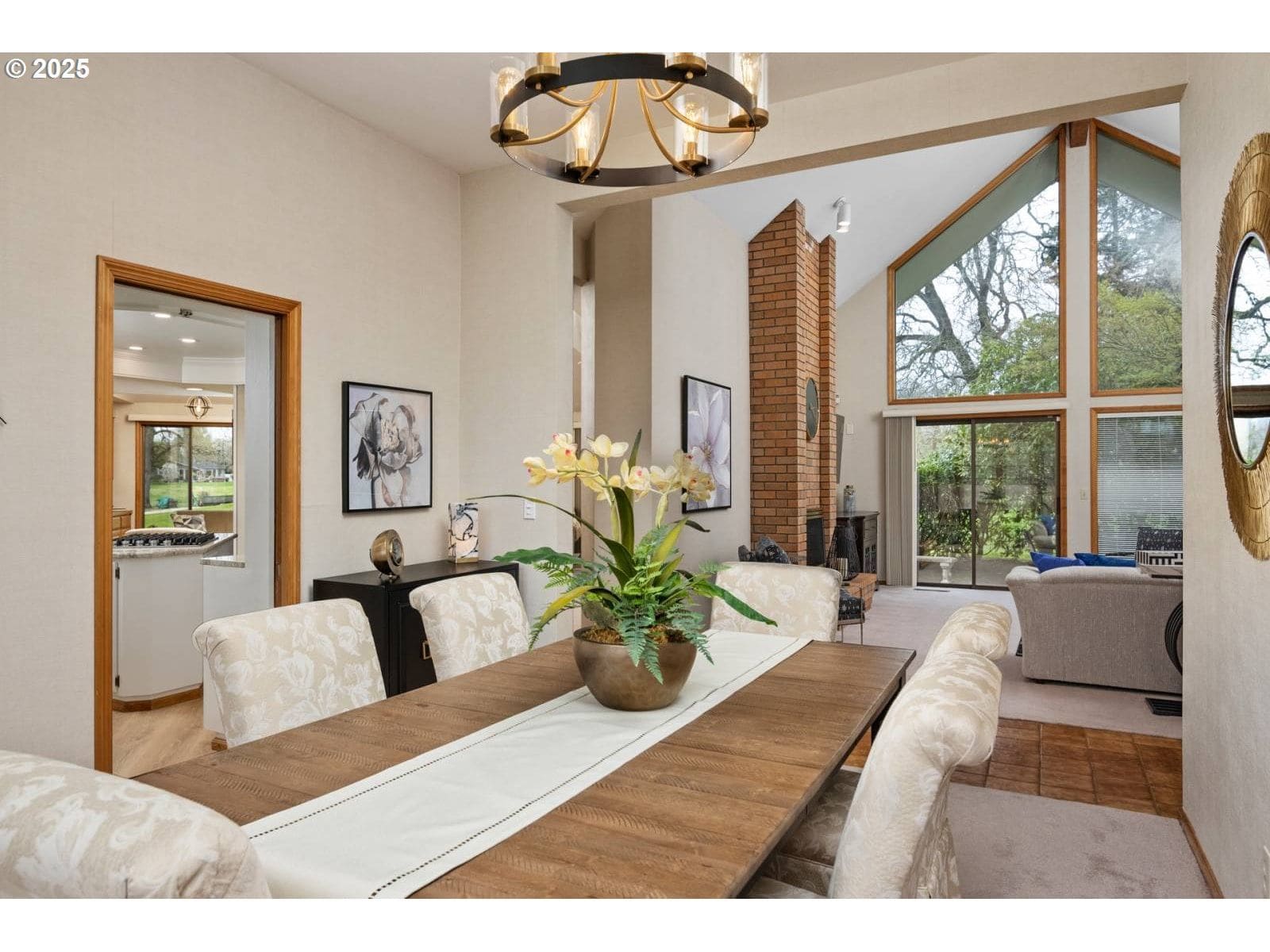 Tucked away on a quiet cul-de-sac at the edge of Oakway Golf Course in the affluent Spyglass Neighborhood, this spectacular home offers a remarkable living experience. Currently operating as a full-time short-term rental, it presents excellent income potential for investors and the option to be sold fully furnished—making it a true turnkey opportunity. From the impeccable landscaping to the fairway and greenside views, the home blends style and comfort seamlessly. Step inside through the foyer into a cozy living room filled with natural light from vaulted ceilings and oversized windows overlooking the back patio and golf course. This space flows into a formal dining room and a newly remodeled, fully equipped kitchen—perfect for culinary creations. A brand-new $15K Mitsubishi HVAC system with air conditioning ensures year-round comfort throughout the home. The spacious family room provides more sweeping golf course views, while the nearby garage includes additional seating, offering a flexible extension of the living area. Upstairs, you'll find one of the full bathrooms and two bedrooms, including an oversized room with a seating area and private deck overlooking the golf course. Descending back downstairs to the other side of the house, three more bedrooms await. The expansive primary suite features a cozy sitting area, a large walk-in closet, and sliding doors leading to the back patio allowing for incredible natural light whenever you choose. Just moments from the Oakway Golf Course Clubhouse and close to Autzen Stadium, Matthew Knight Arena, shopping, dining, and entertainment—this home is an unparalleled opportunity to enjoy all that Eugene and the Pacific Northwest have to offer.