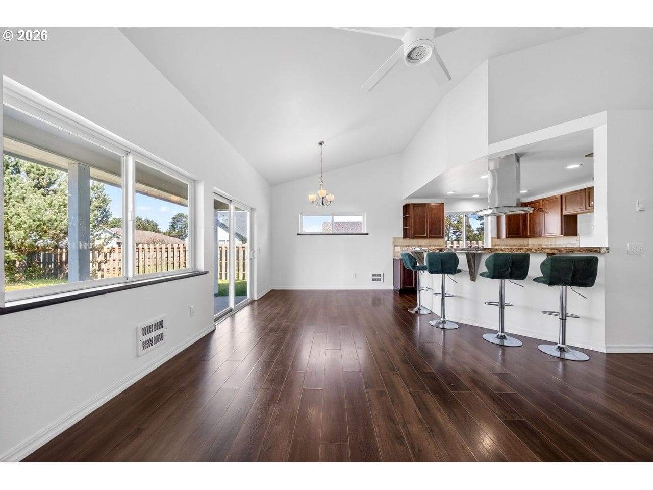 SHIP SHAPE, CUSTOM, OCEAN BLUE 2-story home in beautiful Ocean Trails with a pretty walking trail straight down to the beach! Freshly painted & renovated, home features Hardiplank Lap Siding, Greatroom with a slider to a west facing covered patio, custom Myrtlewood Breakfast Bar & “Live Edge” Windowsills, Schrock Cabinetry, Vinyl Plank floorings, 2051 sq. ft., 3 bedrooms, 2 other bonus rooms/offices, one with a bay window, as well as a flex space on the stair landing, 2.5 baths. Master Bedroom has a slider to patio, wall to wall carpet & its own tiled bathroom with Step In Shower. Also has a large Laundry Room, 2 car finished garage with Built In Cabinets/ Workbench, a front porch, a mostly fenced yard & great view of our local Shore Pines & wildlife such as deer & turkeys. Come join our enviable Bandon lifestyle!