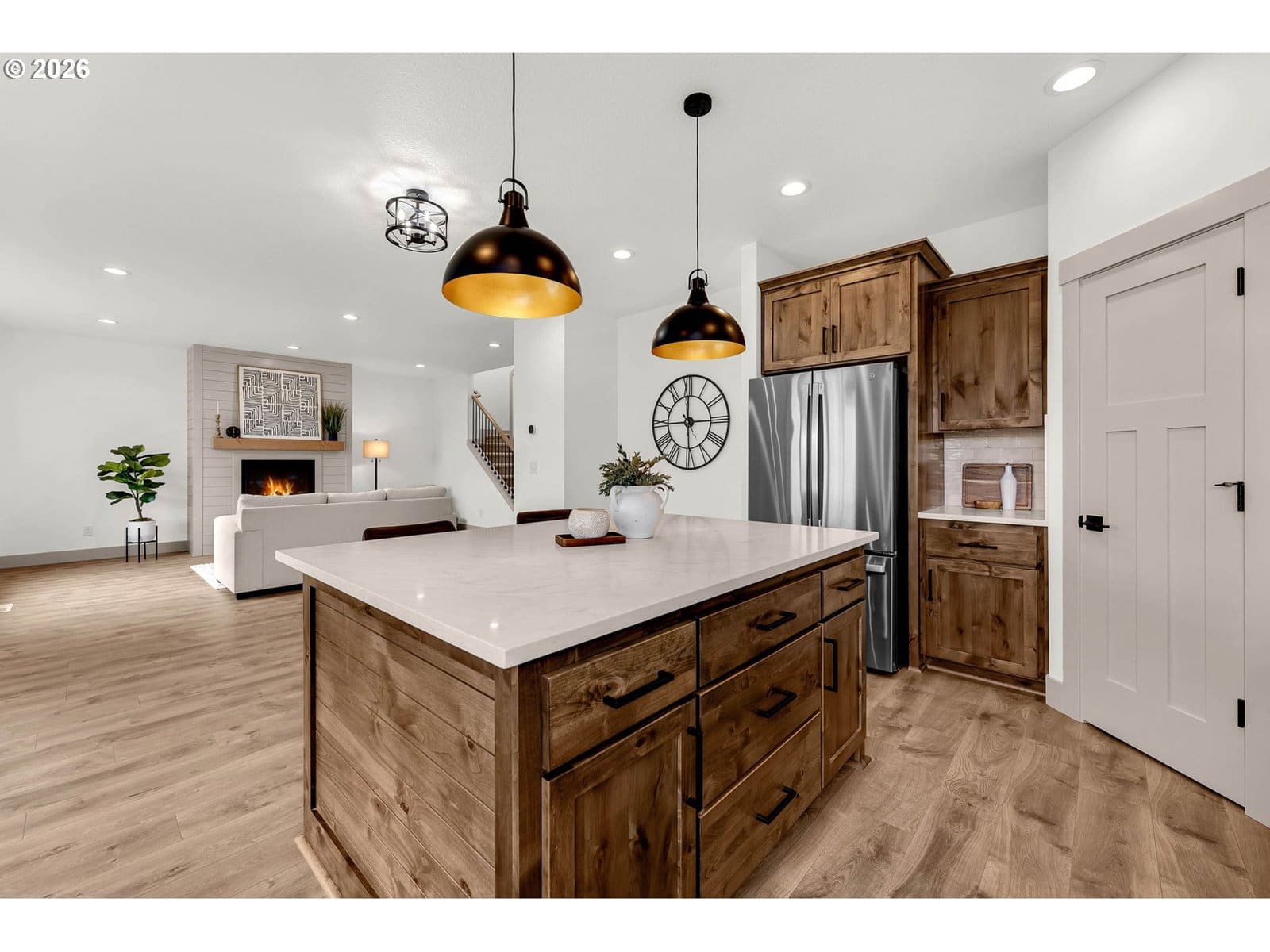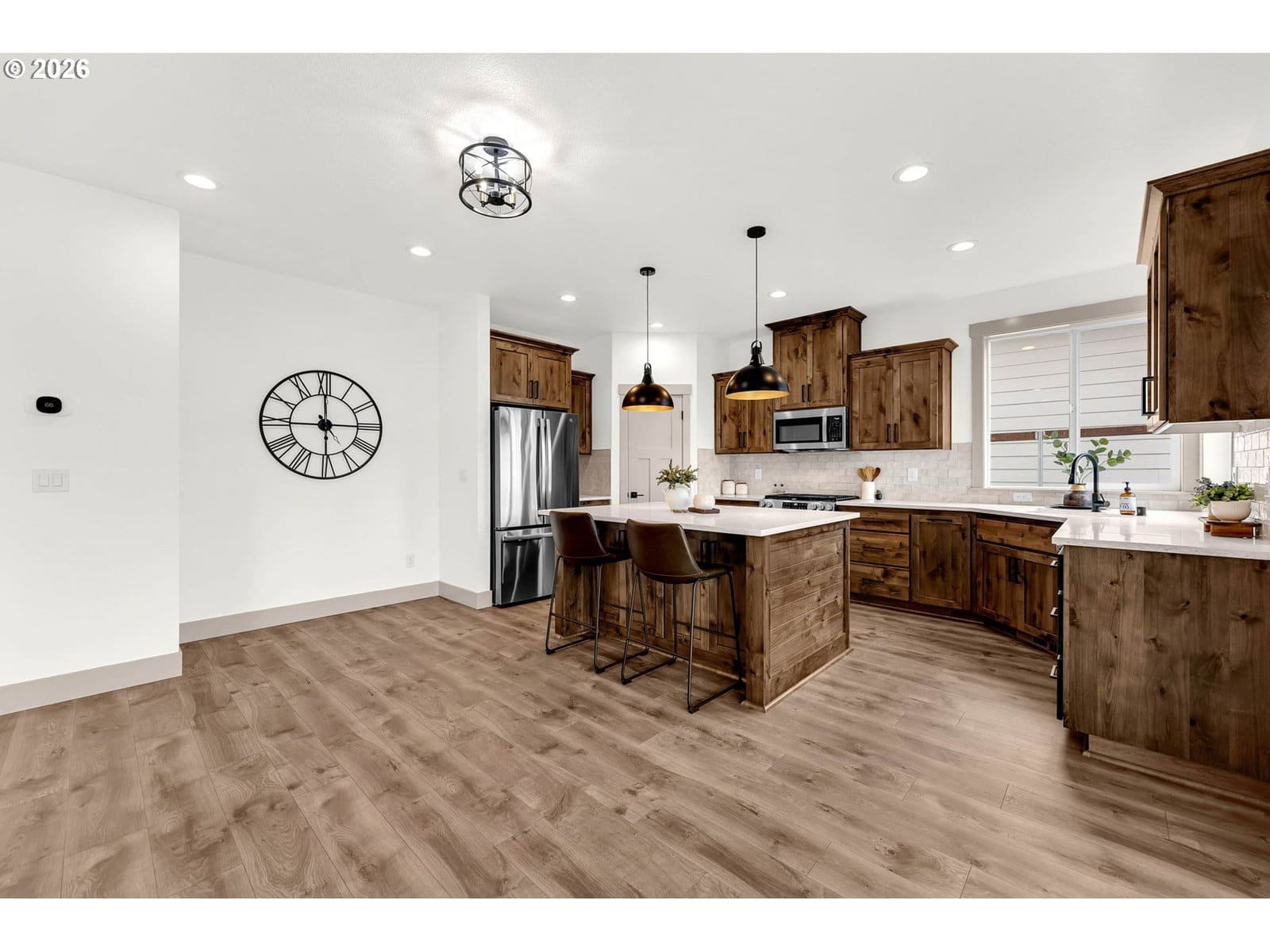 Discover this brand new 2,090 sq ft home featuring 4 spacious bedrooms and 2.5 modern bathrooms. Perfectly located near shopping centers and close to town, this property is nestled within an up-and-coming community of newly built homes. Enjoy contemporary design, open living spaces, and an abundance of natural light throughout the home, creating a bright and welcoming atmosphere.The kitchen is a true highlight, offering a huge island with storage perfect for both meal preparation and casual dining. Additional upgrades include luxury vinyl plank flooring throughout the main living areas, a refrigerator for your convenience, interior windows with wrapped trim for a polished look. Outdoors, you'll find a fenced backyard complete with a sprinkler system and a covered patio—ideal for relaxation, entertaining, and enjoying the outdoors regardless of the weather. Home is Completed--
