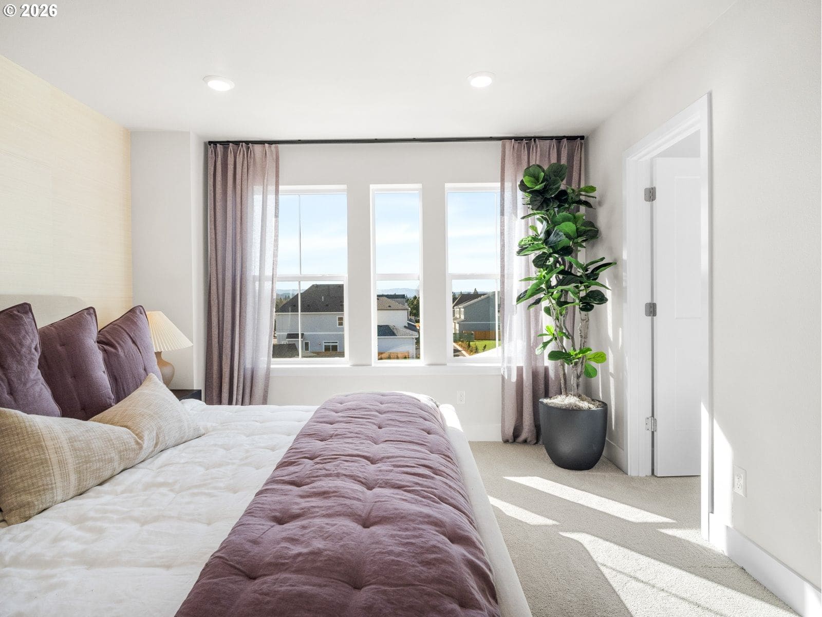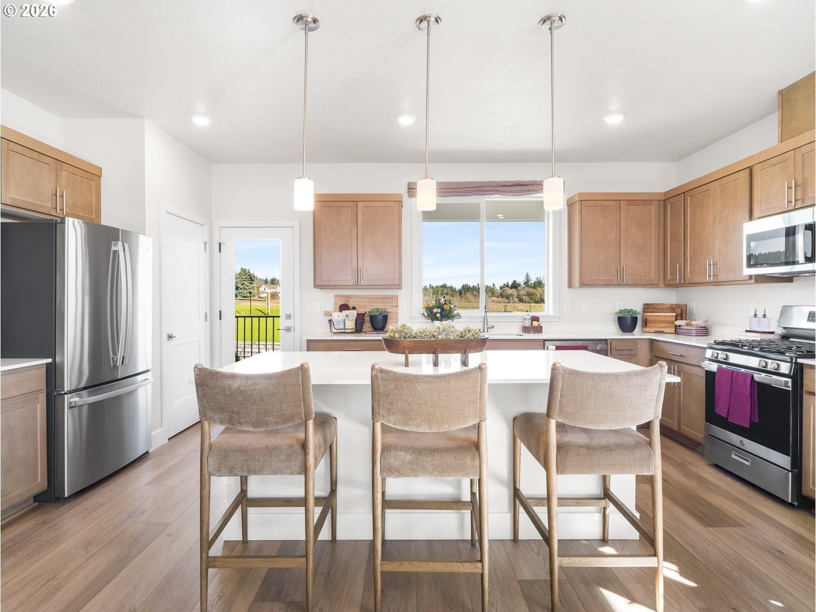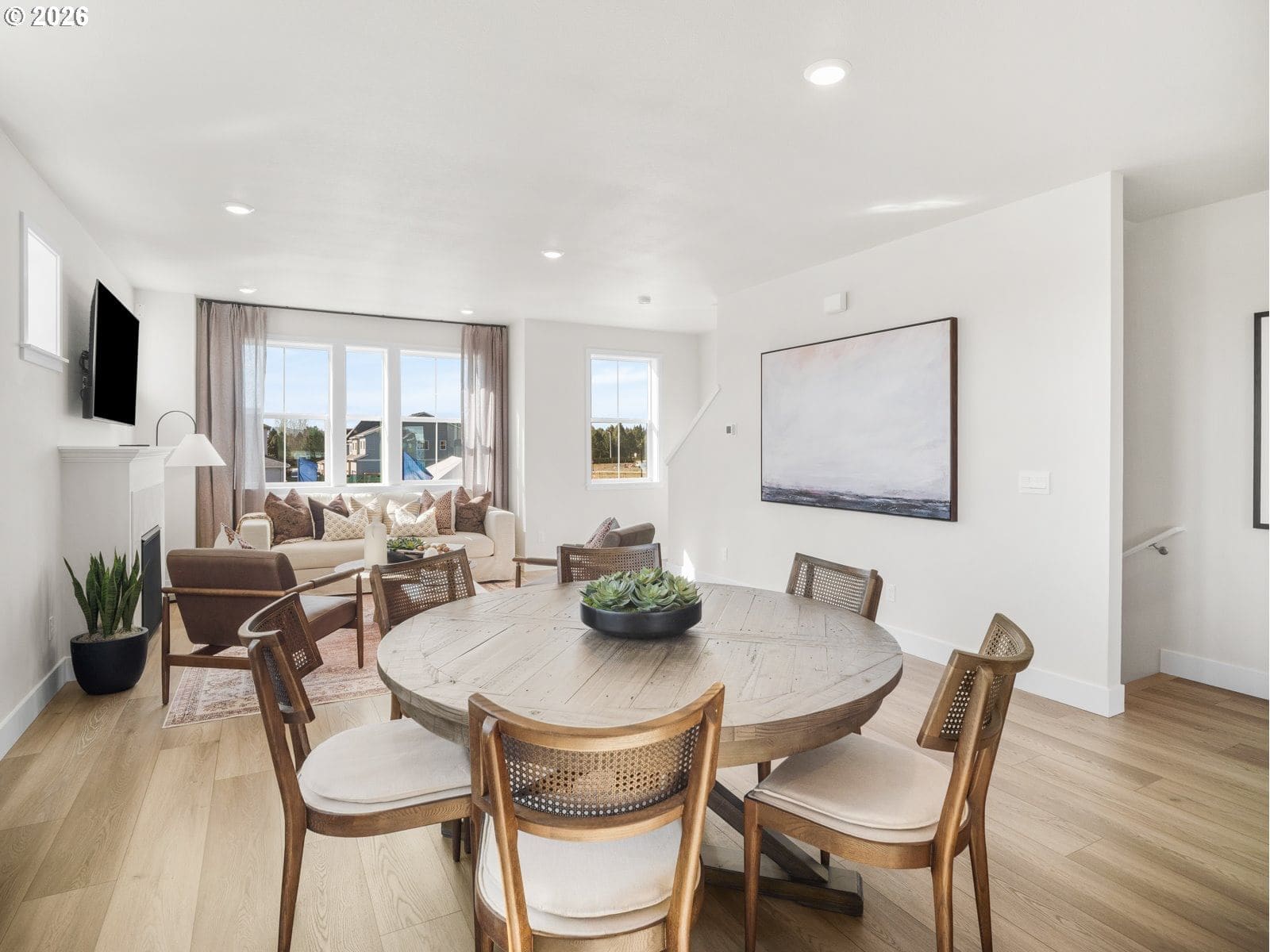 Discover Kingston Terrace, a vibrant new community designed for connection and convenience, with planned parks, walking trails, and future retail. This beautifully appointed three-level townhome offers 9ft ceilings on main floor, 3 bedrooms and 2.5 bathrooms, with an open-concept main level that seamlessly blends the living, dining, and kitchen areas. The kitchen features quartz countertops, a spacious island, and opens to a covered balcony—perfect for morning coffee or evening relaxation. Covered front porch too! A cozy fireplace anchors the living room, creating a warm and inviting atmosphere. The home also includes a two-car extra-deep garage for added storage and flexibility/shop. Also, a side-by-side driveway. Kingston Terrace is King City's newest community. Located in a vibrant community with future parks, retail, walking trails, and a pickleball court. Experience modern comfort in a thoughtfully planned neighborhood. Minutes to Progress Ridge & Freeway access. Ask about special financing options with the use of our preferred lender. Exterior pic of actual home at left, interior of model home. Parking in huge garage, and side-by-side driveway. Come by to take a walk thru.