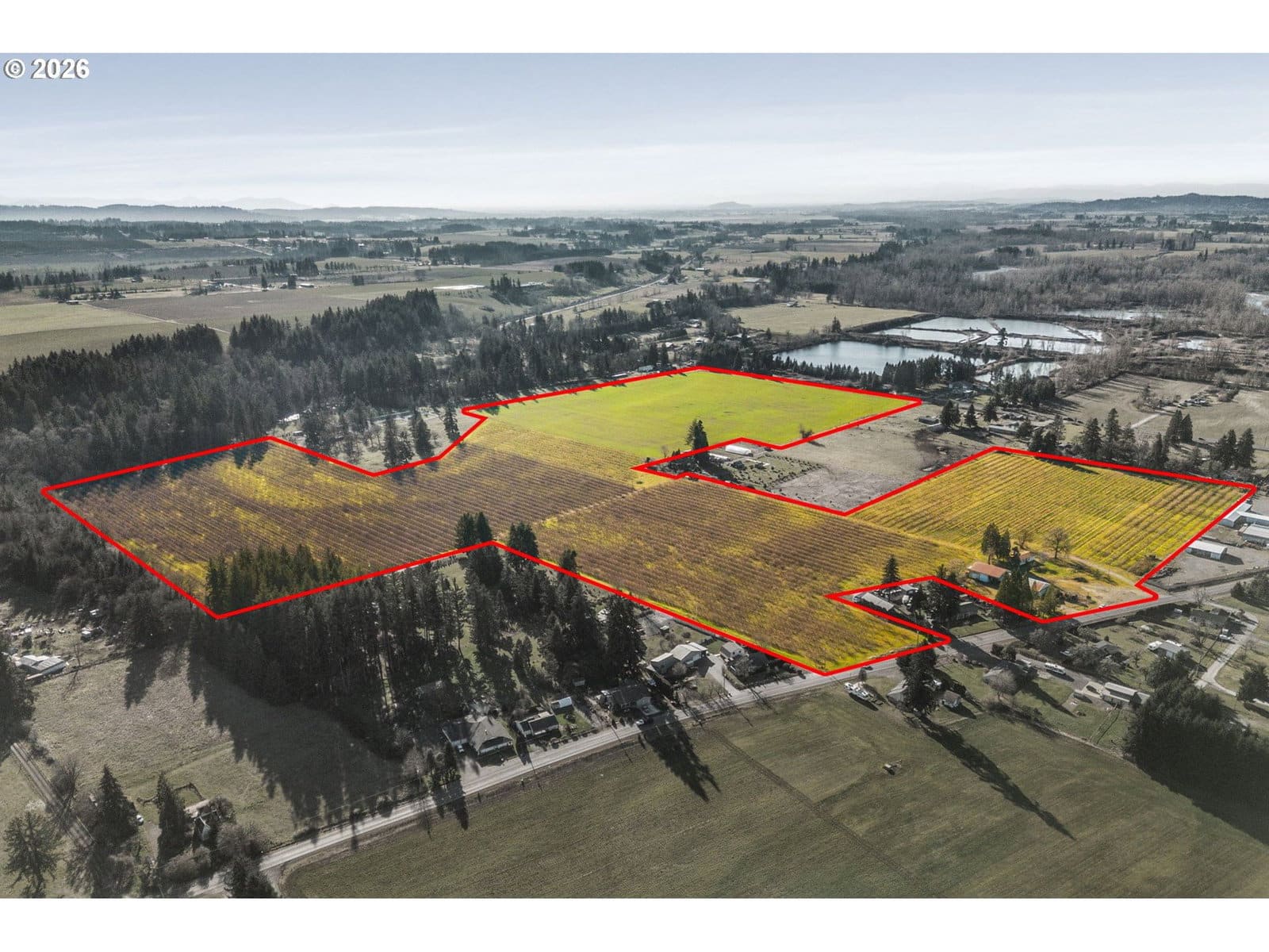 Irrigated Hazelnut & Cropland Farm: ±92.07 total acres with ±86.50 tillable, including ±54.40 acres of hazelnut orchard. Primary irrigation water rights via multiple OWRD certificates/groundwater claims with priority dates from 1904–1962. Three irrigation wells onsite (two actively used), buried mainline with risers, and Class II Newberg/McBee soils. Spot drain tile installed within natural swales. Includes security fenced and gated gravel equipment yard with 7,100 SF building (5,000 SF machine shed, 2,000 SF shop, office/restroom); three power meters; domestic well; standard septic. Property supports diverse farming: hazelnuts include Jefferson planted 2016/17, and McDonald planted 2022. ±32.10 acres is currently in grass seed suitable for various crops. Orchard-view homesite; the existing manufactured home is not included (third-party owned), Linn Co indicates it is replaceable with county review/permit. Zoned FF (Farm Forest) in Linn County. This is 1 of 2 available irrigated farms – request info package for more details.