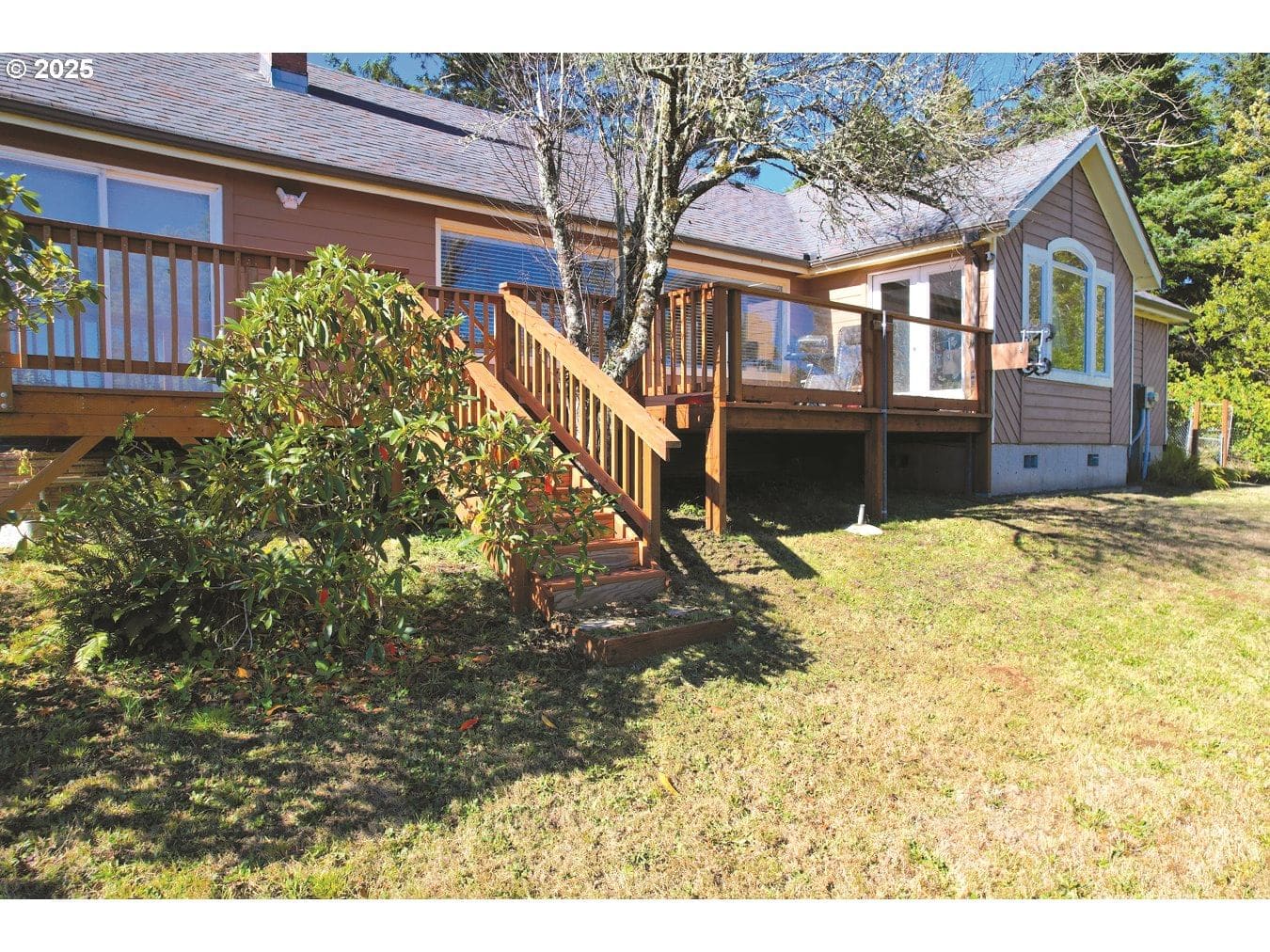 Large spacious home on a double lot totaling 0.40 acres. Located in a private, quiet neighborhood above Agate Beach; this neighborhood has its own private access to the beach! This home would make a wonderful family retreat with three bedrooms and two full baths on the main floor...then upstairs has another half bath and three bonus rooms with the largest bonus room being over 442 sq ft! The house has an open floor plan, vaulted ceilings an abundance of windows and skylights to provide plenty of natural light. Two decks, two patios and a fenced yard. There is plenty of off-street parking and a large 2-car garage. The extra parcel in front might be able to be built on with a small lot line adjustment. Buyer to verify this with the planning department. The current Owner has replaced 90% of the siding with cement board and replace 10 of the windows! Most of the Interior and Exterior was freshly painted two years ago. This home has so many possibilities from a great family home or divide it up and rent the upstairs for some extra income! Home is just 3 blocks to shopping and restaurants!