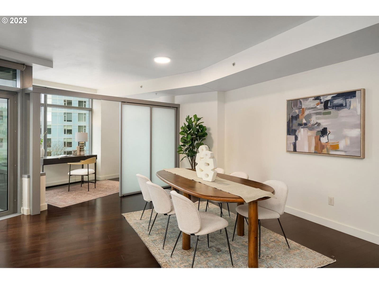 This west-facing residence at the John Ross offers privacy, protected views, and a flexible layout rarely found in the building. Expansive windows allow light year-round, framing an unobstructed hillside outlook with seasonal color, views of the aerial tram, and a glimpse of the river, without neighboring towers looking back in.The living space features a Modern Flames 58” wall-mounted electric fireplace that can be easily removed, offering flexibility for future design preferences. The open plan supports both everyday living and entertaining. A smart home gym setup (Tonal) is available by separate consideration.One of the few units with a divided corner, the office provides a true work-from-home solution or potential second bedroom without compromising the main living area.Additional highlights include tandem parking for two vehicles and one of the largest storage units in the building, well-suited for bikes, outdoor gear, or passive rental income.Enjoy walkable access to the Portland Opera House, OMSI, and Zidell Yards for concerts and events. The streetcar is steps away, with easy connections to downtown, the Springwater Corridor Trail, and miles of waterfront paths. Weekly farmers markets, movies in the park, and seasonal community events round out the South Waterfront lifestyle.