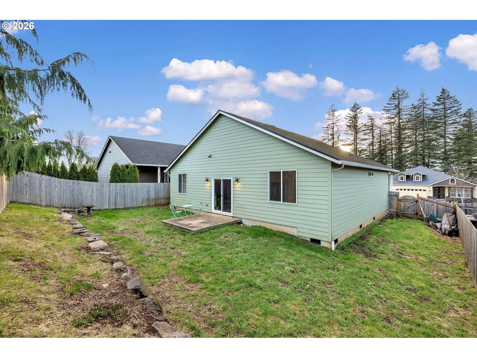 Perched along the edge of the city limits, this beautifully maintained single-level Craftsman offers a rare balance of everyday comfort and peaceful rural charm. With over 1,500 square feet of thoughtfully designed living space, this 3-bedroom, 2-bath home blends character with quality finishes and easy functionality.Inside, you’ll find a bright, welcoming layout with generous living areas, abundant natural light, and seamless flow throughout. The well-appointed kitchen connects effortlessly to the main living space, ideal for gathering with friends or enjoying relaxed evenings at home.Positioned to capture stunning westward views, the home showcases breathtaking sunsets framed by mature evergreen trees, often accompanied by eagles perched above. Its elevated setting enhances privacy and creates a calm, retreat-like atmosphere.The spacious primary suite offers a comfortable haven at day’s end, while two additional bedrooms provide flexibility for family, guests, or a dedicated home office. A double garage adds practical convenience and ample storage.Located in a quiet, friendly neighborhood at the boundary of city conveniences, this home provides easy access to shopping, dining, and schools while maintaining the openness and slower pace of country living.If you’re searching for a home that delivers quality, comfort, and memorable views, all in an exceptional setting, this Craftsman is one you won’t want to miss!