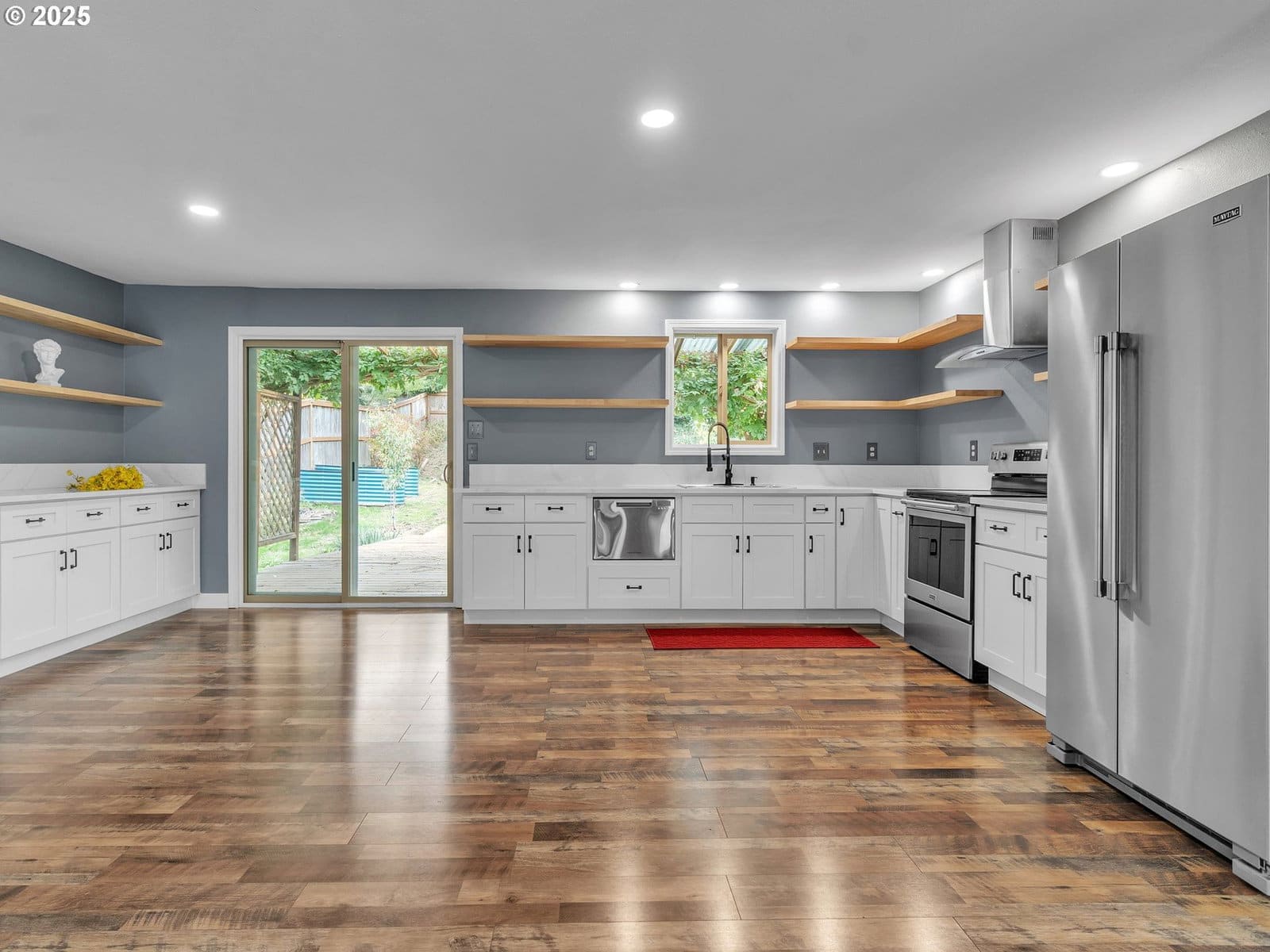 4 bedrooms, 3 bath home in the heart of McMinnville. Move-In Ready and within walking distance to historic downtown Third St - updated, spacious, lots of light, and private. The main level of this home has 3 bedrooms and 2 full bathrooms - one of which is a primary bedroom suite with a walk-in shower. Living room, dining, and kitchen are an open concept plan - the thoughtfully designed kitchen has quartz countertops, stainless steel appliances, with bright white cabinetry. The kitchen opens up to a covered deck for year-round outdoor living. Brand new Spill Repel Laminate flooring throughout the entire home. The downstairs is a primary bedroom suite with a living room PLUS a full bathroom - spacious, yet private - an entire separate living space - lots of storage, and the roof is 10 years old. This delightful home features a private and fenced backyard with raised garden beds, blueberry bushes, fruit trees, and a garden shed - a "must see" property! Schedule your home tour today and welcome home!