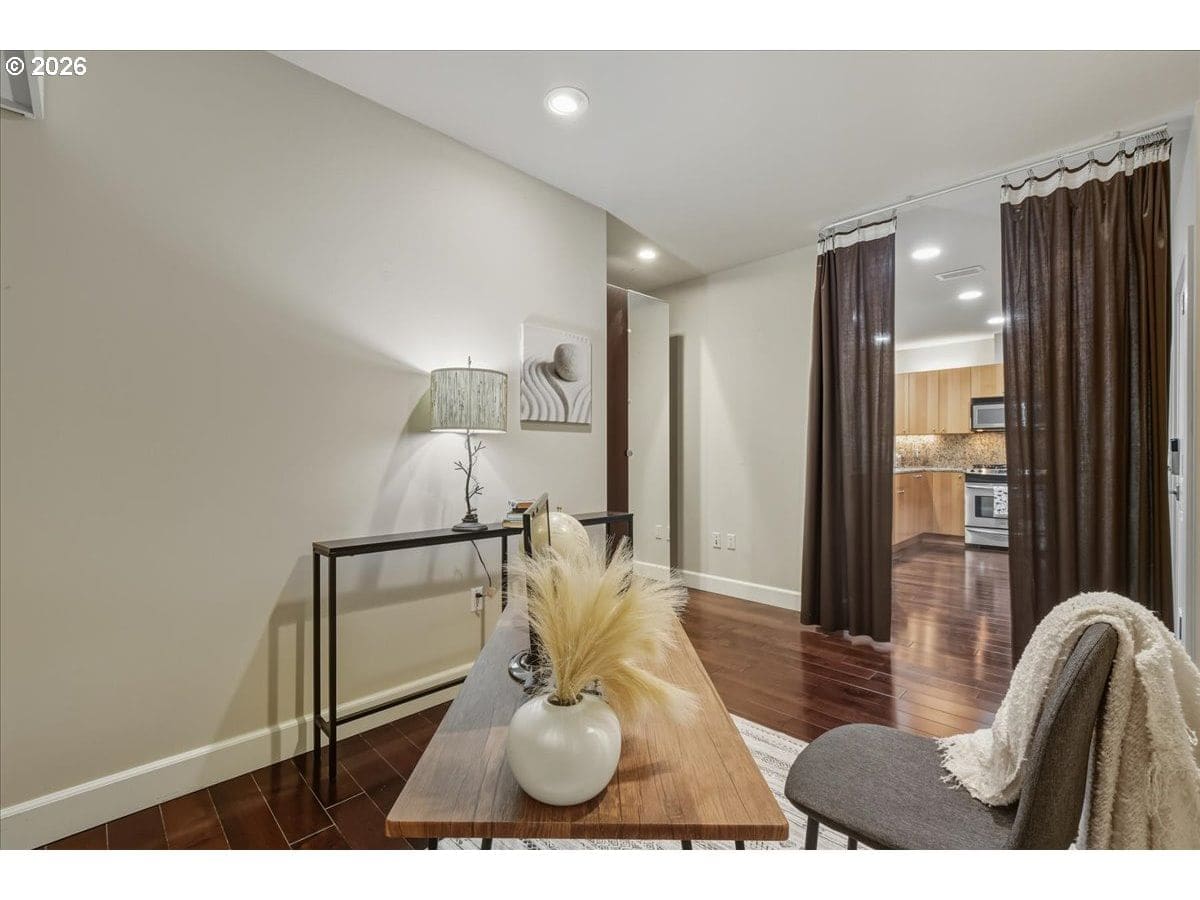 Sophistication and security in the city! This graceful 5th floor 1-bed, 1-bath condo is a brilliant slice of affordable luxury in the heart of downtown Vancouver. Quality finishes, high ceilings, and huge windows make achieving stylish comfort feel effortless. Upgraded hardwood floors throughout give this bright home a rich sense of contrast and cultivation. Enviable amounts of granite counter space and storage in the kitchen will have your inner chef nodding in approval (just wait till chef hears there's a gas stove, too). The open design helps this home feel fresh and light. A gas fireplace in the living room and dimmers just about everywhere mean there's always a good excuse to dial up the ambiance. The bedroom has a brand new ceiling fan, generous closet space, and offers a lovely cityscape view. The bathroom is tiled, with a tile walk-in shower, and is even more functional since it's been reconfigured to include the utility closet. In the den, you'll find a space for a home office, a studio space, or an area for staging additional entertainment--a formal dining room, a gaming room, or anything else your imagination can muster. Truly one of the best kept secrets in Vancouver's condo market, Frontier Block Condo's monthly HOA dues include water, sewer, gas and trash--it is rare for such an amount of utilities to be included in HOA dues. Resident parking is covered, gated & secure; spots are deeded. Private storage units are in resident parking area. Residents also have a private elevator & mailroom accessible only by key, code or fob. All appliances stay. 1 block from Main St, 2 blocks from Esther Short park, and about 5 blocks to waterfront and upcoming Terminal 1 project. There is a whole lot to like here, but when you tour you'll see why there is so much more to love!